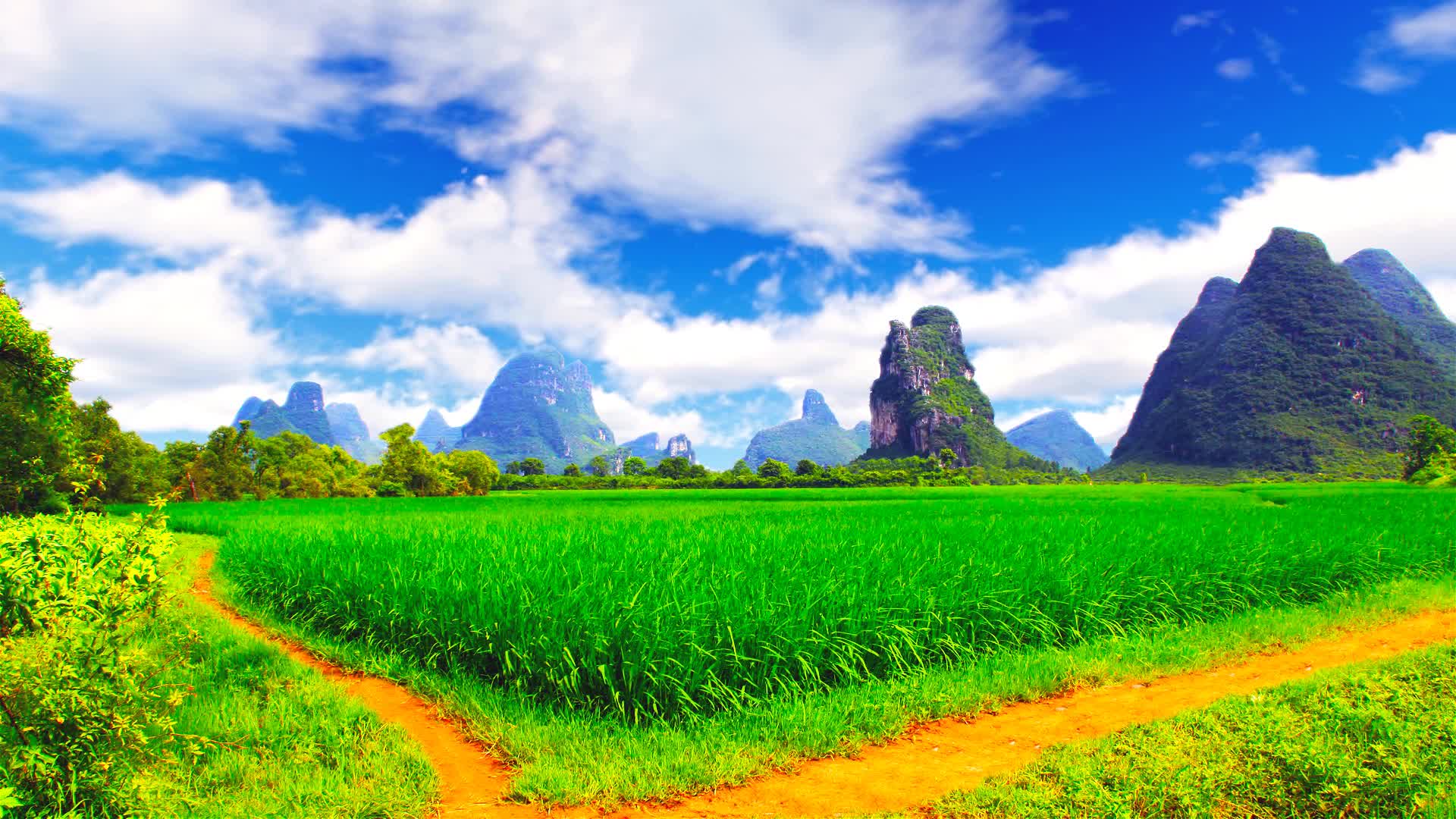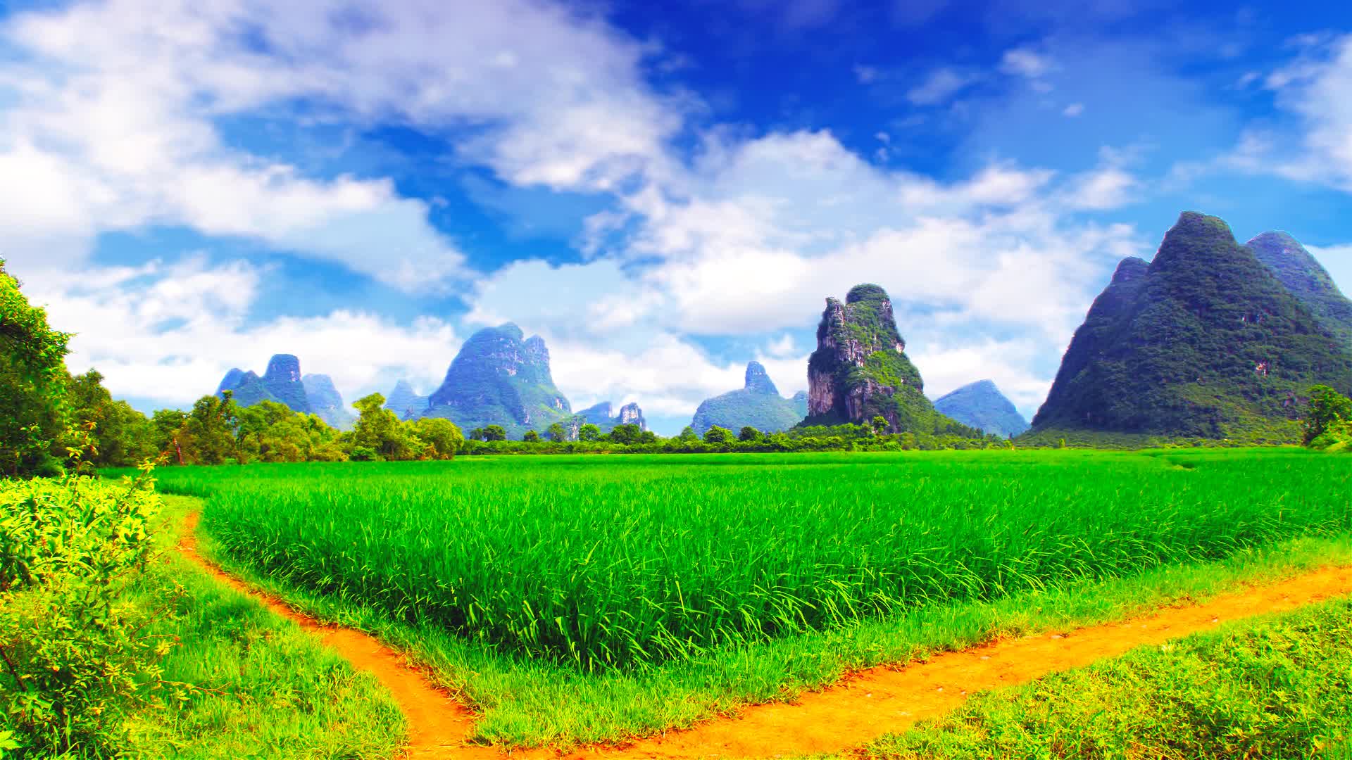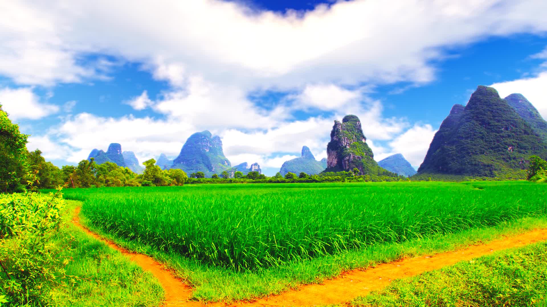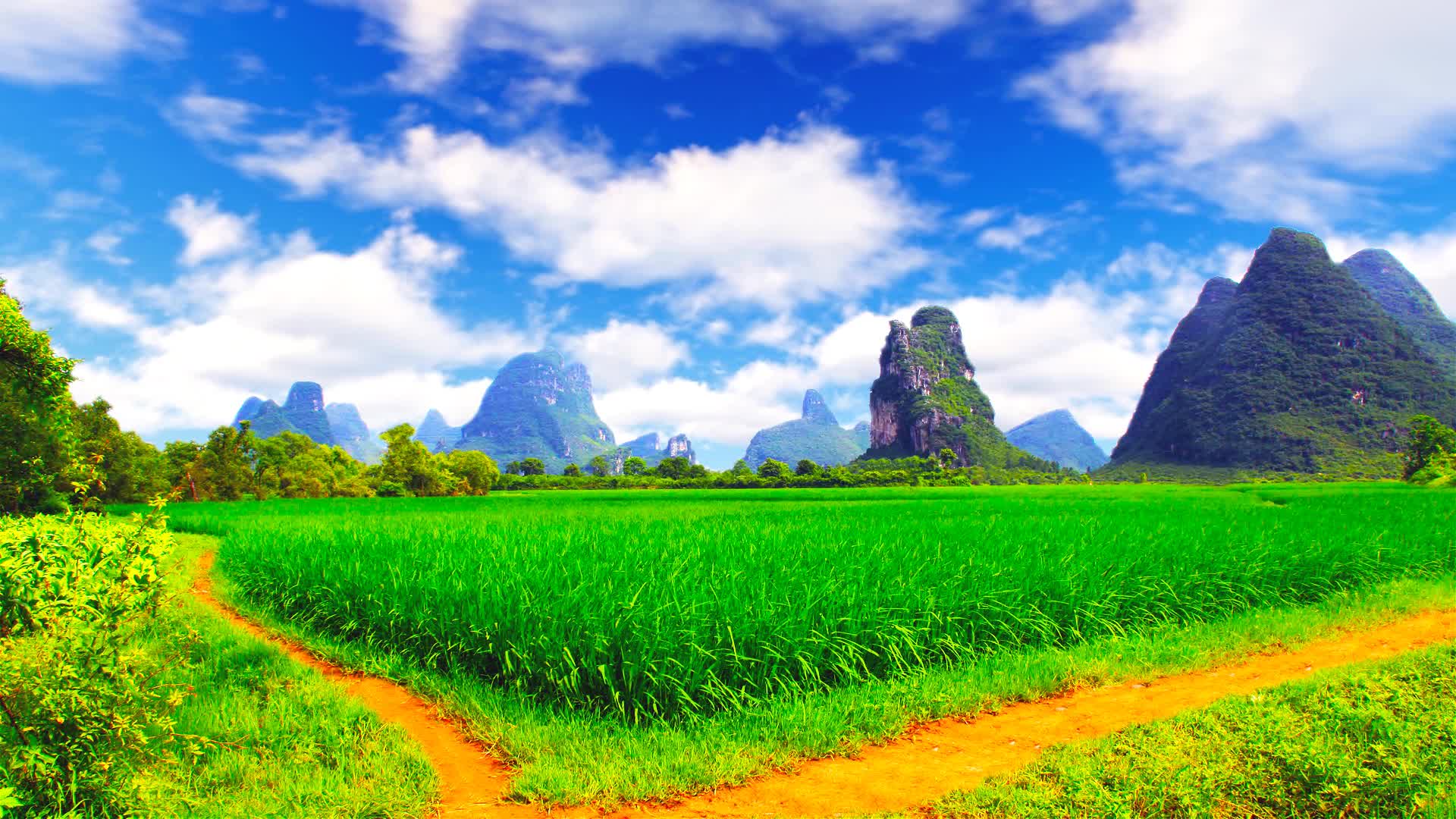 乡村田野农村乡土 田园风光乡下 古代古典复古戏曲 舞台远山白天 古代场景古装剧小品 新农村农民小道 水稻田野土路小径 音乐剧情景剧舞台剧