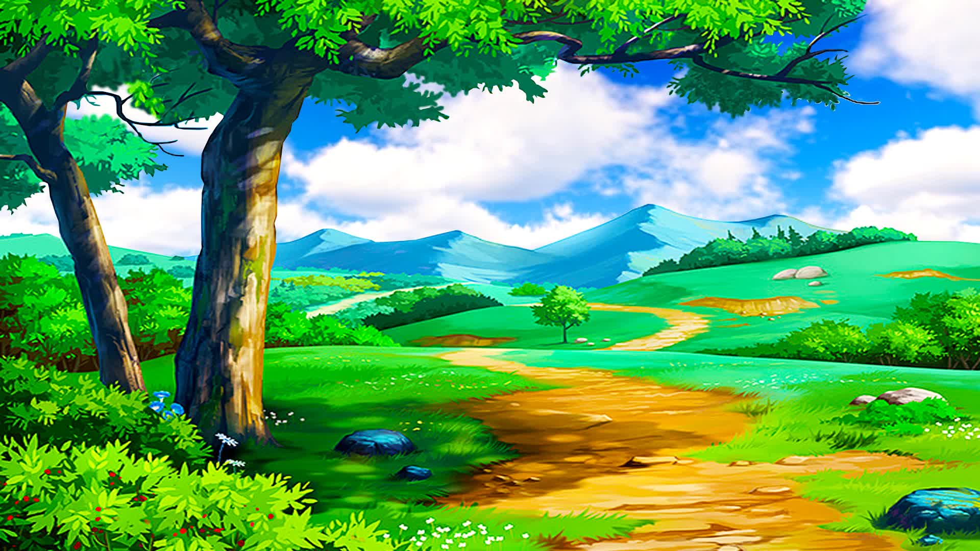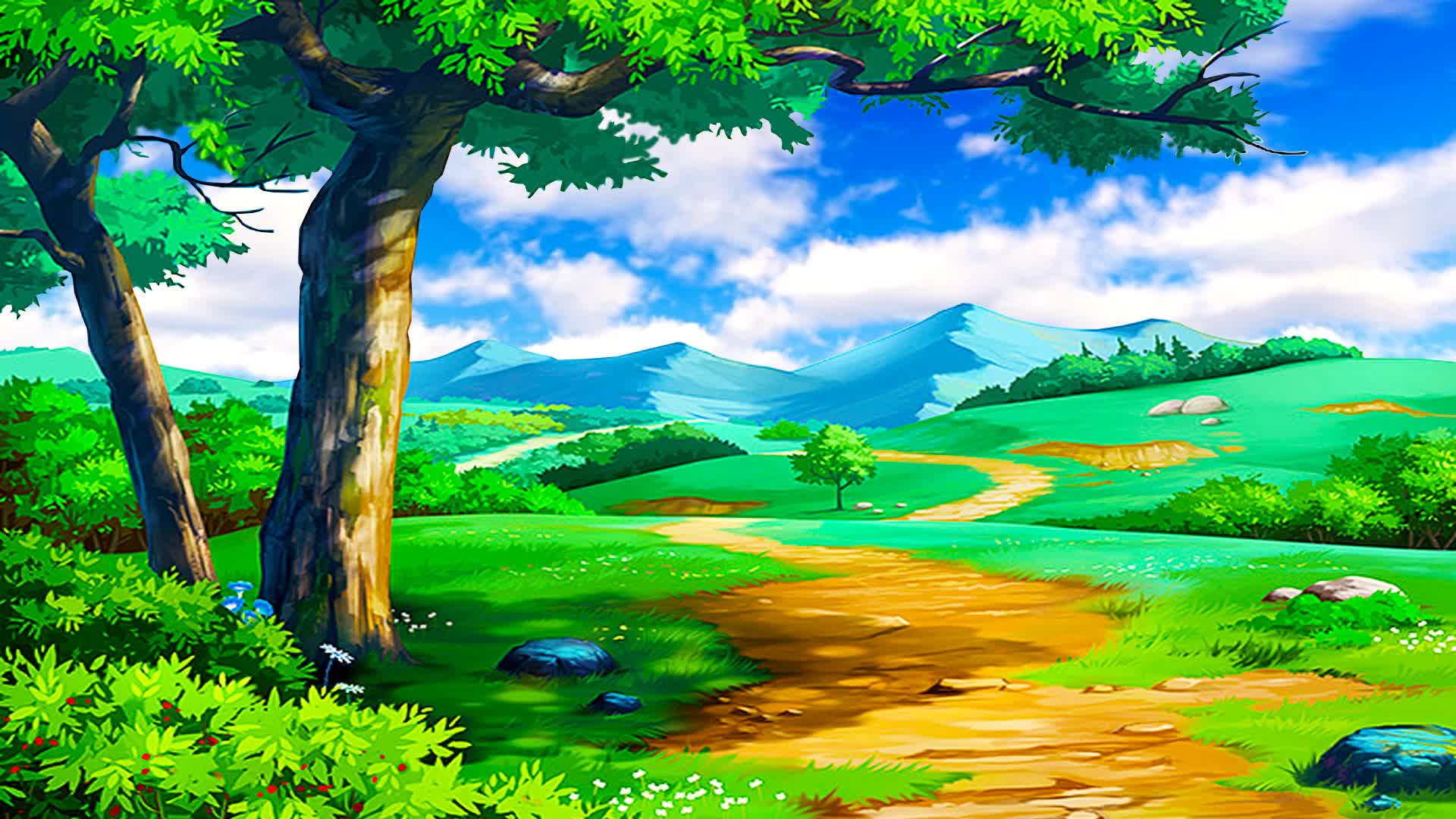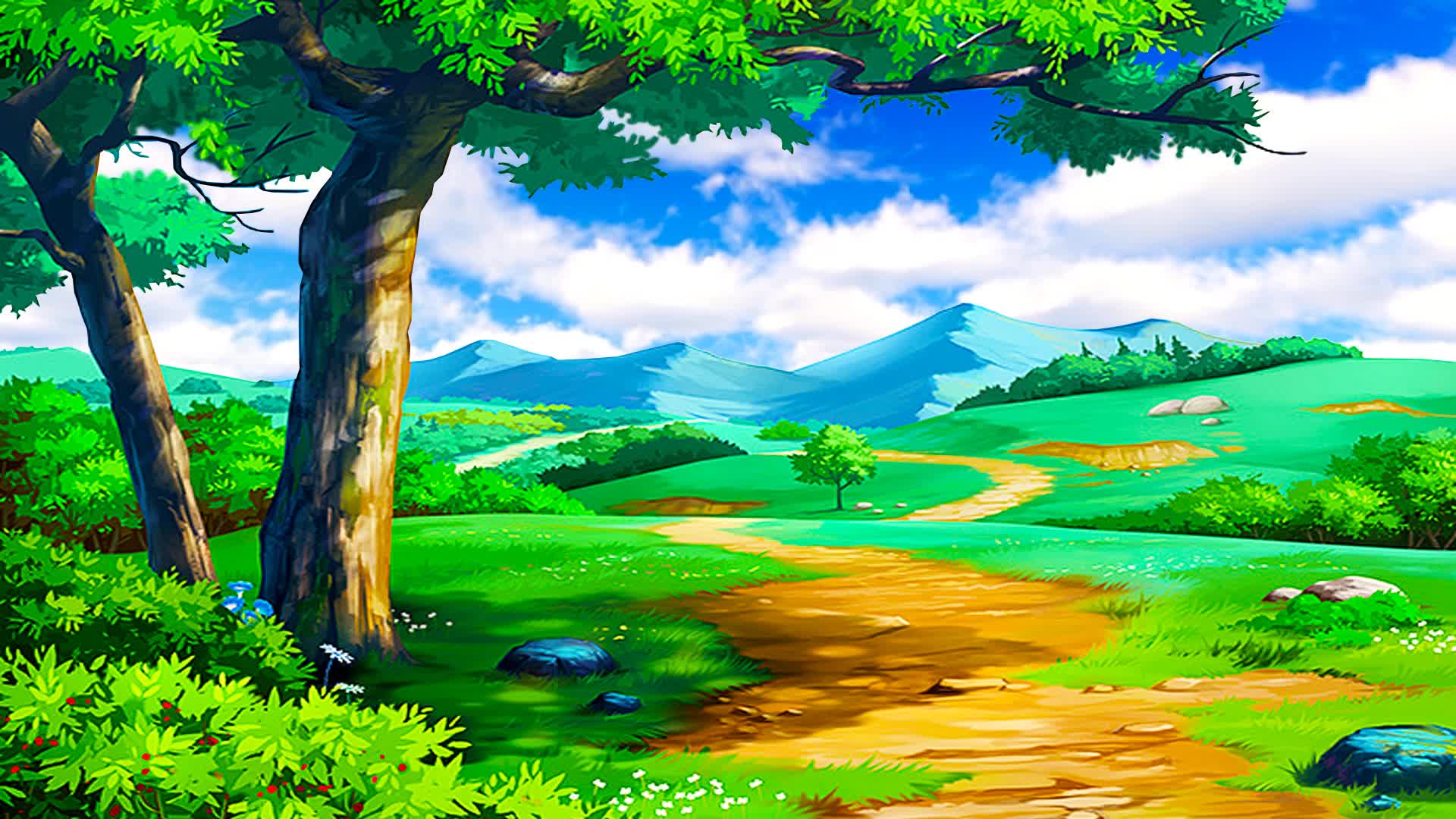 卡通奇幻森林舞台背景 卡通树林卡通背景森林 野外魔法大树草地 梦幻森林背景视频 儿童节目背景素材 幼儿少儿节目舞台背景 星光粒子树林森林 幼儿园课件小路素材 古代小路