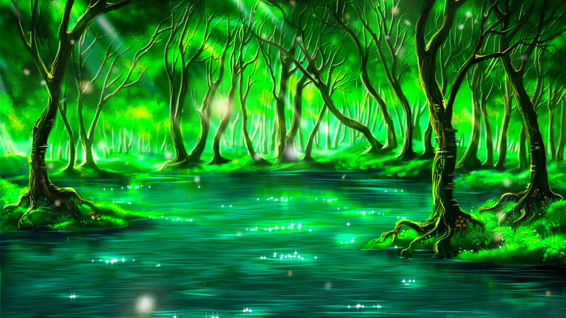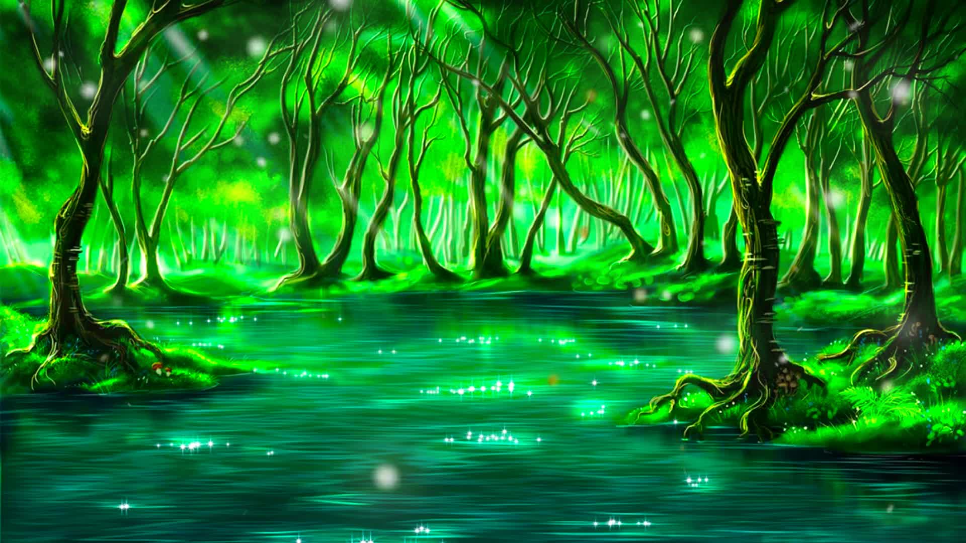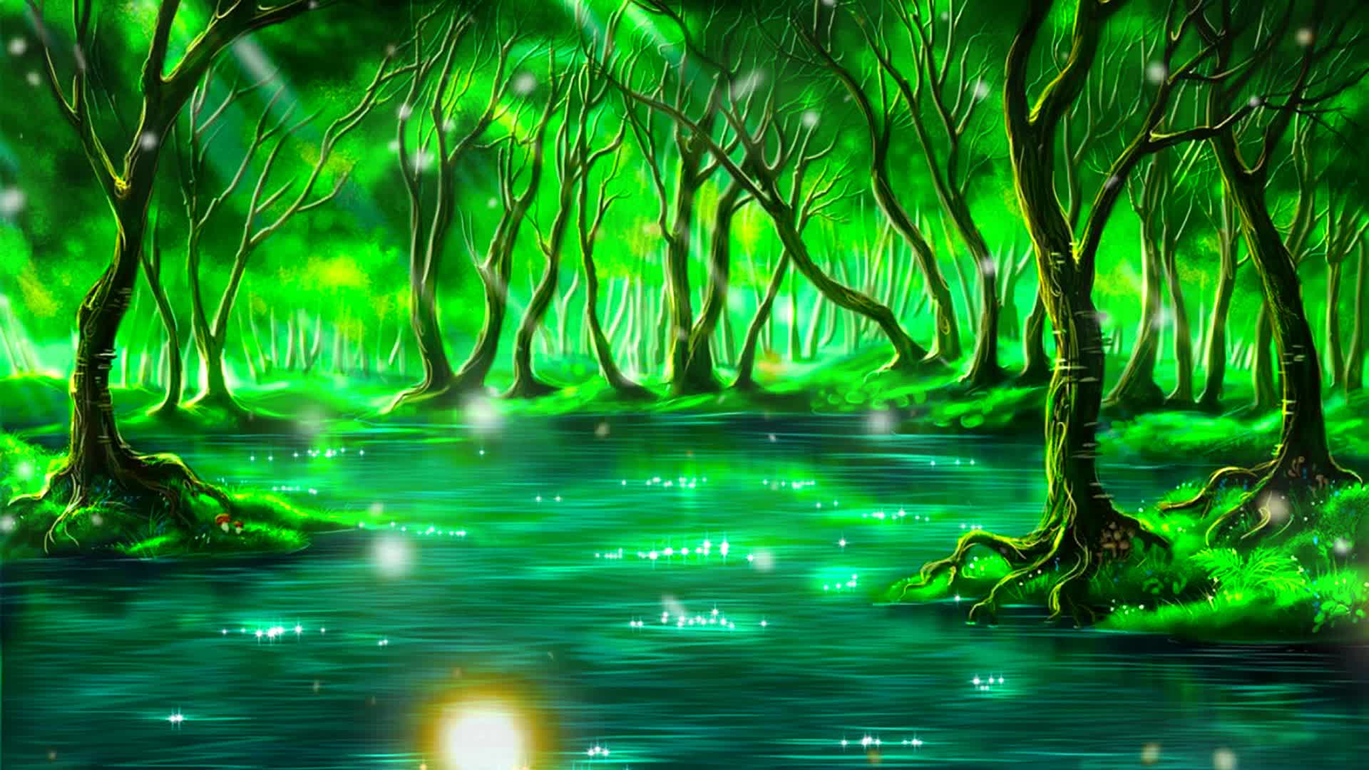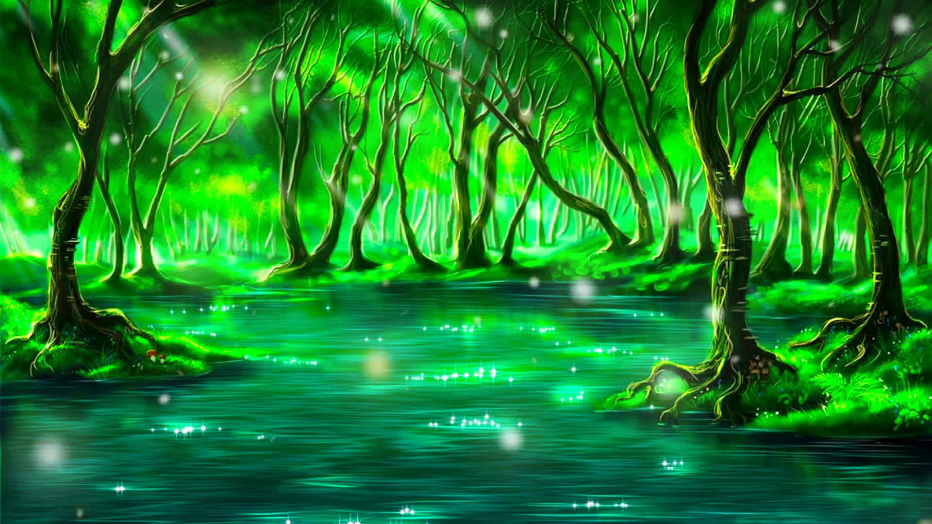 卡通奇幻森林舞台背景 卡通树林卡通背景森林 魔法大树湿地沼泽 梦幻森林背景视频 儿童节目背景素材 幼儿少儿节目舞台背景 星光粒子树林森林 幼儿园课件背景素材 蓝色粒子背景卡通