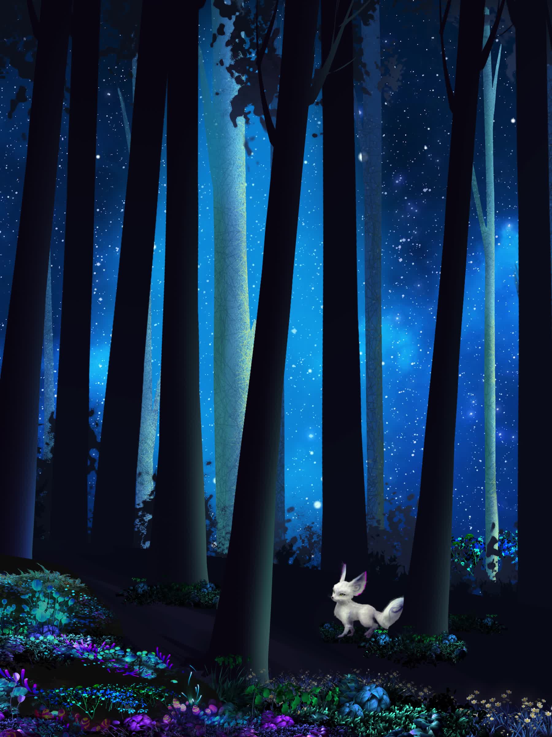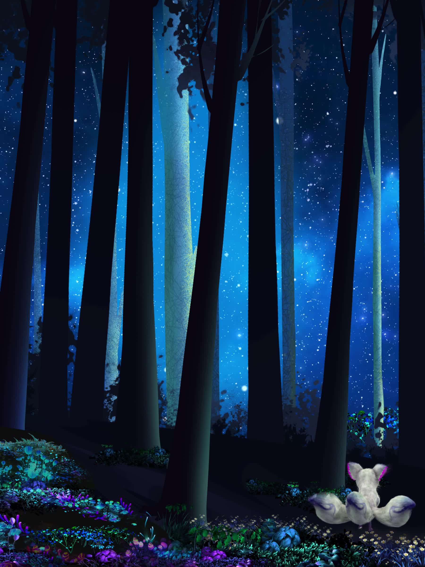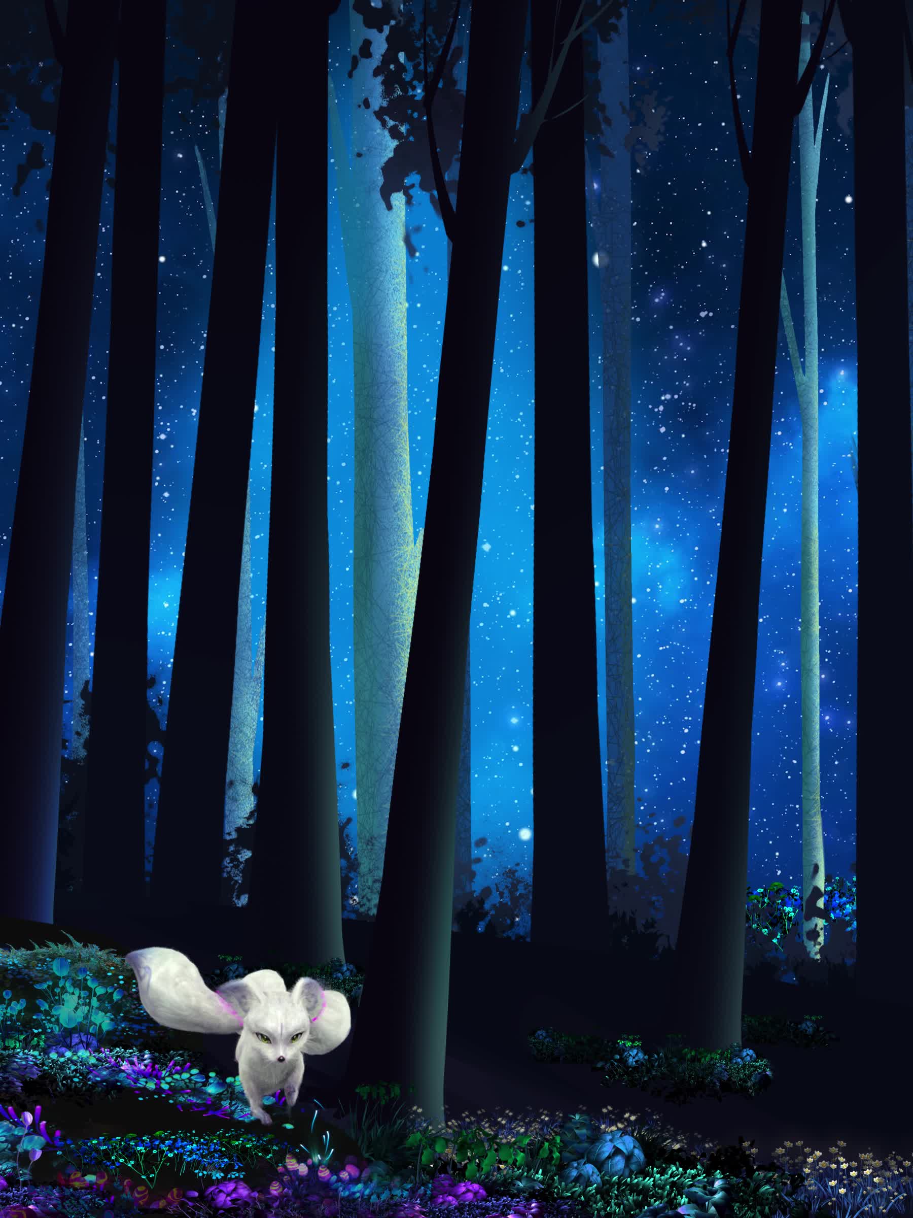 狐狸 狐仙 森林树 森林动物 星空树林