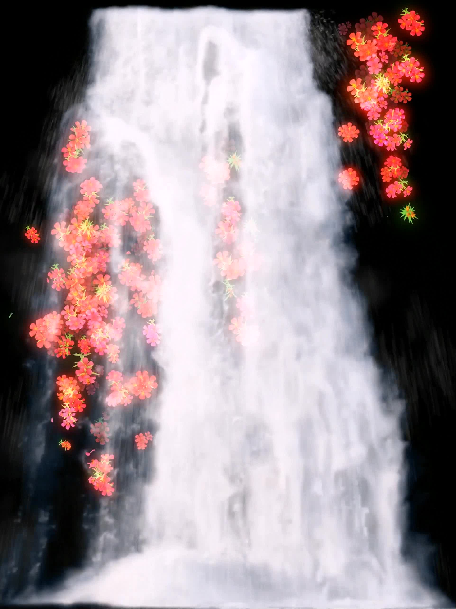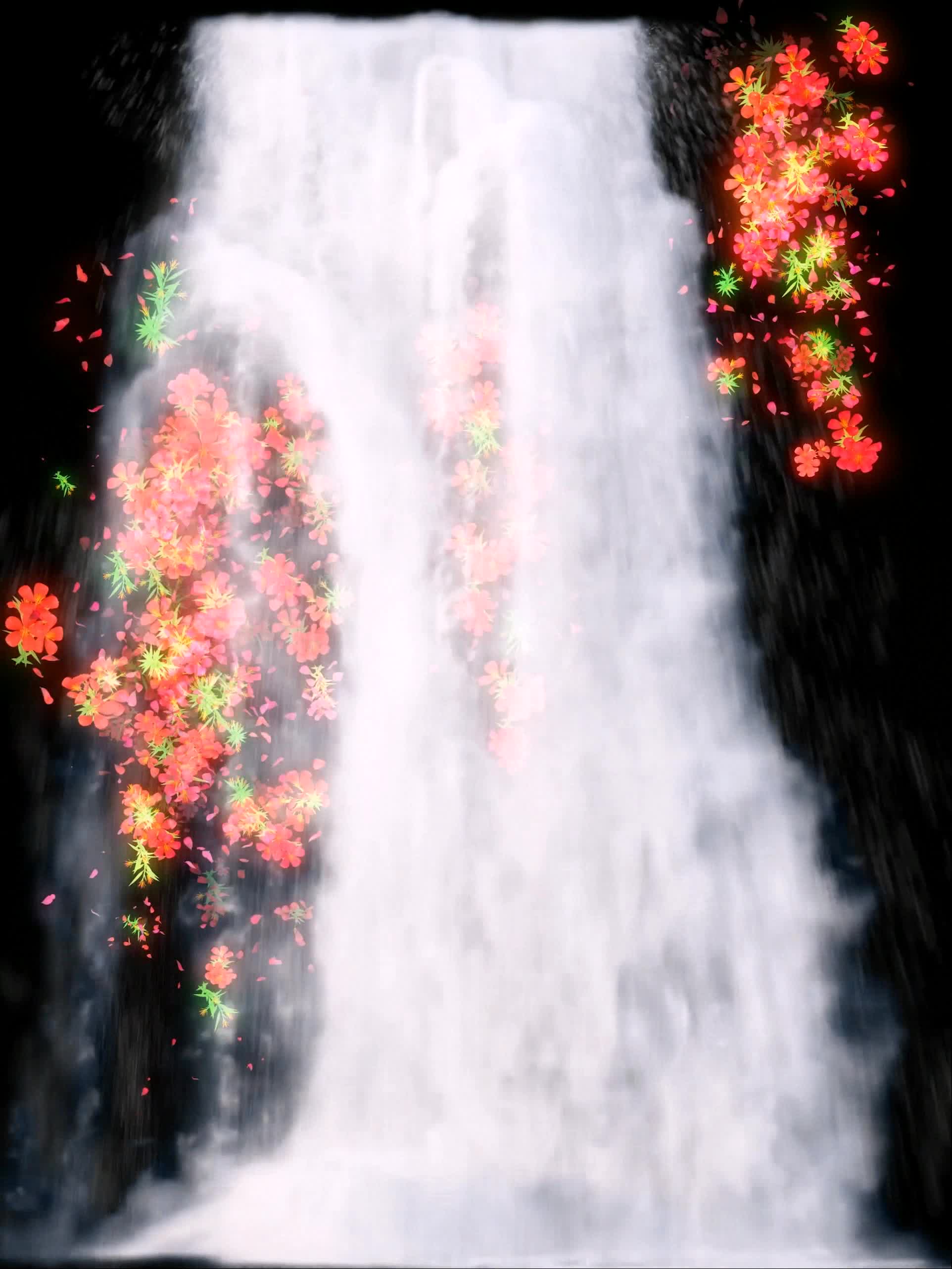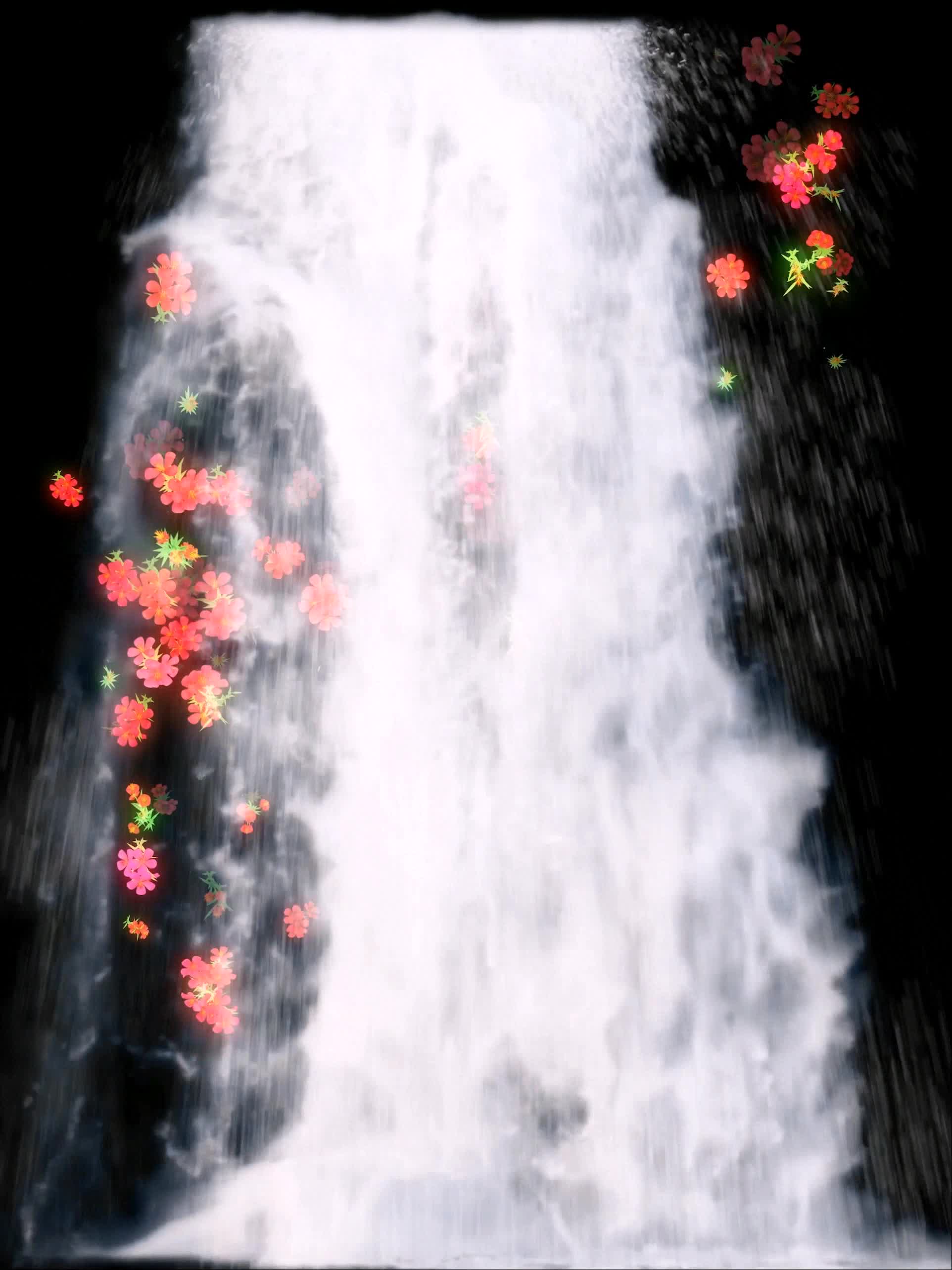 瀑布 开花 花朵 橙色花朵 全息素材飞流直下三千尺