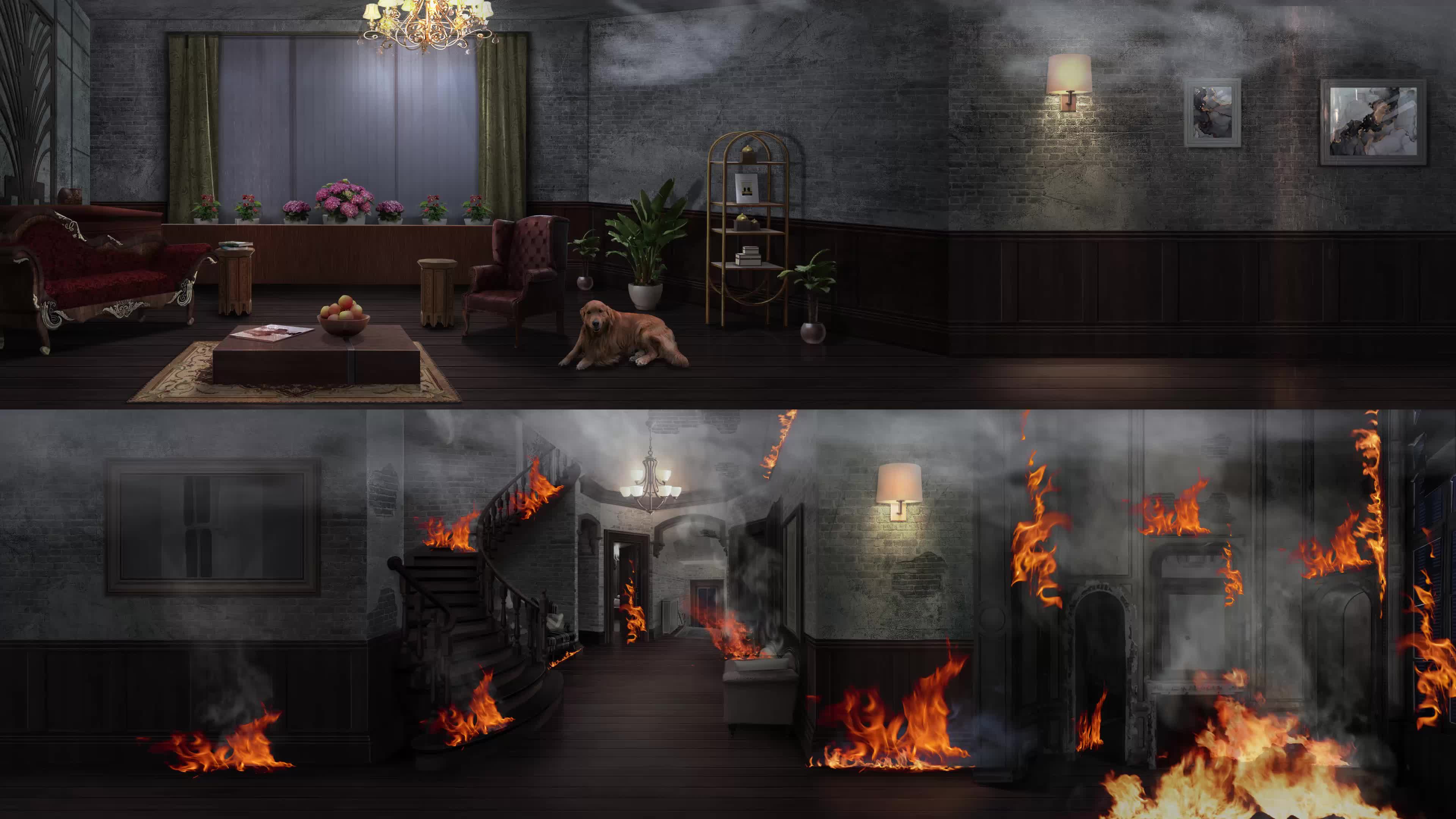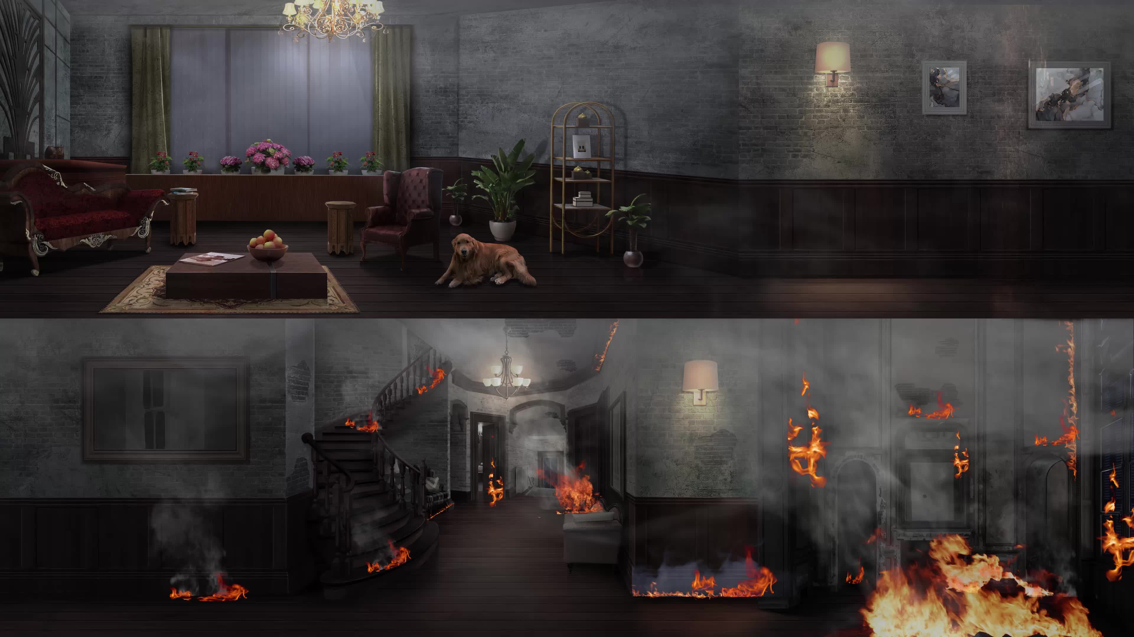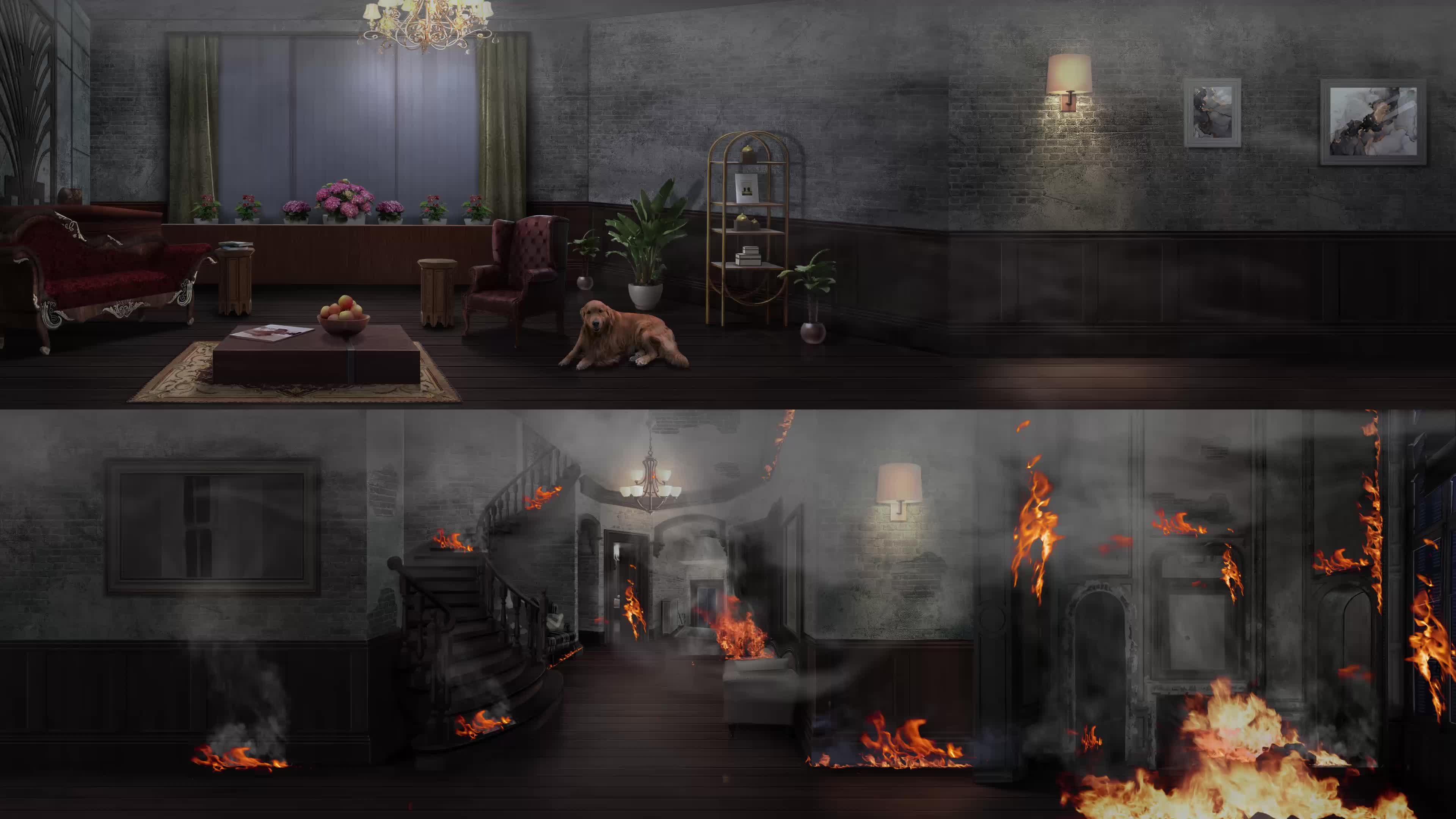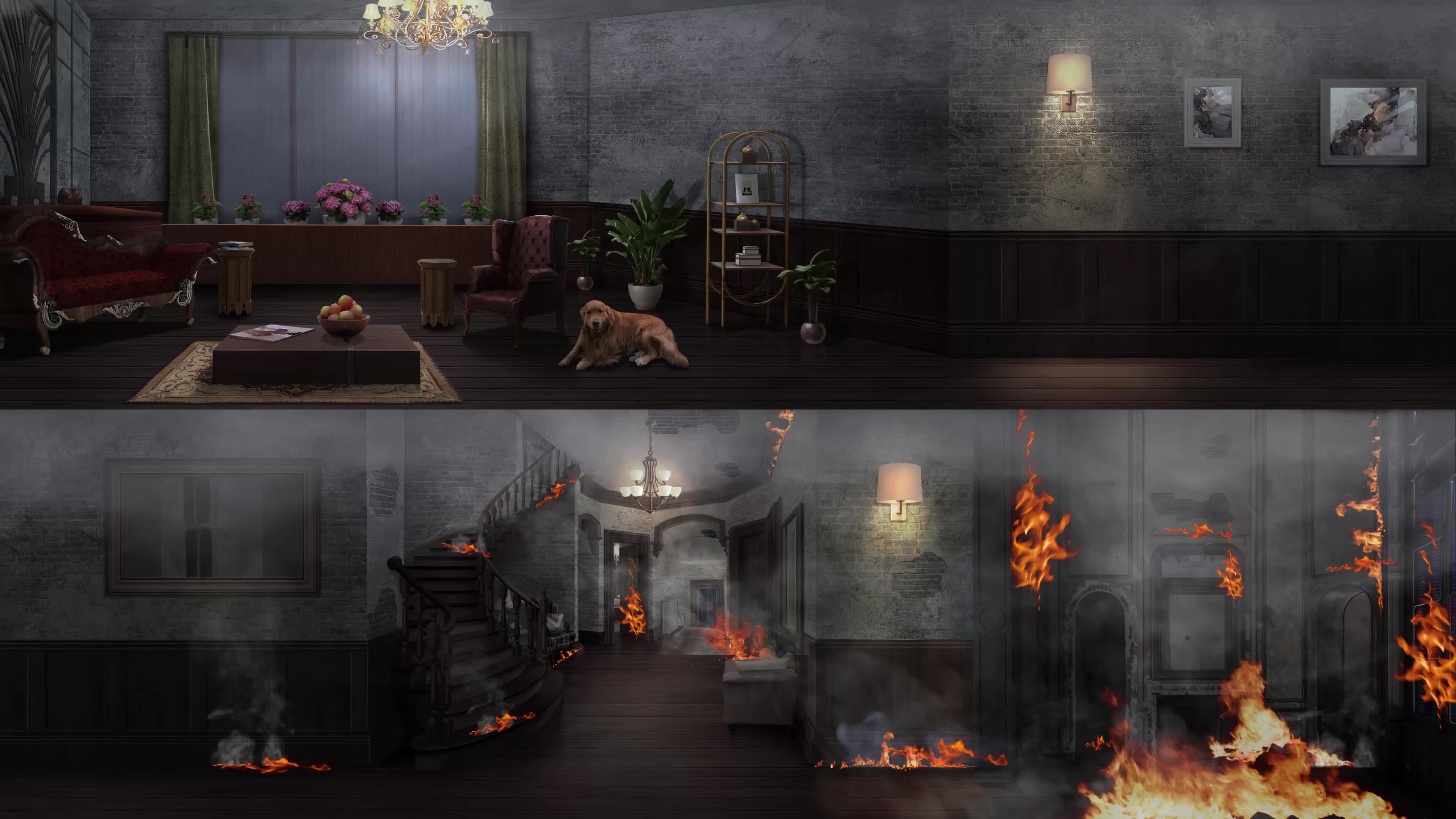 +final_房间2 火烧房子 火烧别墅 房子着火 火情 燃烧 内燃