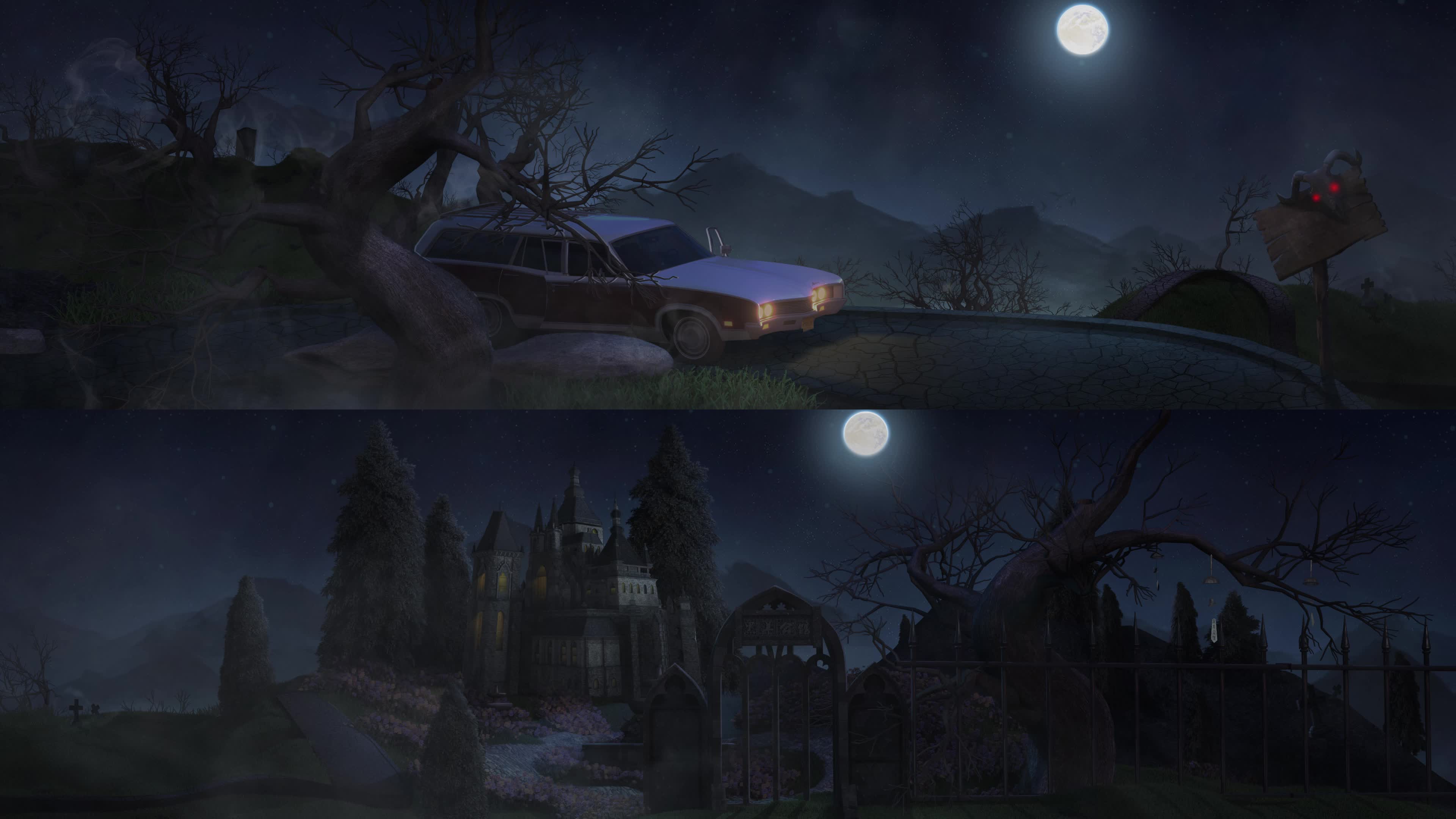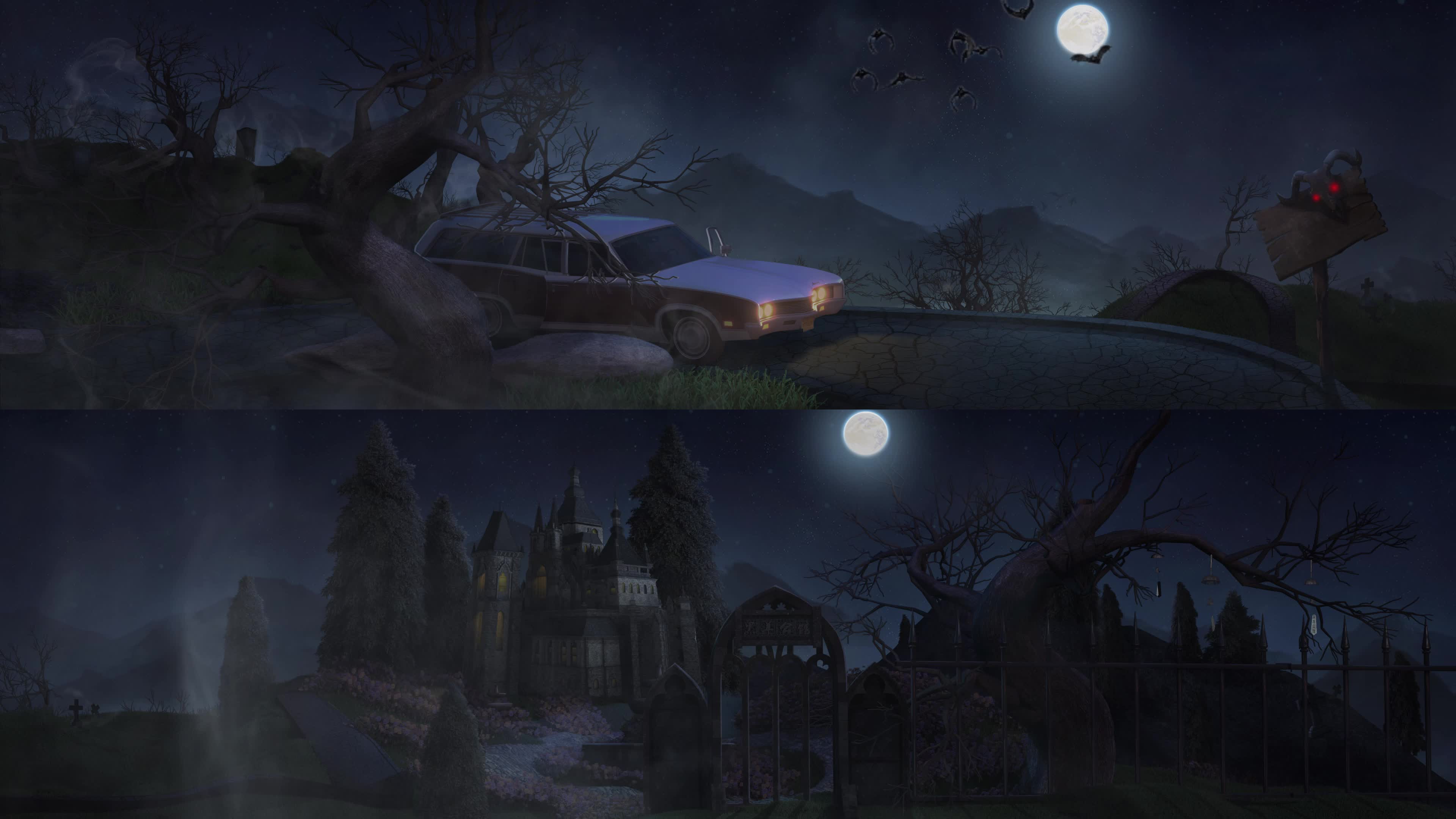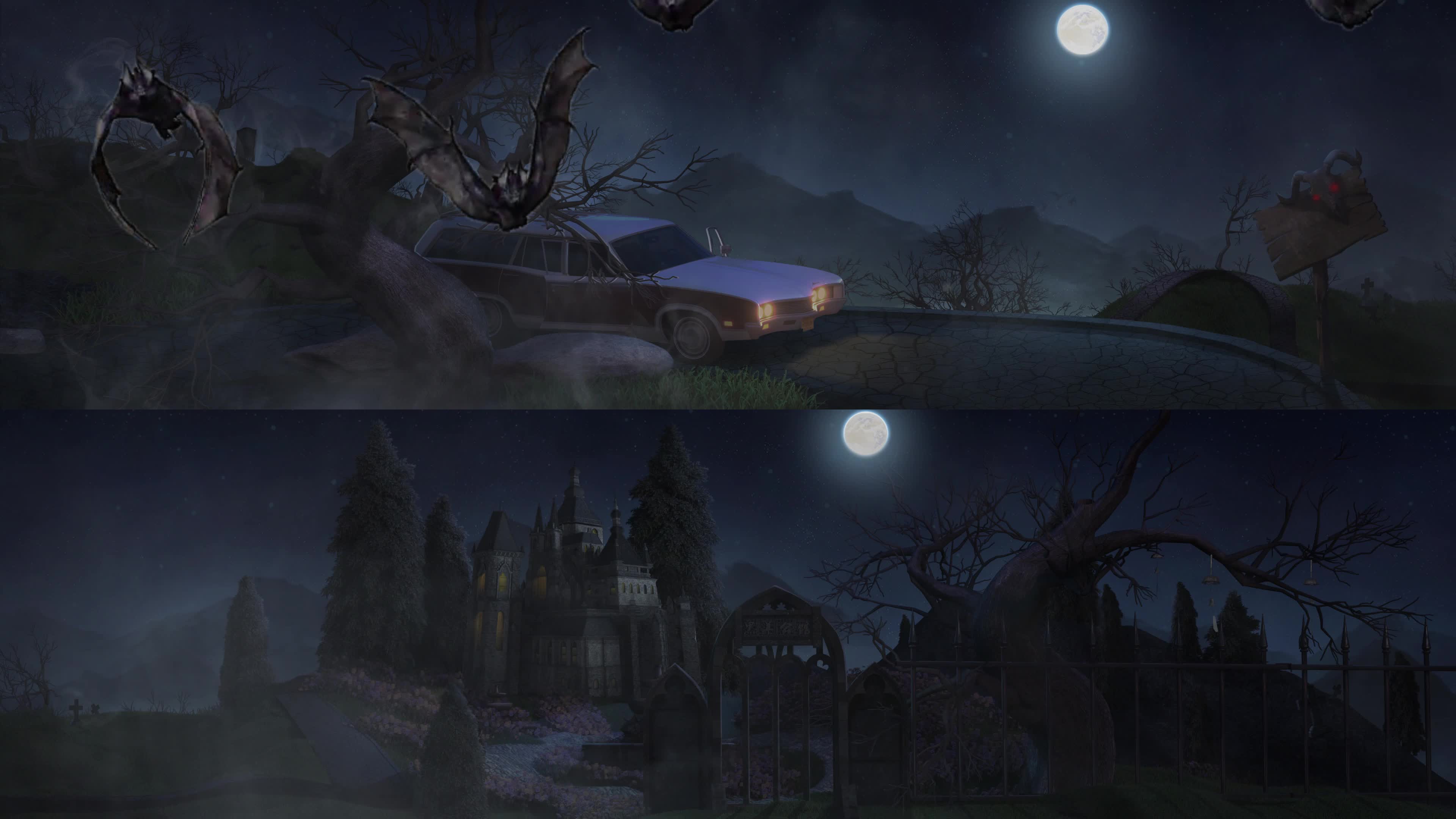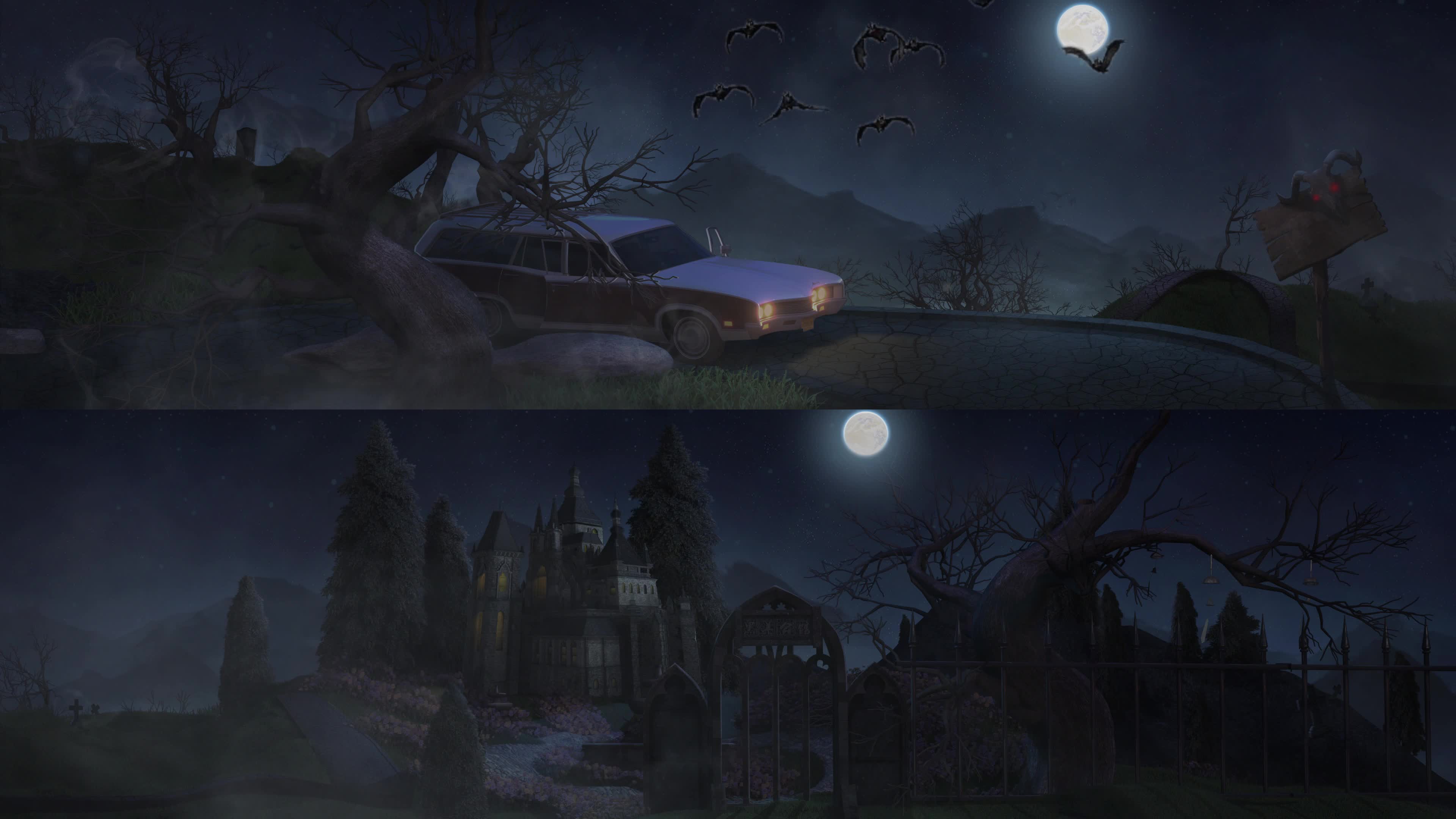 剧本杀户外场景 欧式场景 野外 圆月 蝙蝠 户外汽车 户外教堂 欧式建筑