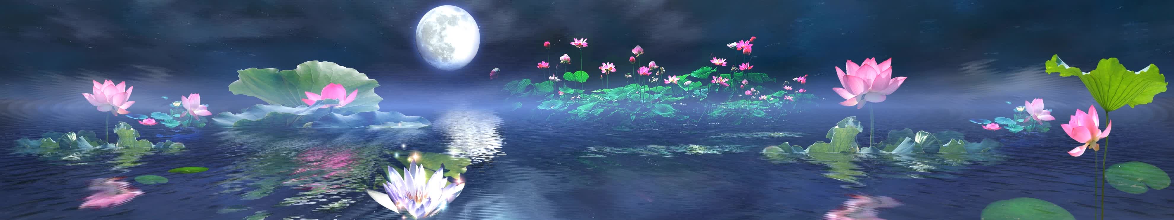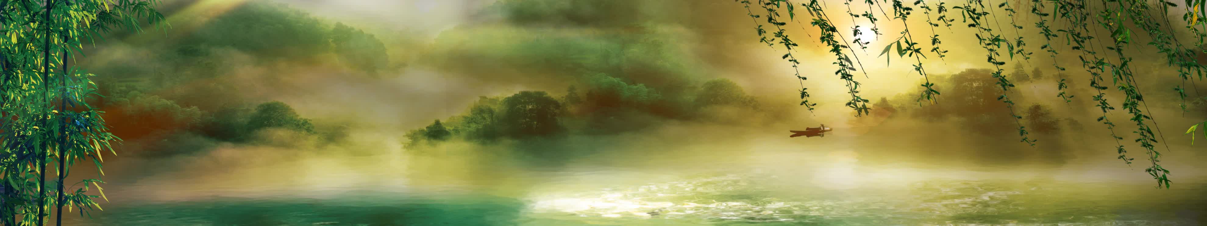 柳树 湖景 小船 远山 日出 日落 荷花池 月亮
