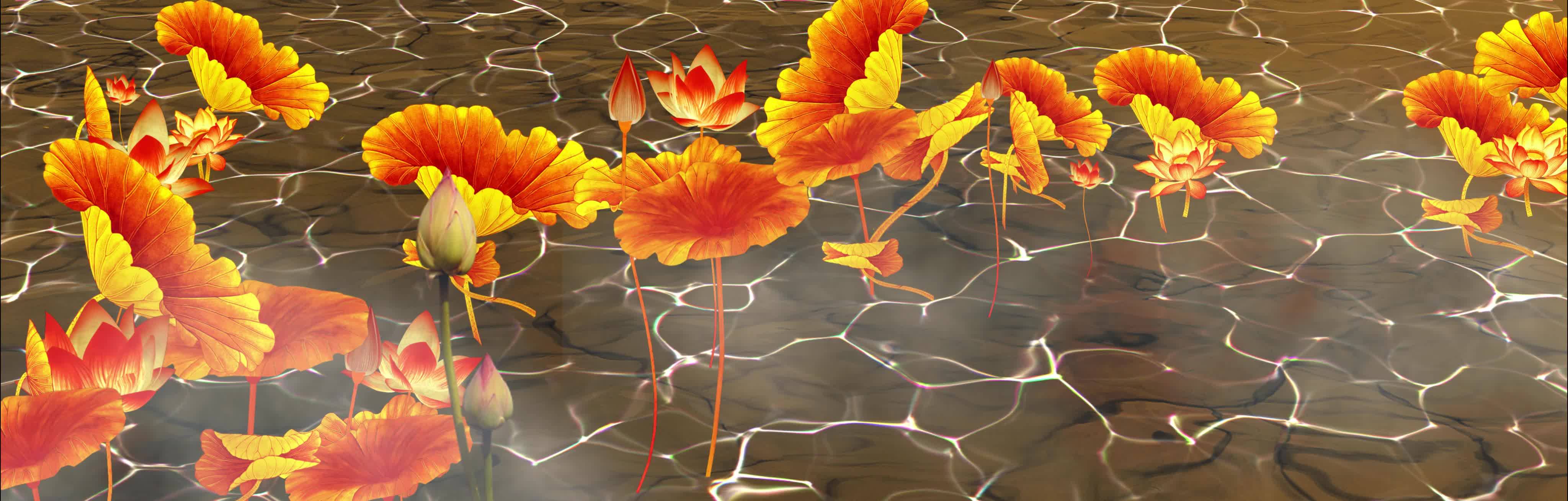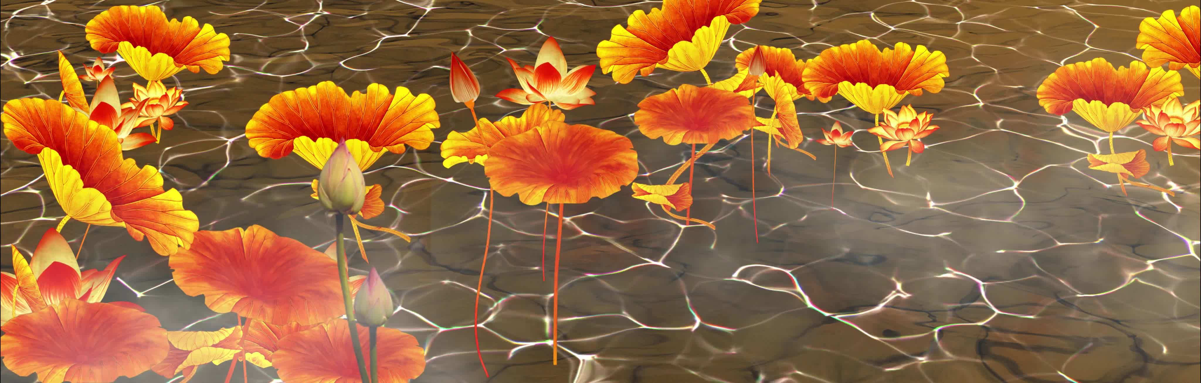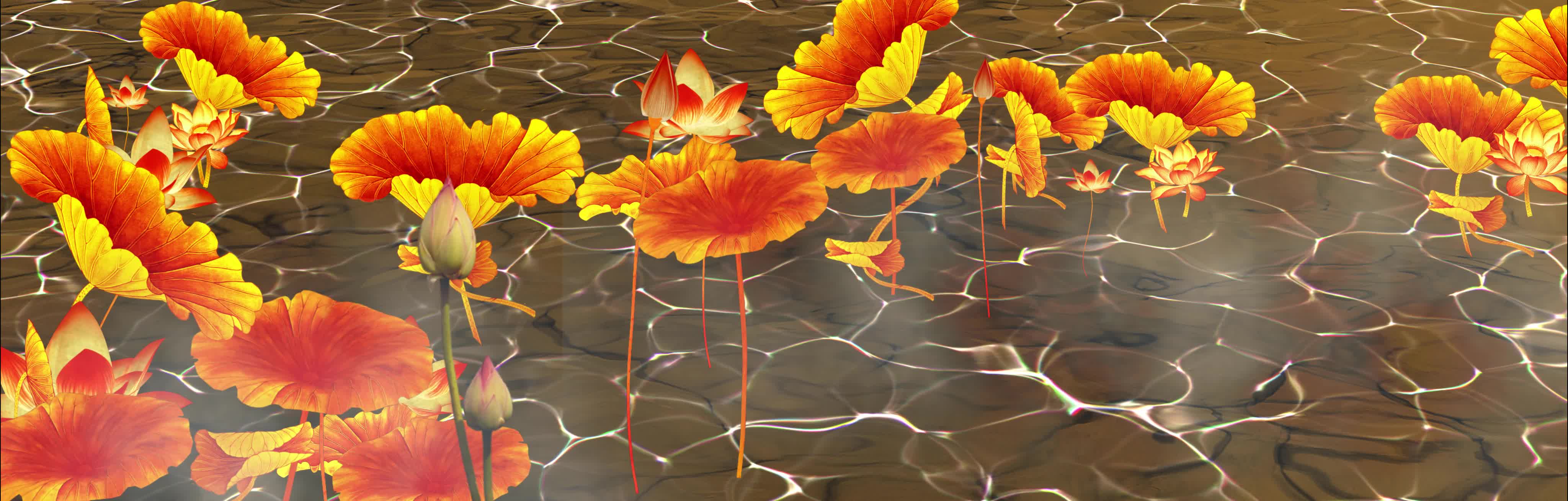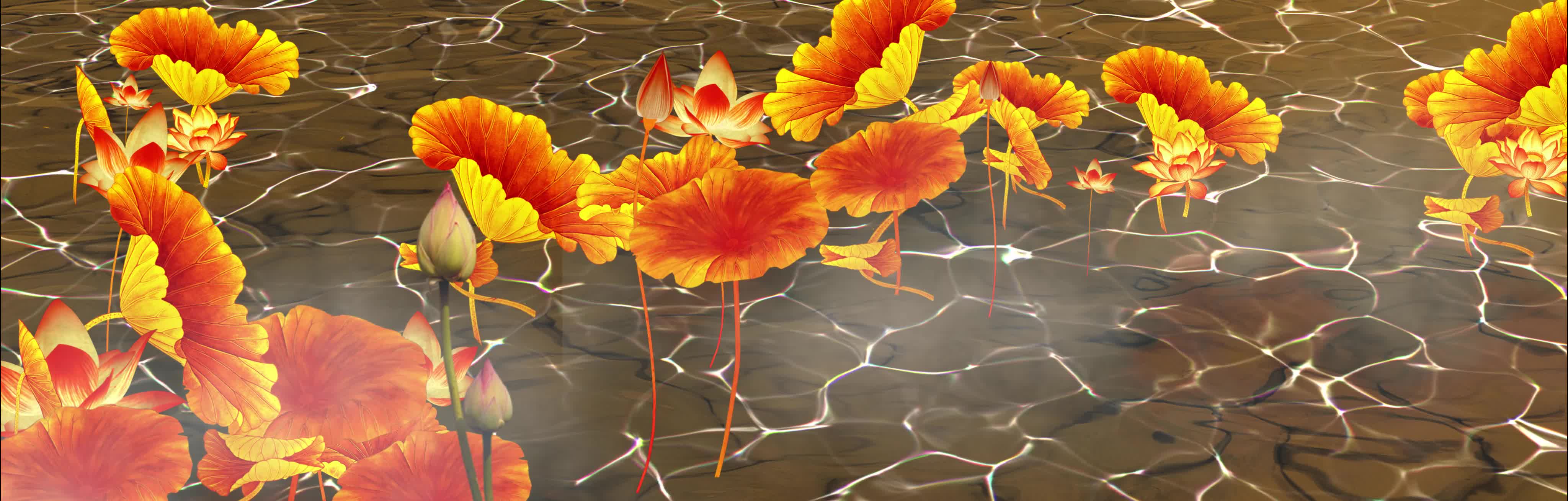 金色荷花 金色荷叶 莲花 莲花池 舞美背景素材 全息素材