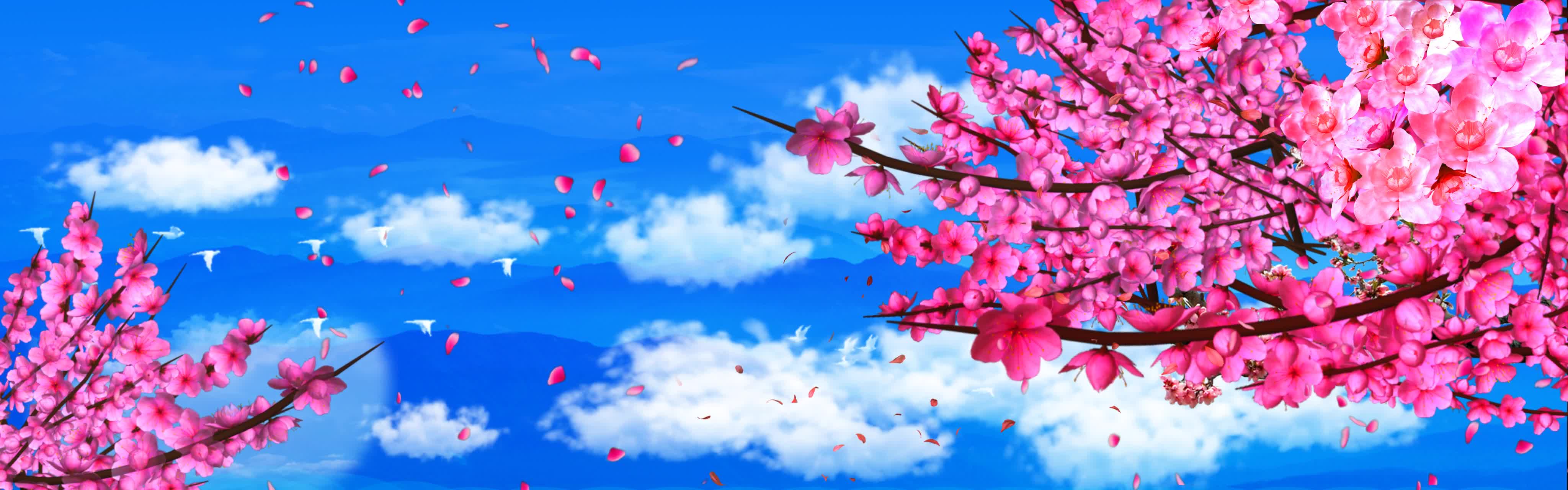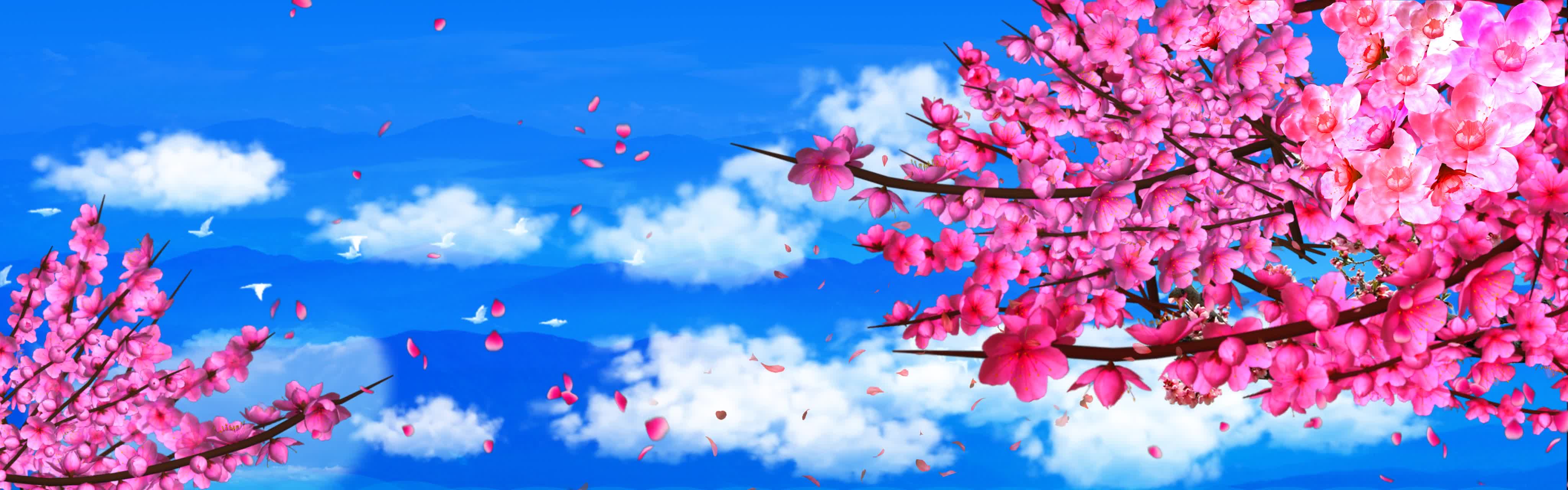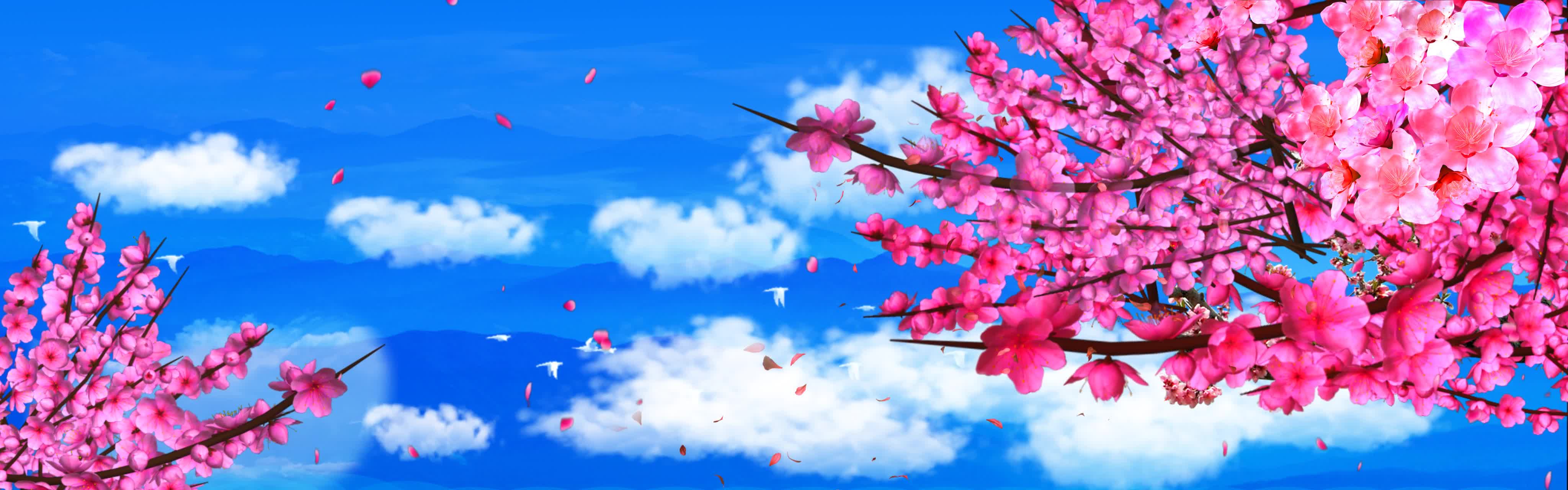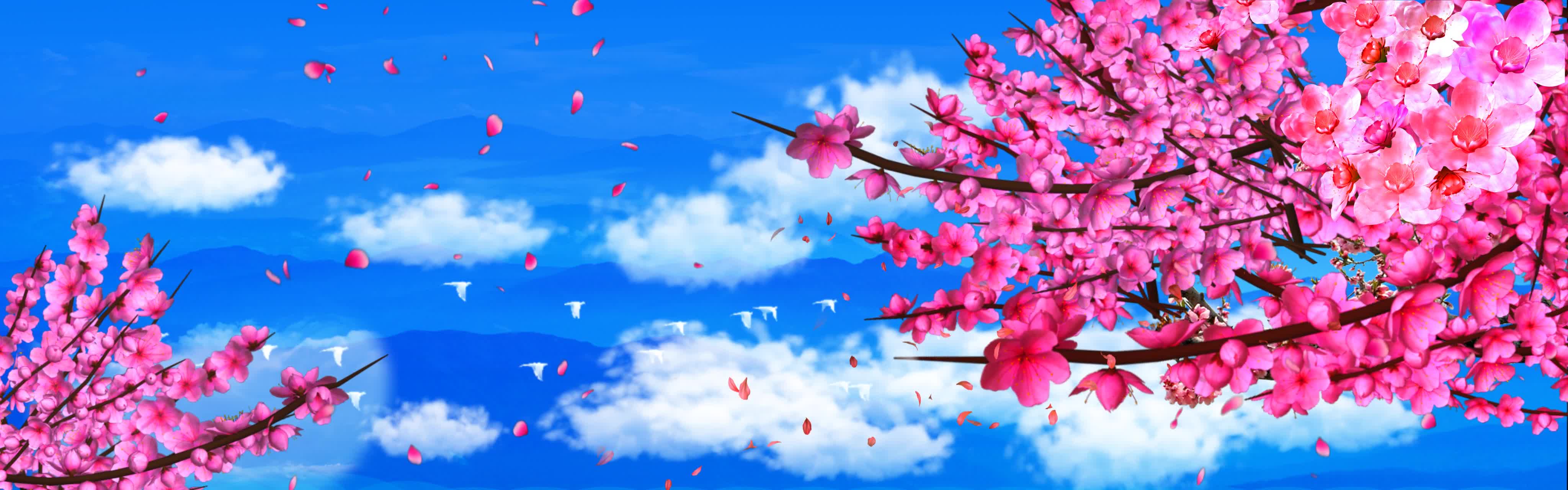 蓝天白云 桃花开 大雁飞 三维桃花树 舞美背景视频 全息素材 舞台素材