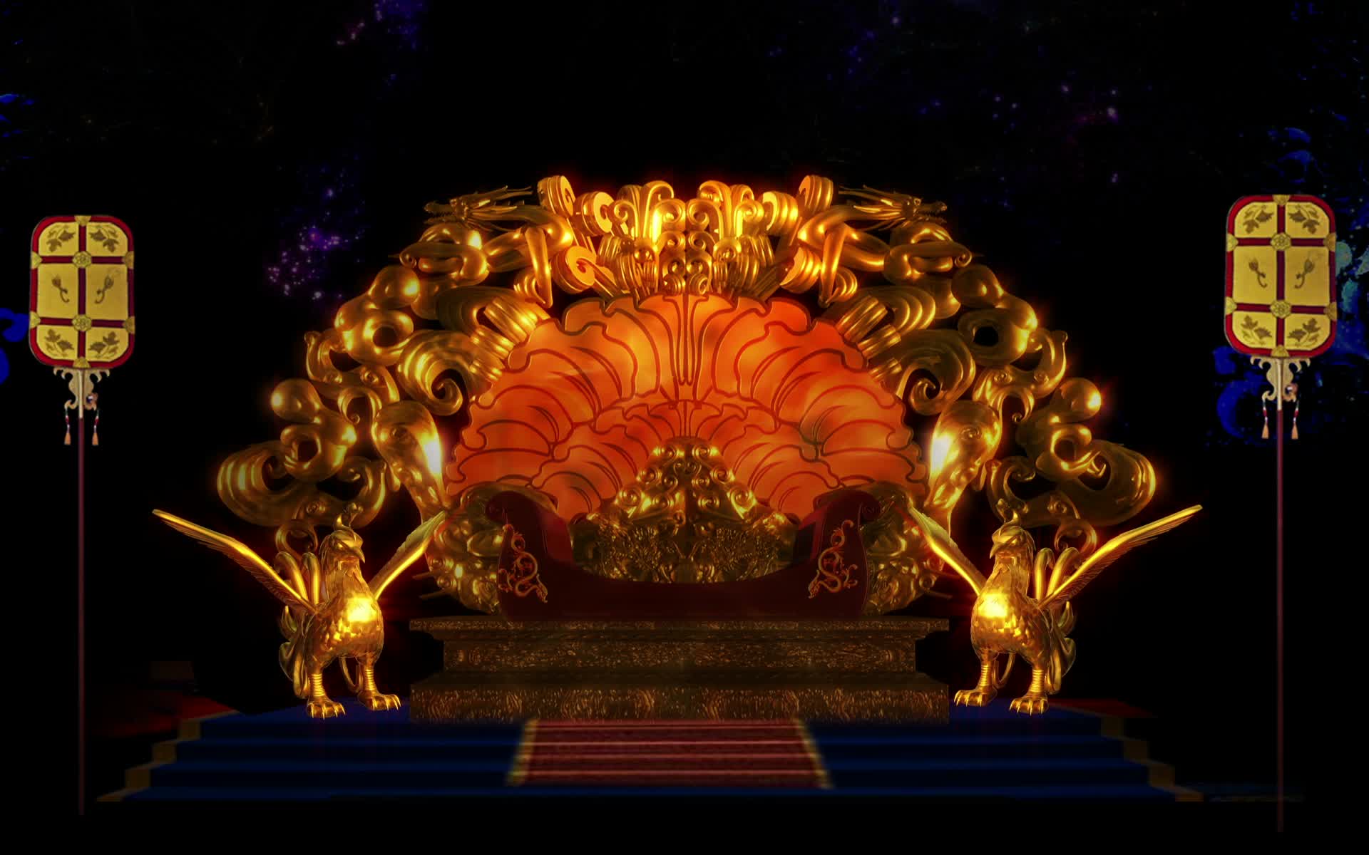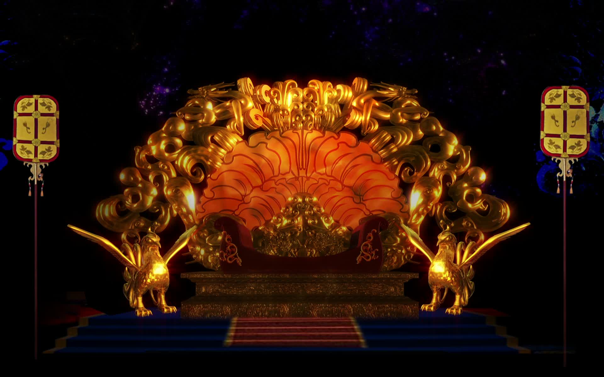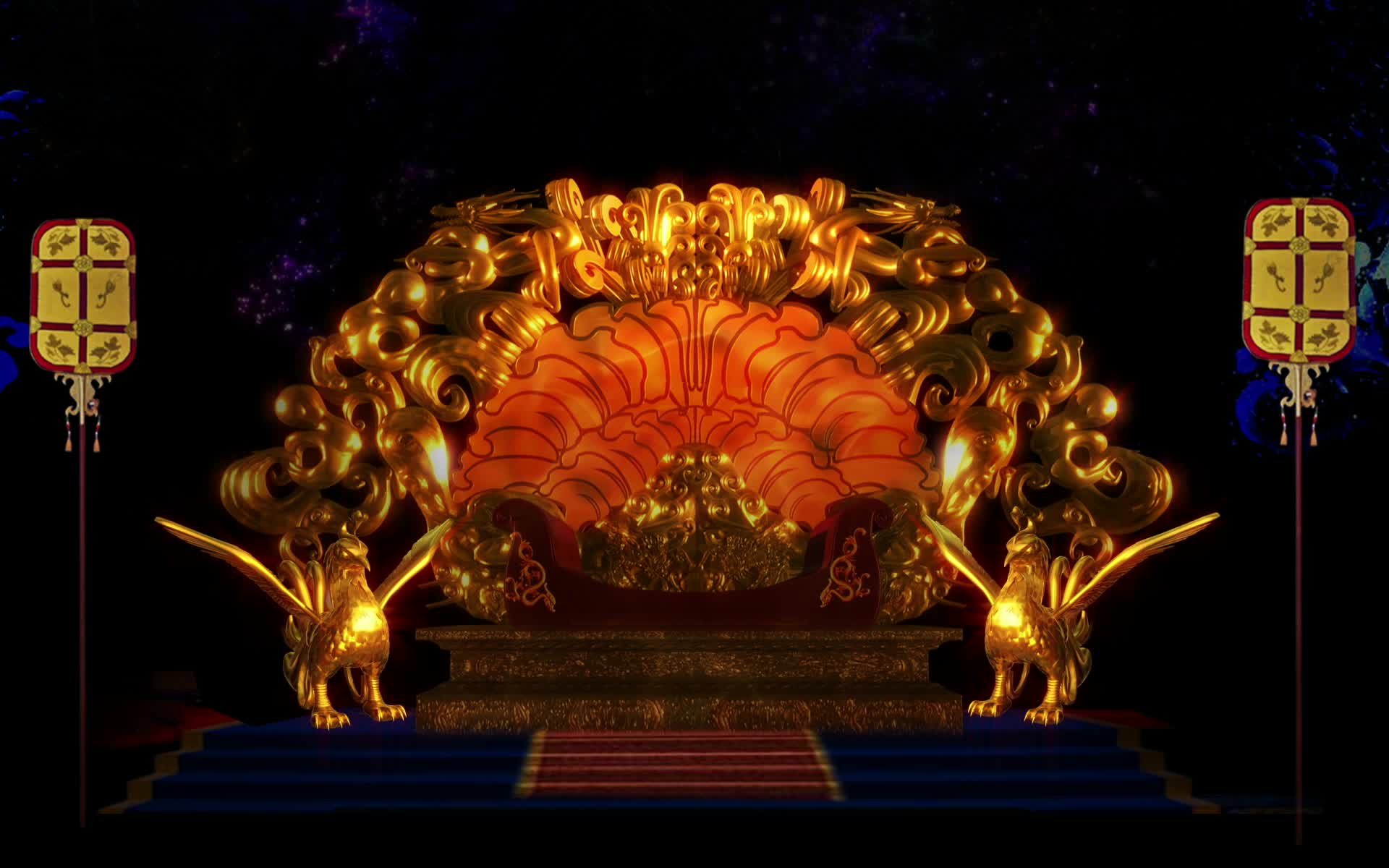 皇宫 金色 宫殿 舞台 背景 宝座 龙椅 凤凰 宴会厅 全息宴会厅 全息婚礼