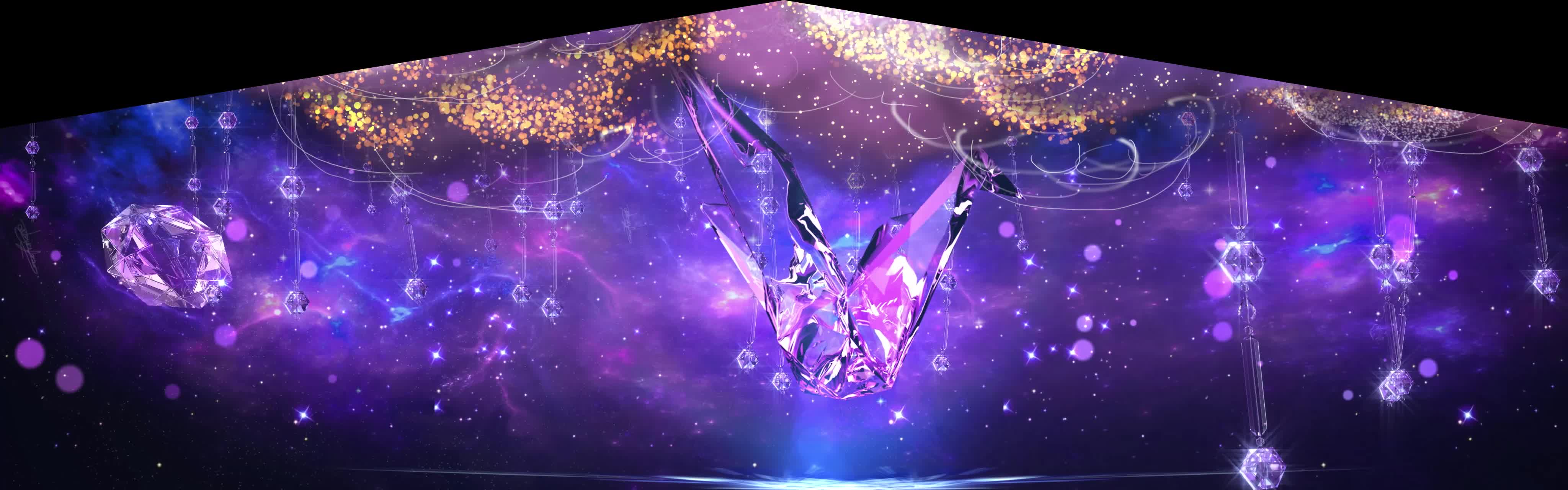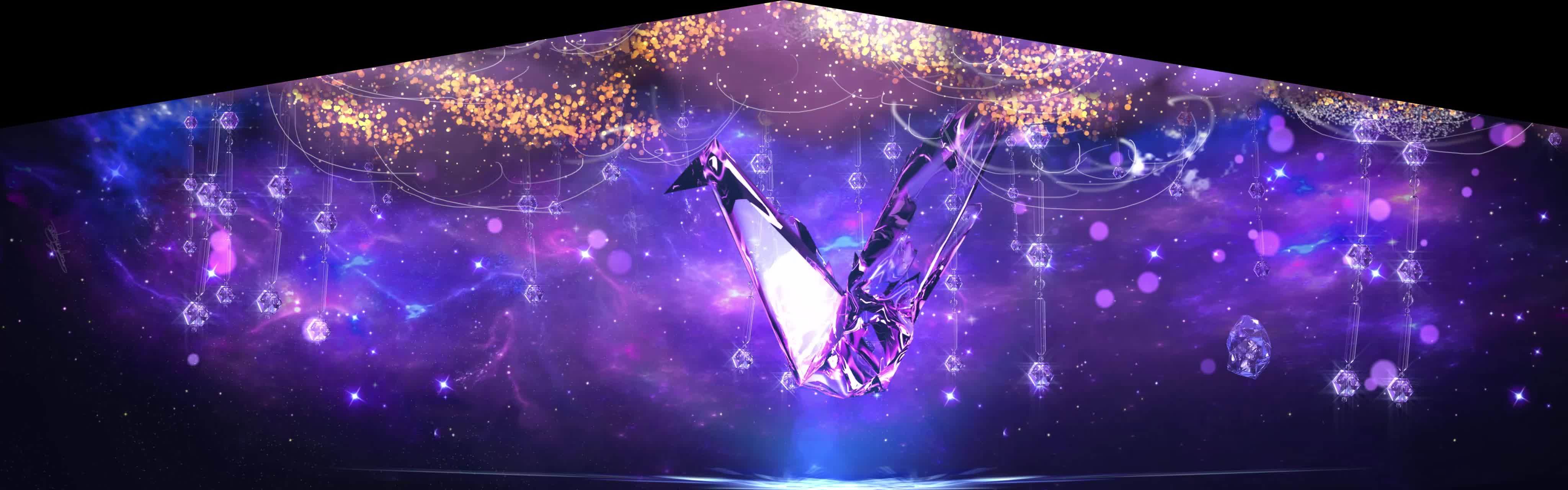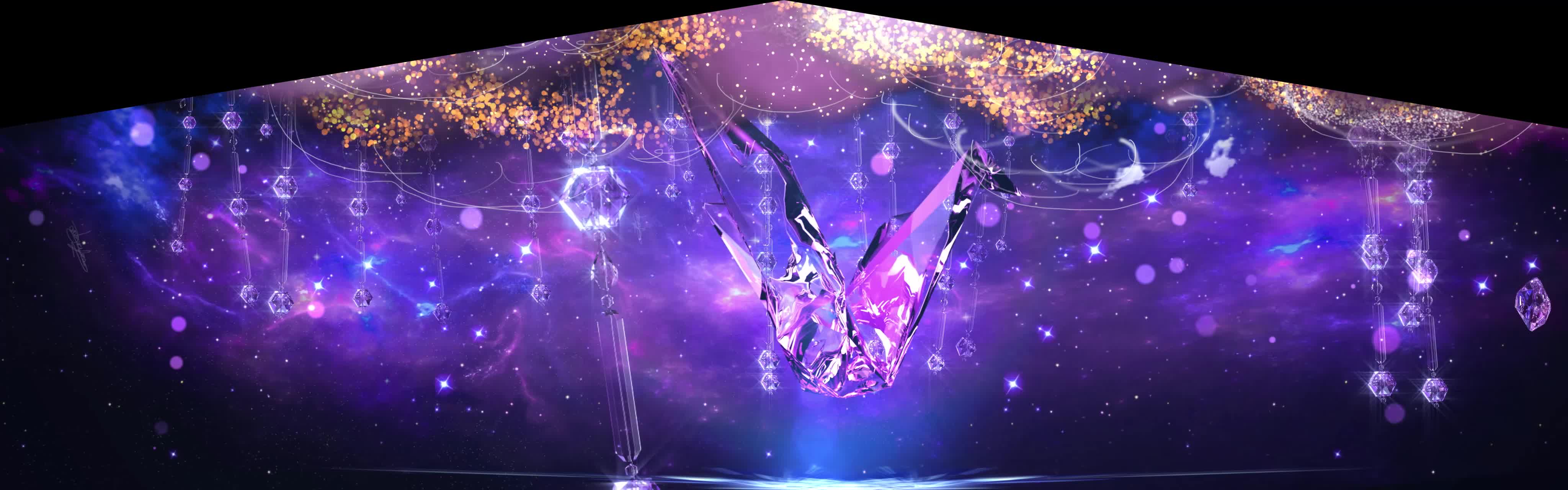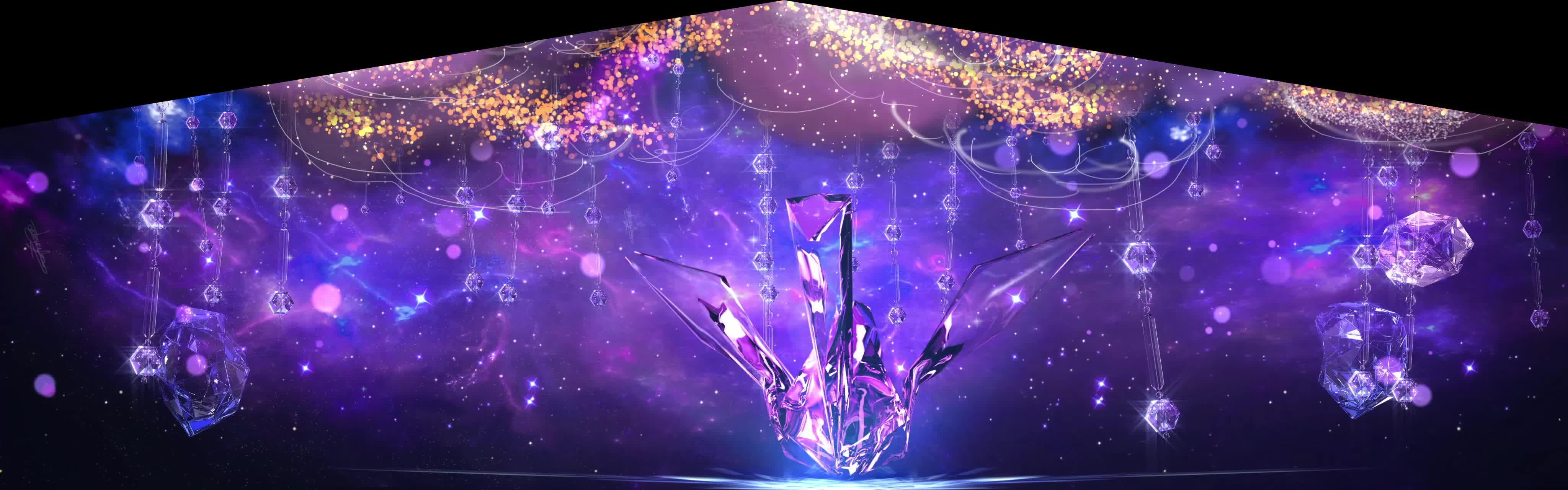 水晶 水晶鸟 千纸鹤 水晶帘子 星空 宇宙 暖场 婚礼 舞台背景 紫色 白色 梦幻 浪漫 宴会厅 展厅 展馆 全息投影素材