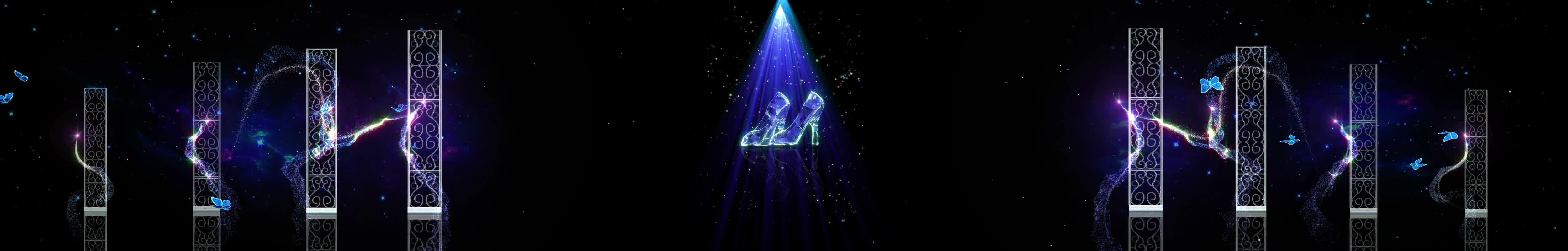水晶 欧式 柱子 水晶鞋 光束 金色粒子 蝴蝶 星空 星星 宇宙 暖场 婚礼 舞台背景 金色 蓝色 梦幻 浪漫 宴会厅 展厅 展馆 全息投影素材