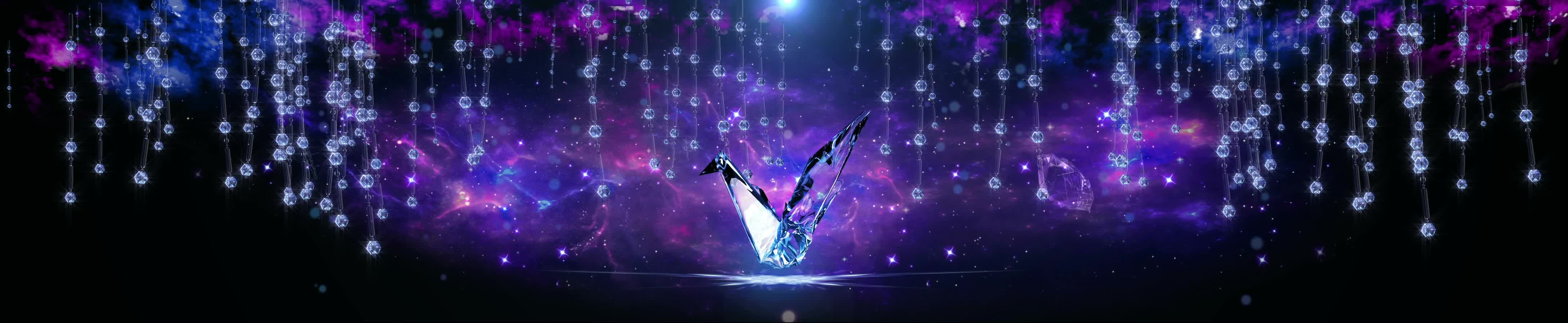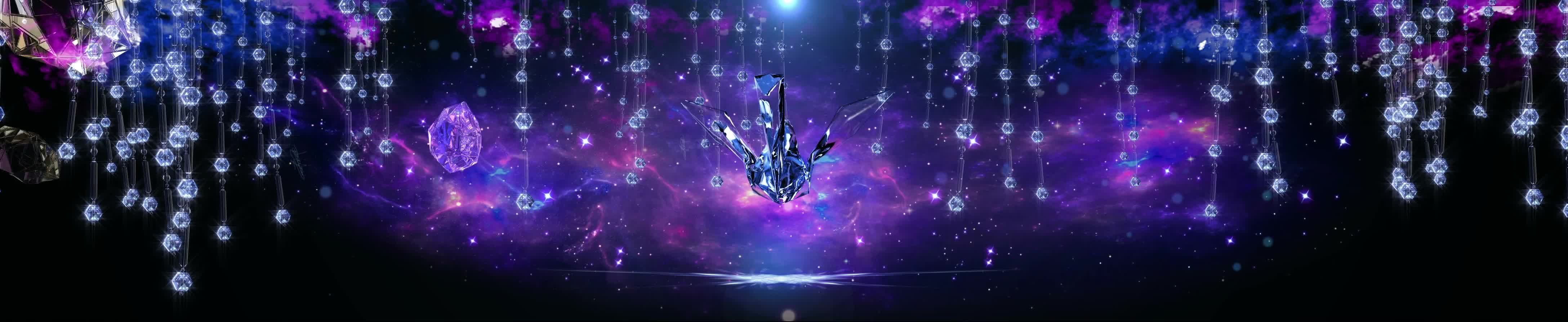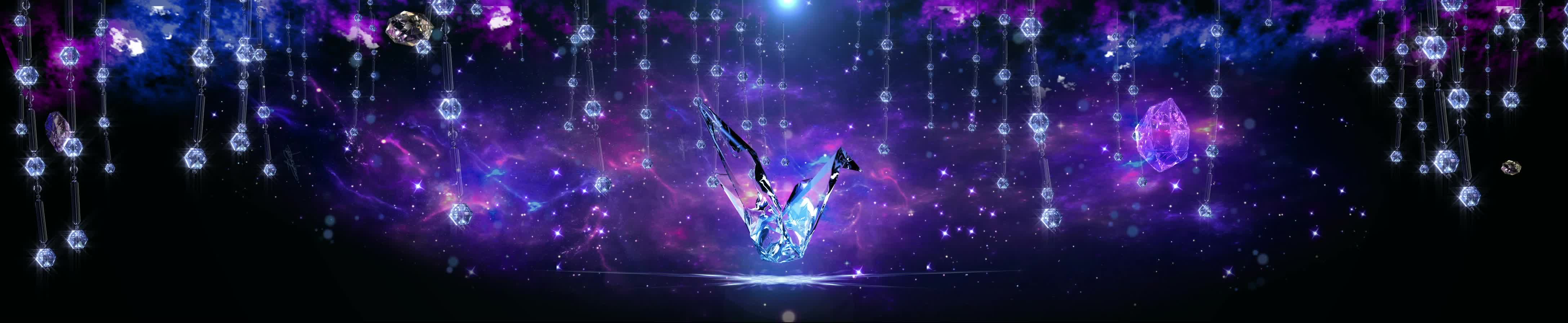 水晶 欧式 帘子 水晶鸟 鸟 千纸鹤 钻石 星空 星星 宇宙 暖场 婚礼 舞台背景 紫色 梦幻 浪漫 宴会厅 全息投影素材