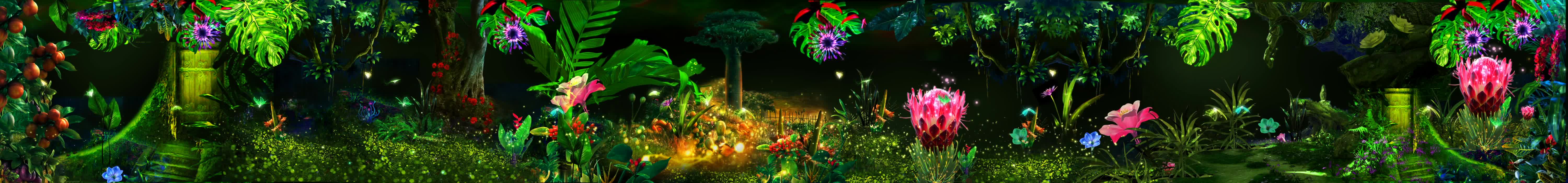 森林 丛林 树 花园 鲜花 蝴蝶 夜景 荧光 梦幻 风景 宴会厅 全息投影素材