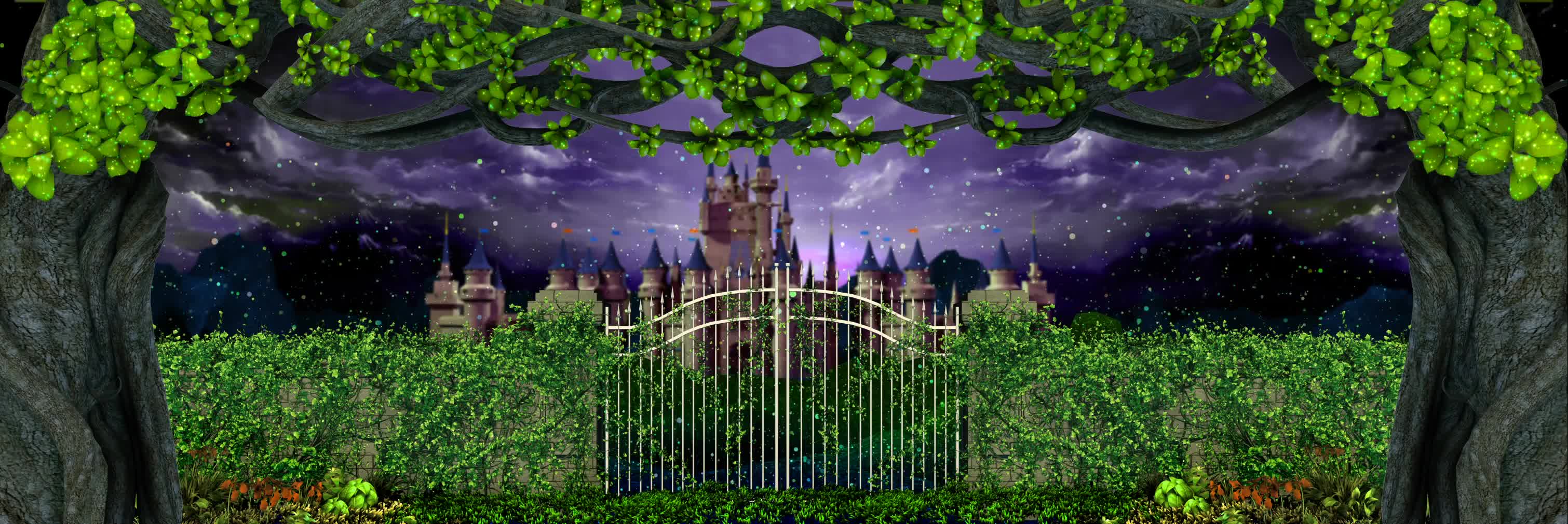 森林 城堡 大树 欧式建筑 绿叶 草丛 奇幻 梦幻 景区 风景 粒子 宴会厅 全息投影素材