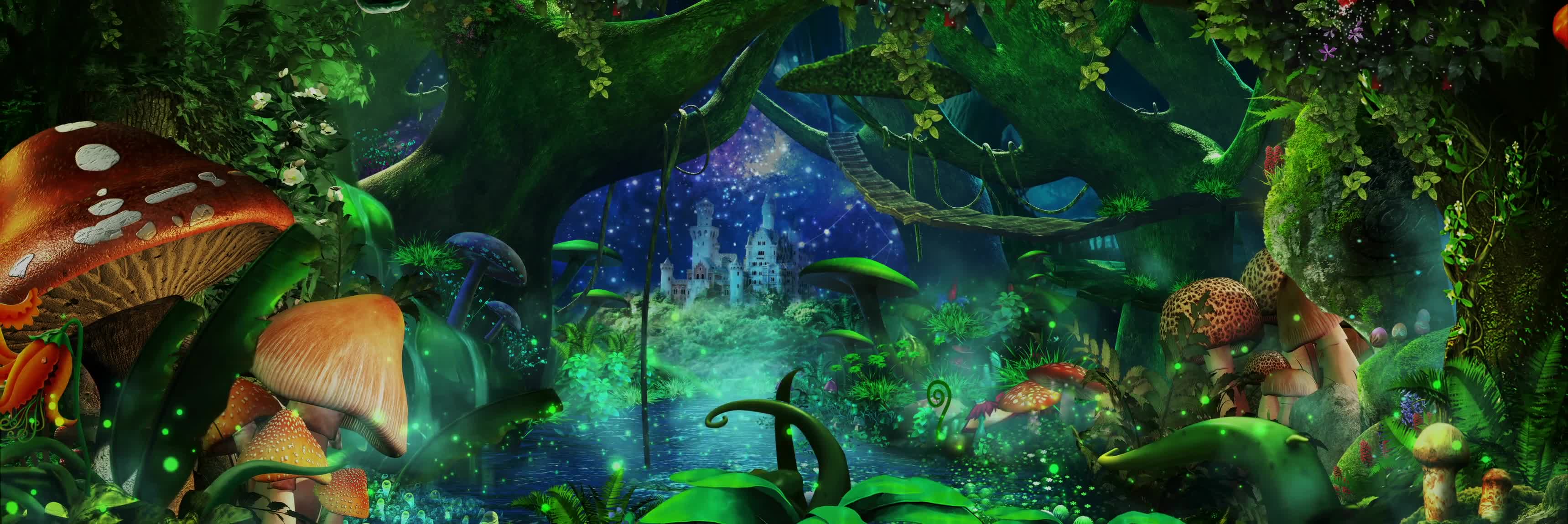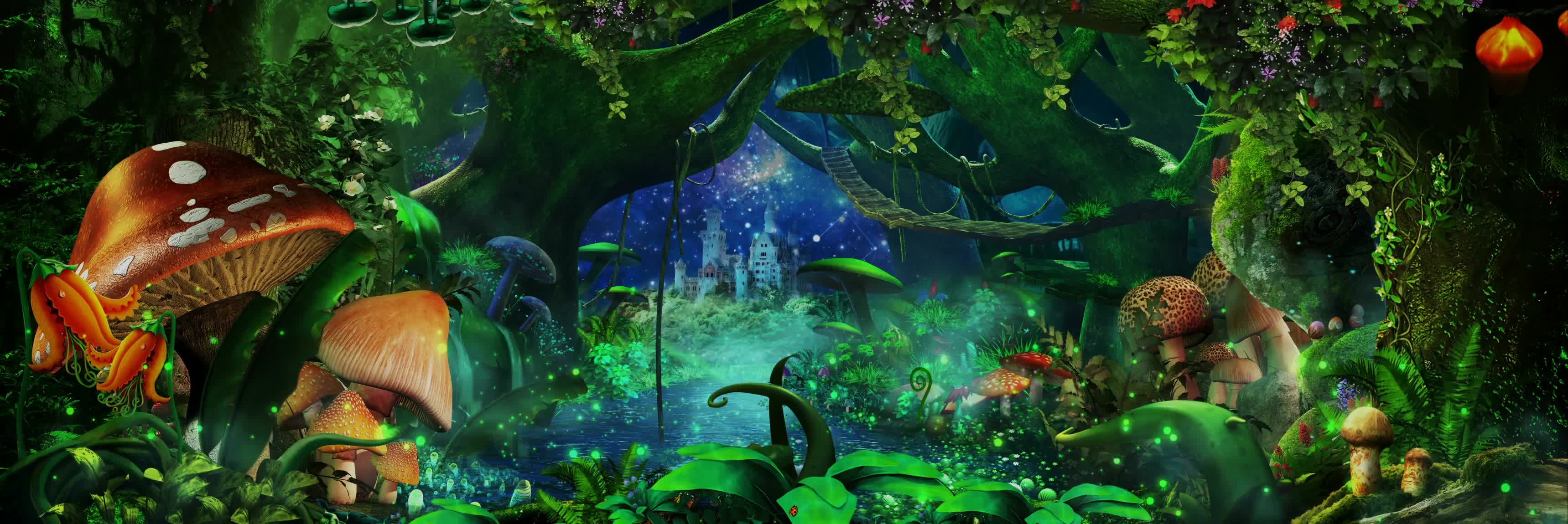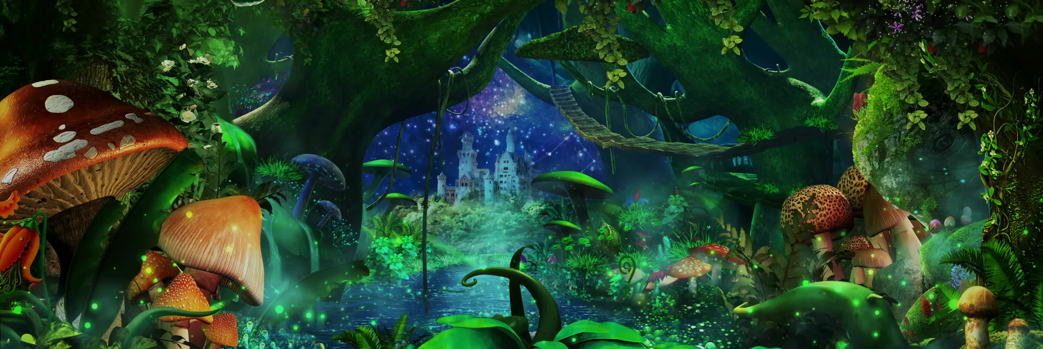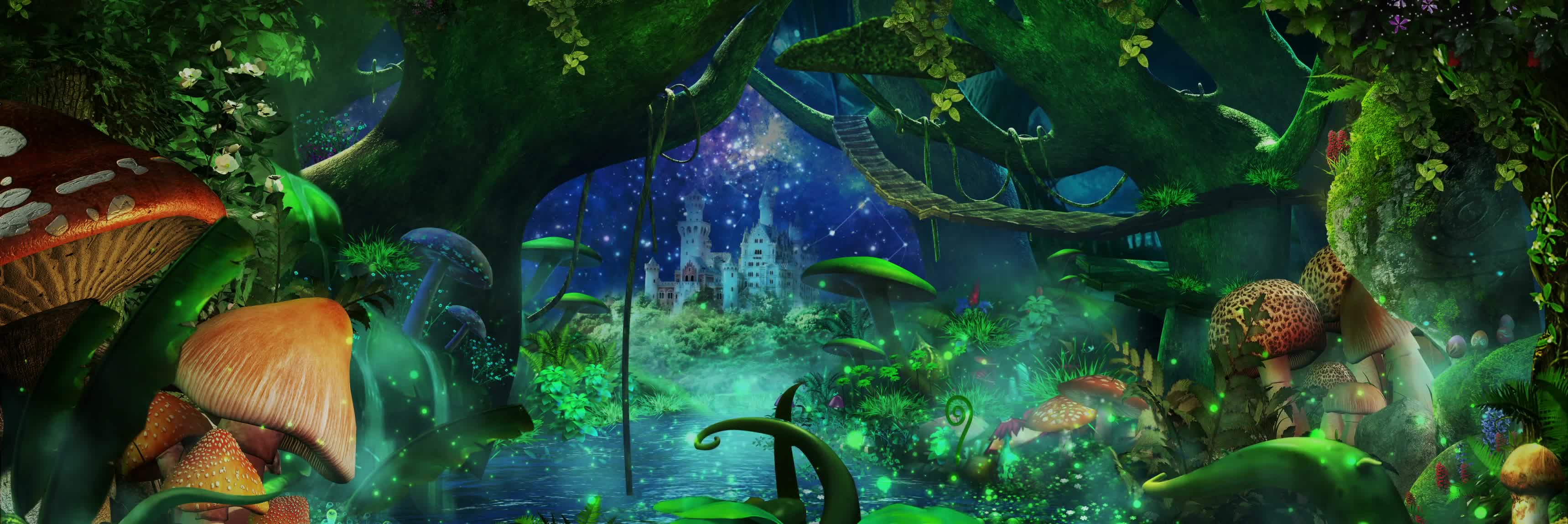 森林 城堡 蘑菇 大树 小溪 星光 绿色 梦幻 景区 风景 宴会厅 全息投影素材