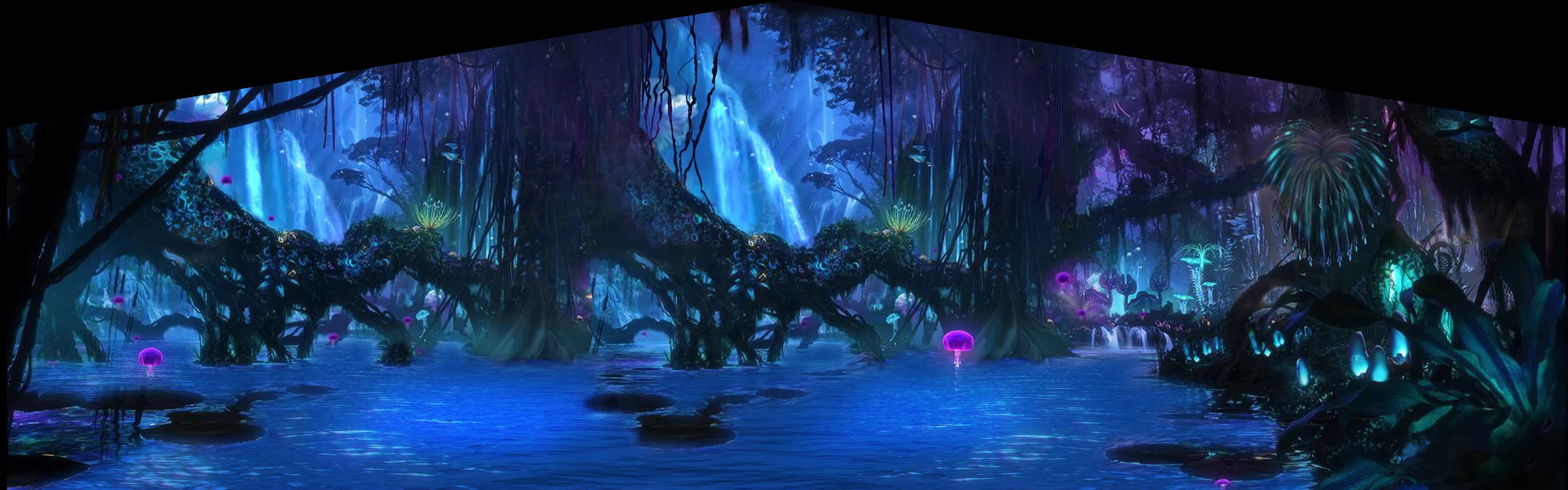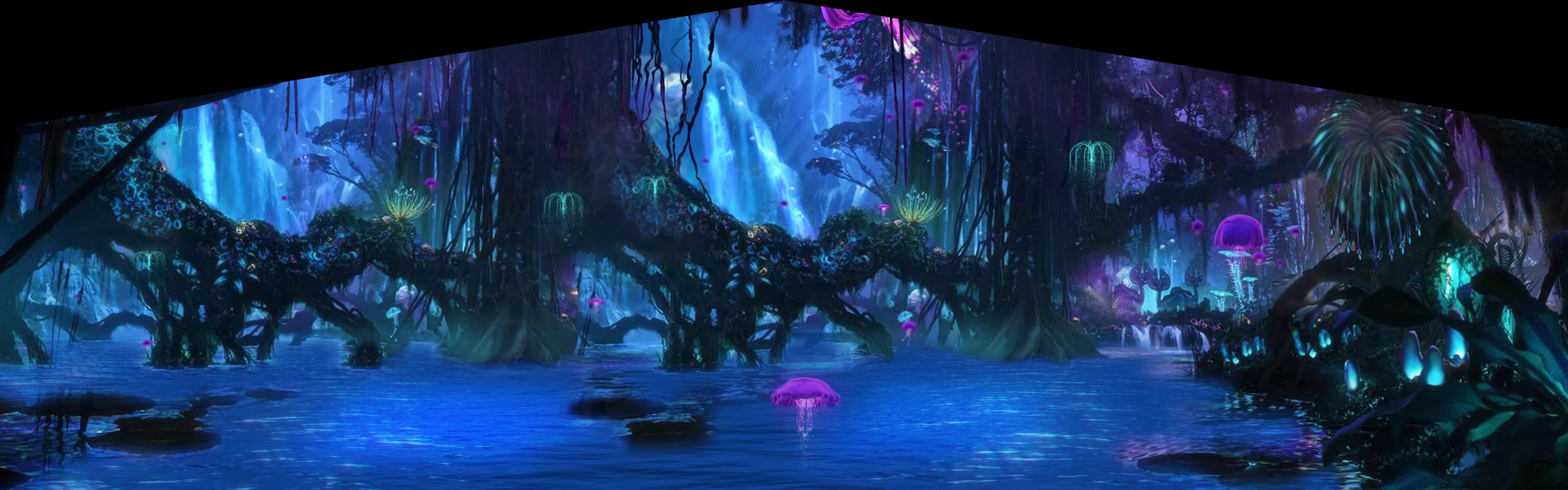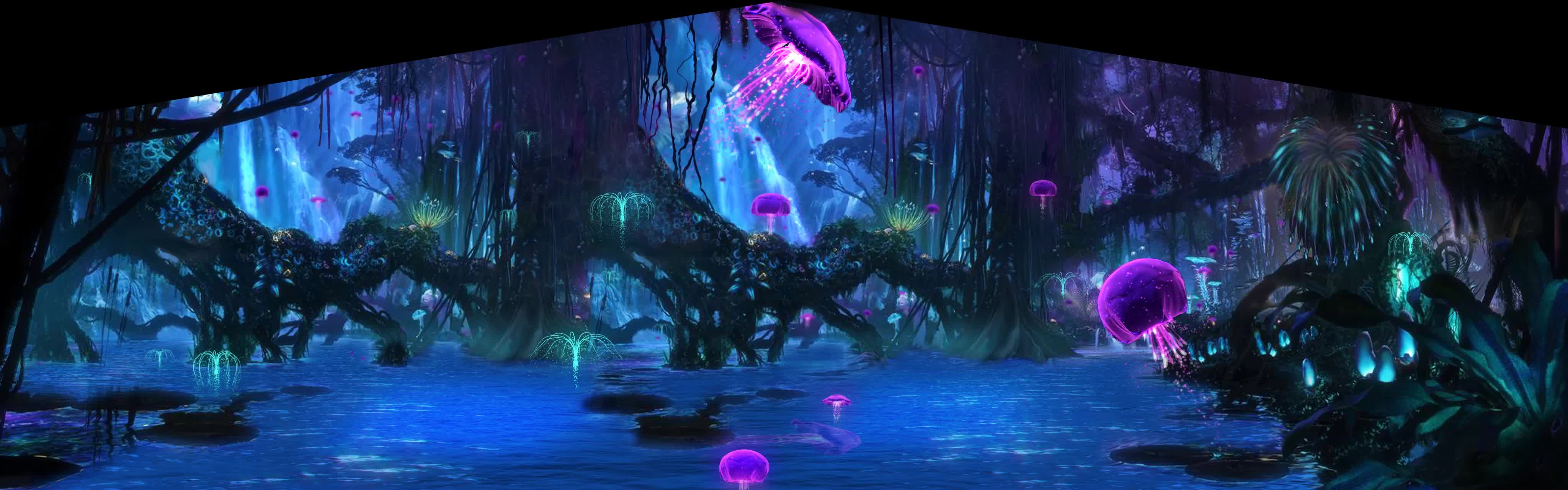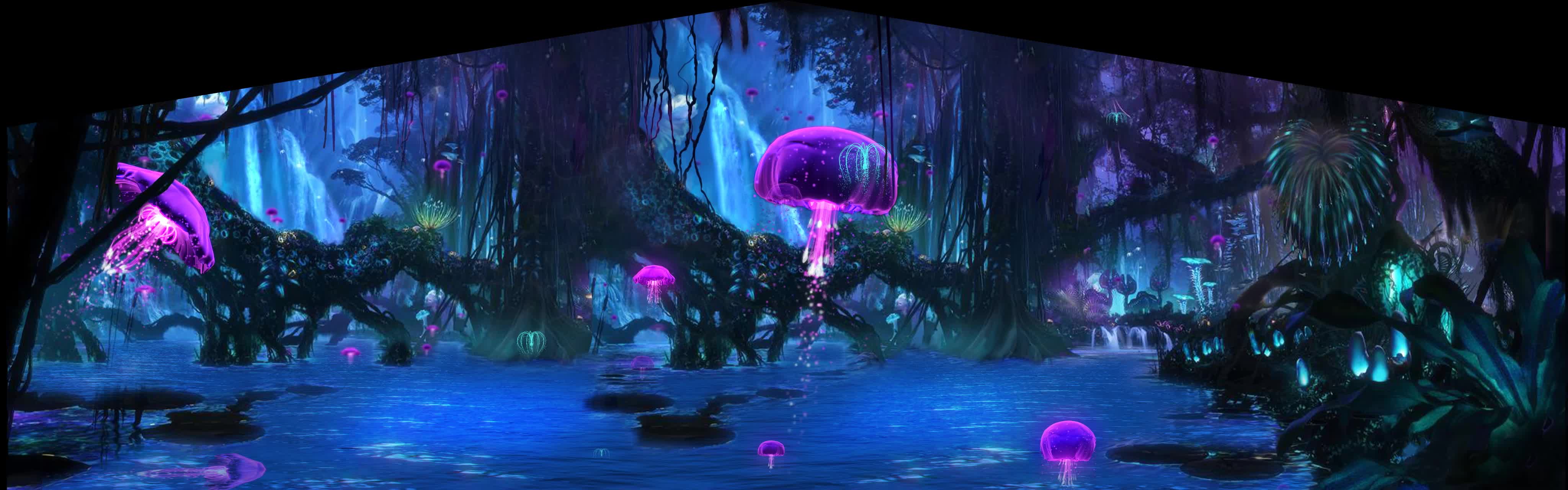 森林 瀑布 大树 小溪 紫色水母 神秘 奇幻 梦幻 景区 风景 宴会厅 全息投影素材