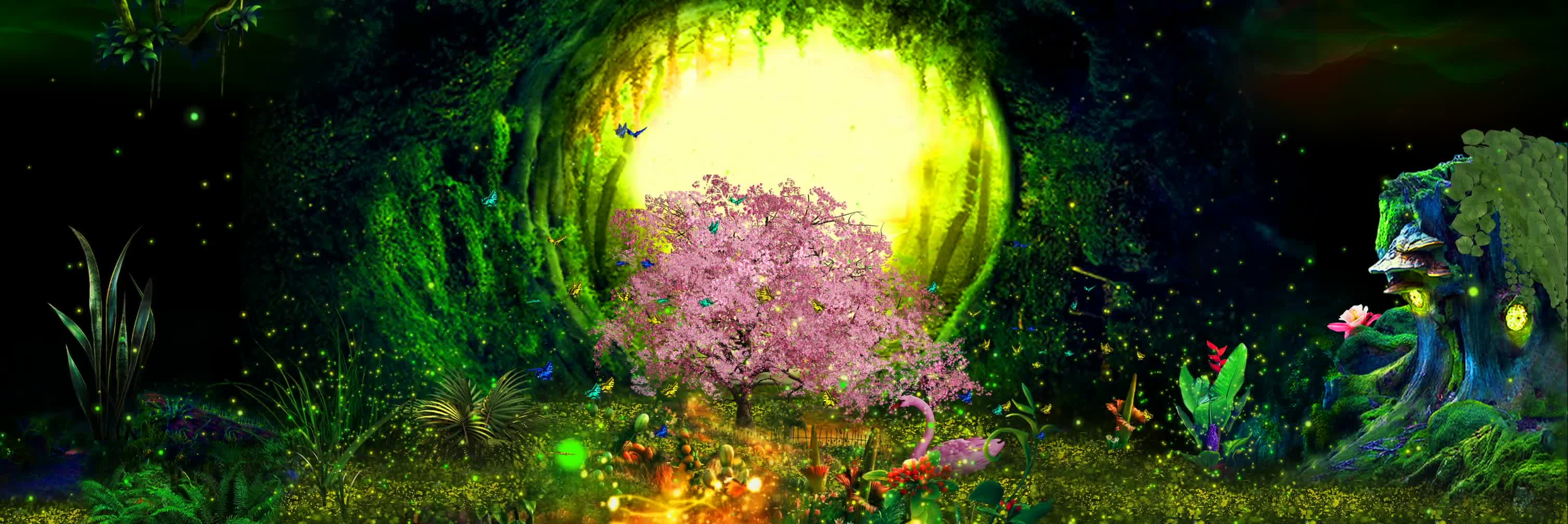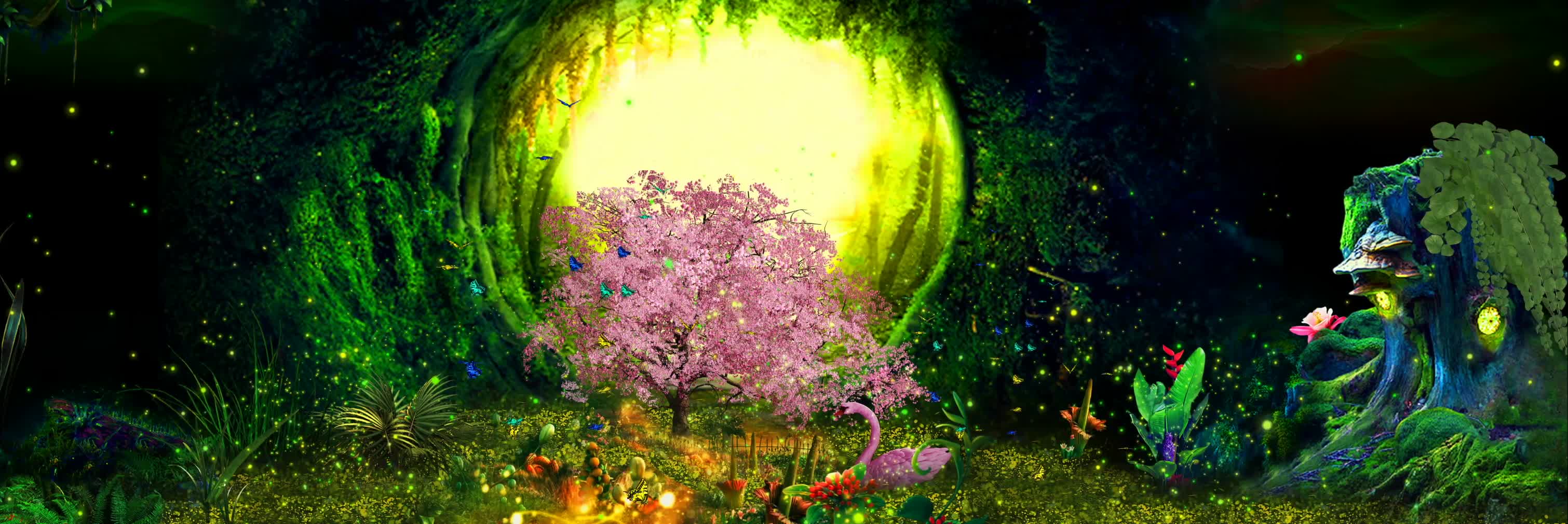 森林 桃花树 仙境 丛林 阳光 花 草 蝴蝶 鹅 小动物 绿色 粉色 神秘 梦幻 景区 风景 宴会厅 全息投影素材