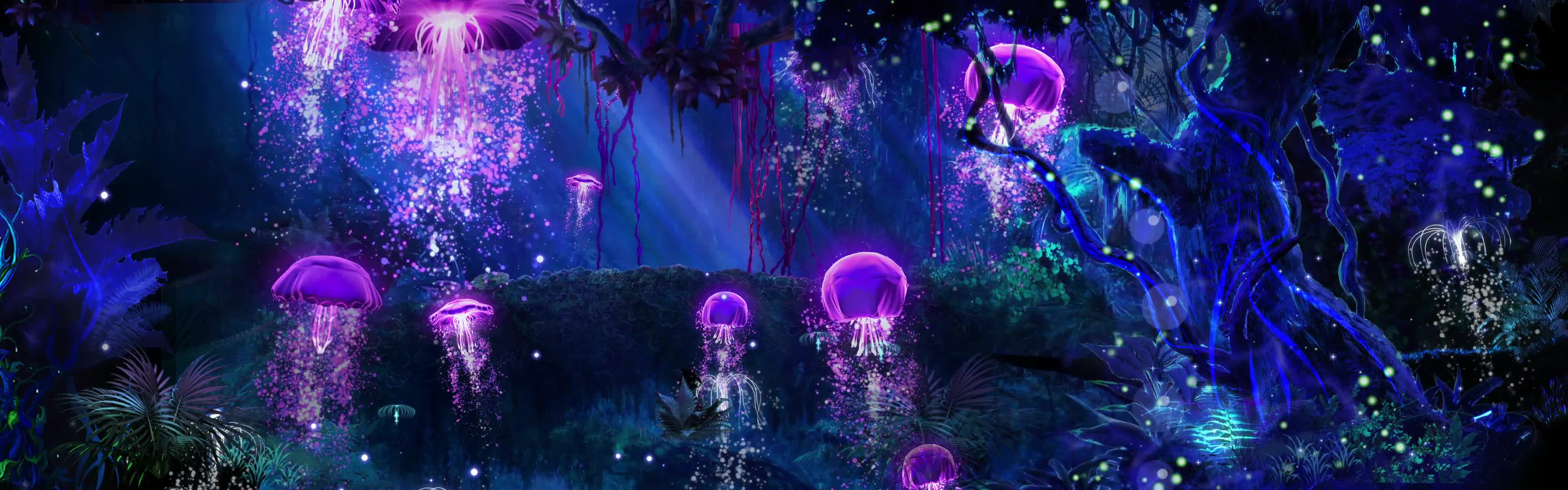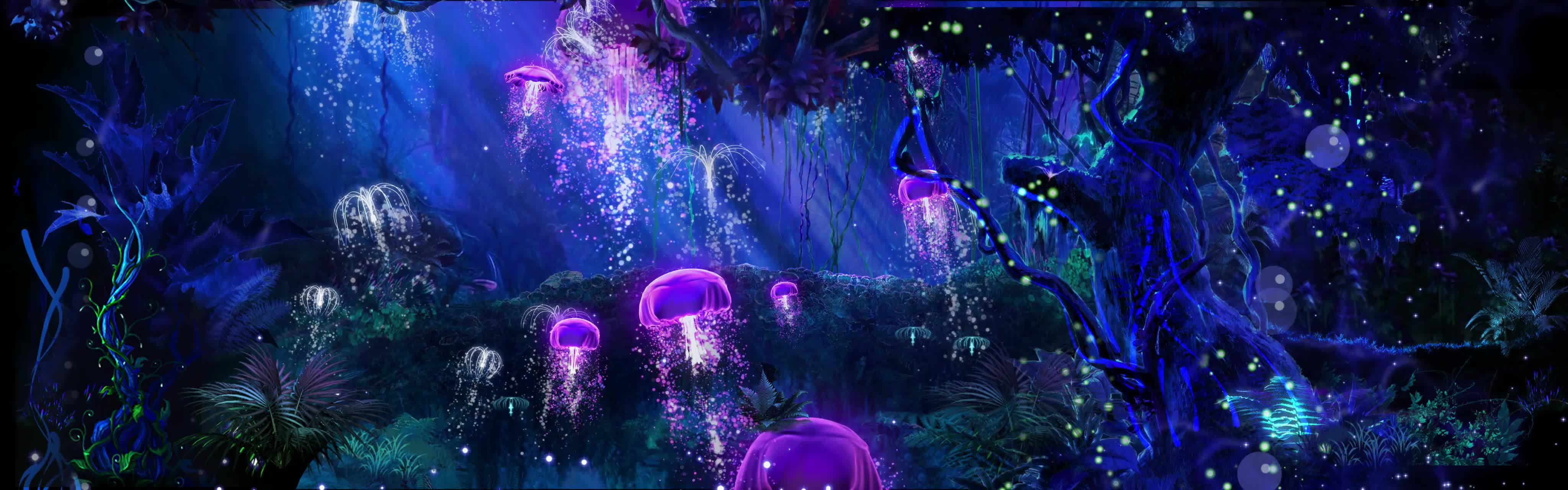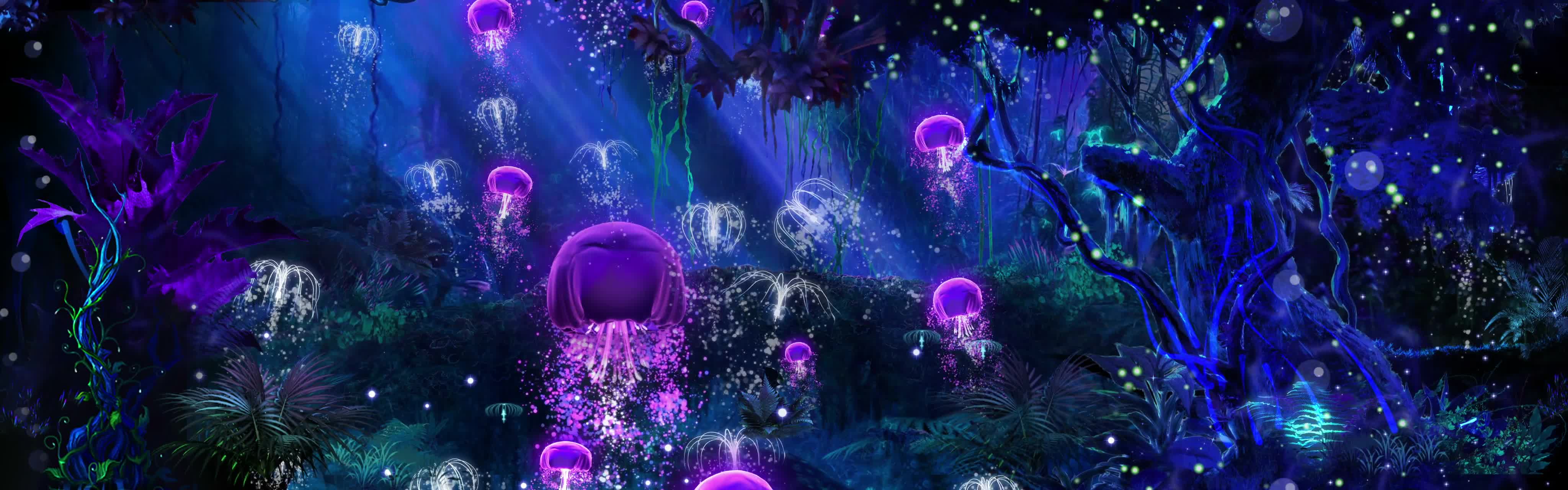 森林 树 水母 丛林 阳光 海底世界 紫色 神秘 梦幻 景区 风景 宴会厅 全息投影素材