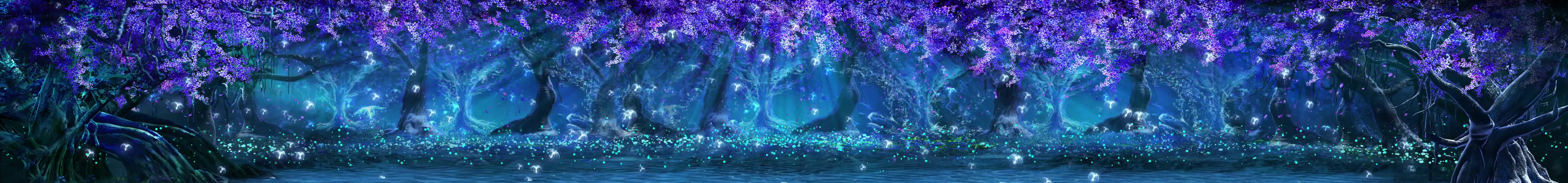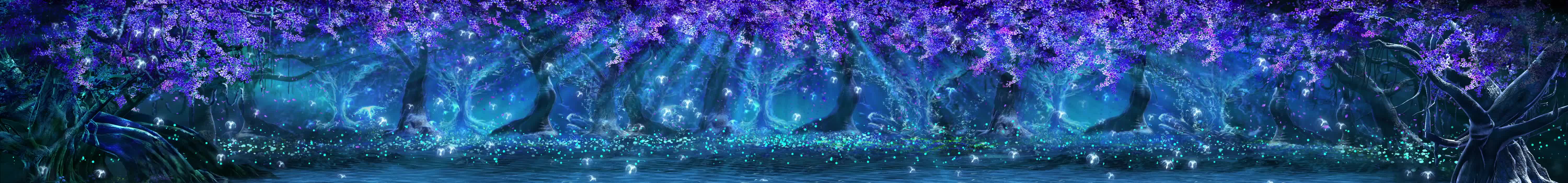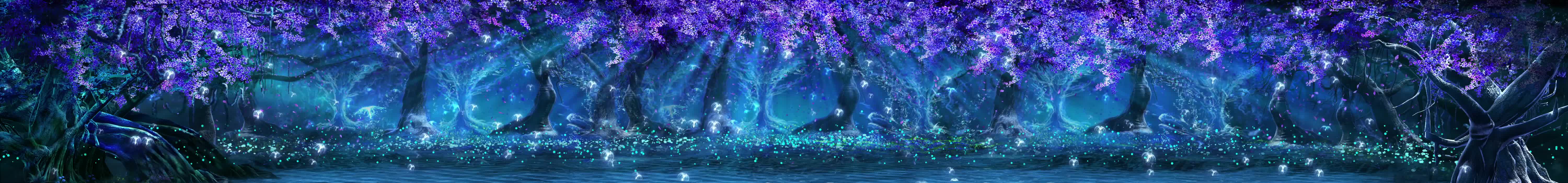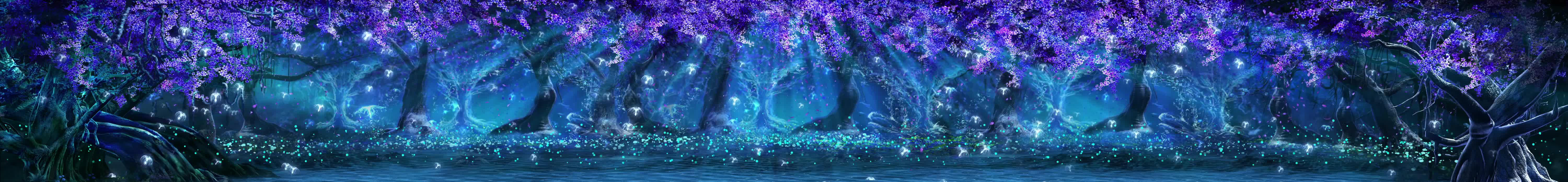 森林 树木 紫藤花 藤蔓 花瓣 水母 小动物 小溪 河流 荧光 蓝色 紫色 神秘 梦幻 景区 风景 宴会厅 全息投影素材