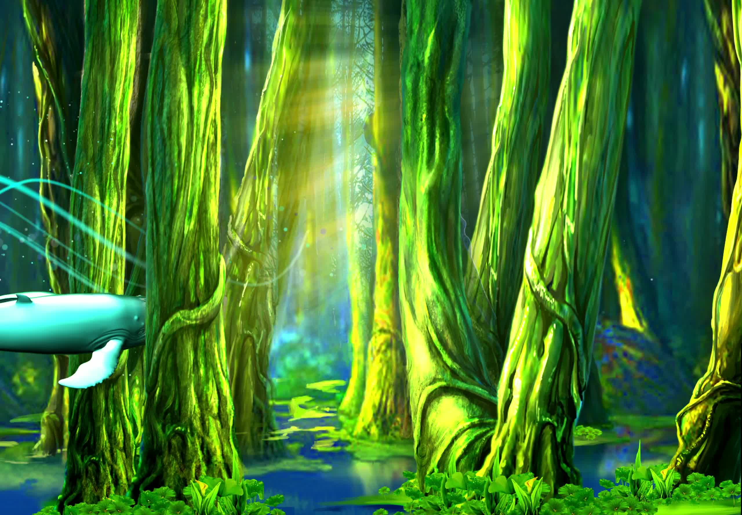 森林 大树 鲸鱼 动物 奇幻 景区 风景 宴会厅 全息投影素材