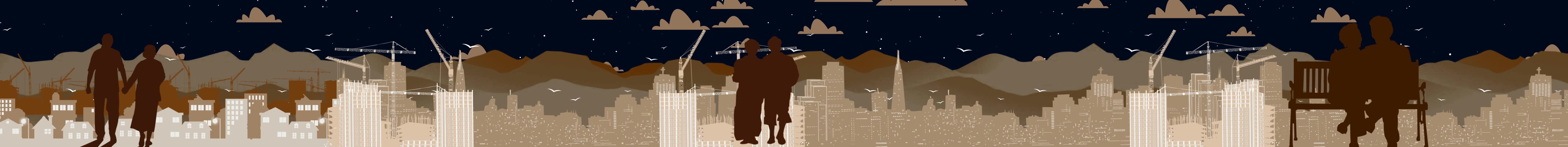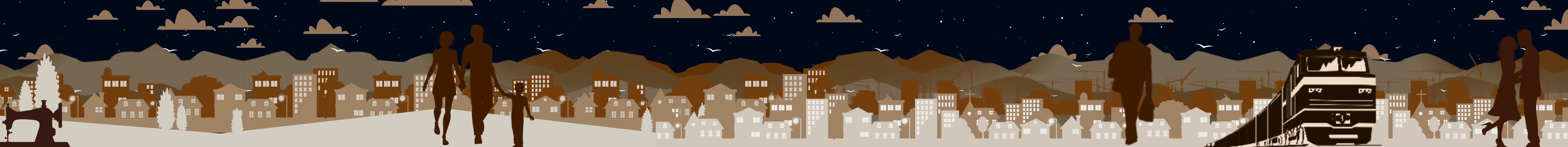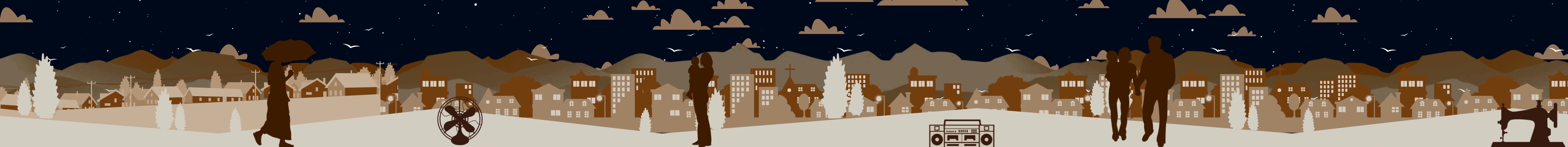 城市 人物 树木 单车 自行车 夜晚 星星 打伞 风扇 收音机 缝纫机 建筑 剪影 云朵 全息投影素材视频