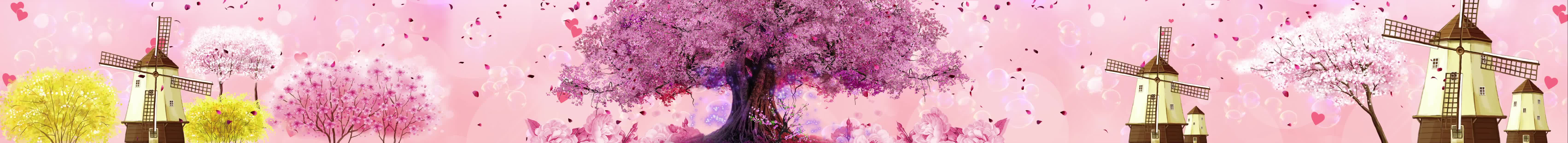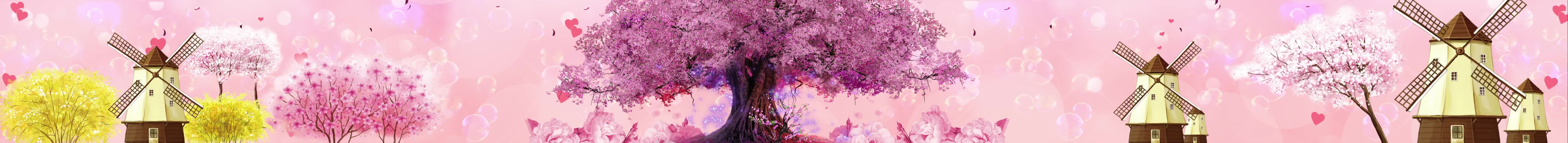 粉色 桃花 鲜花 大树 深林 梦幻 宴会厅 大风车 黄色 泡泡 全息投影素材