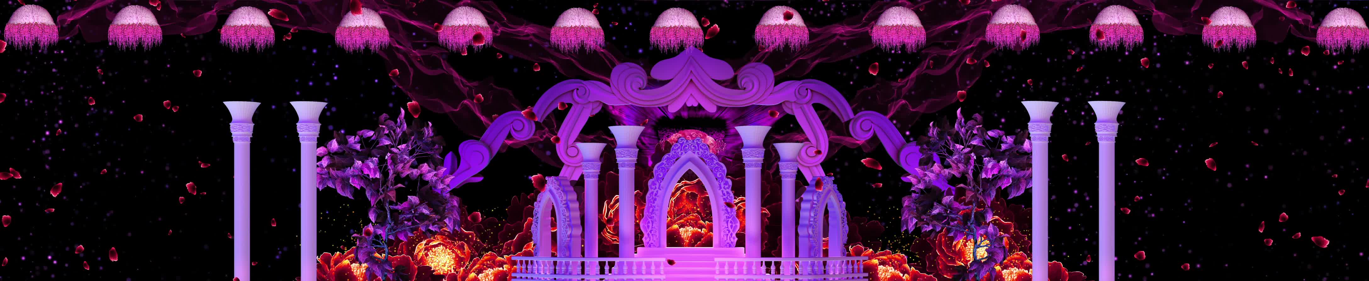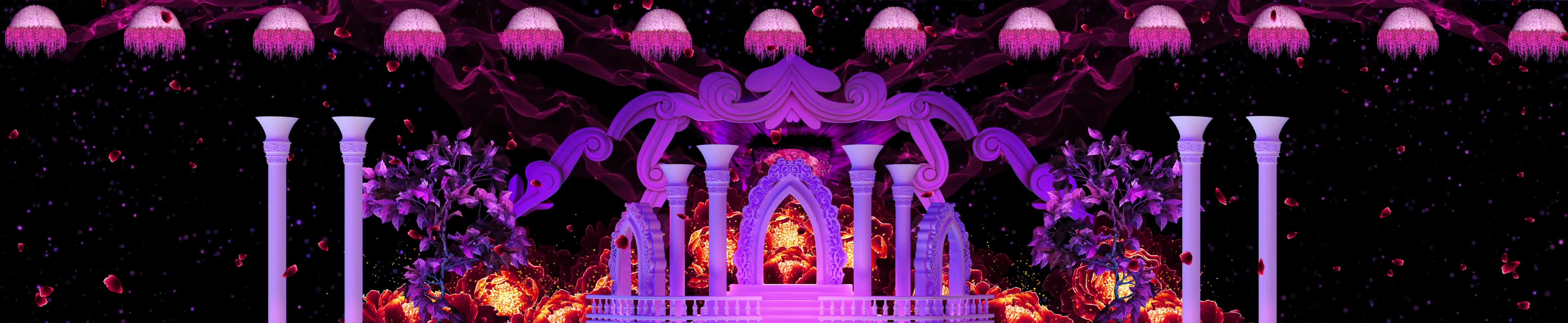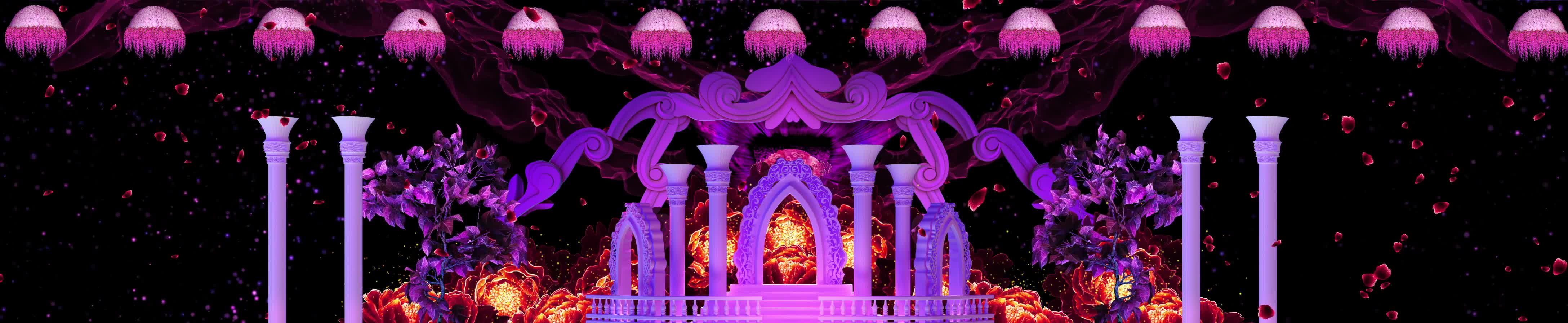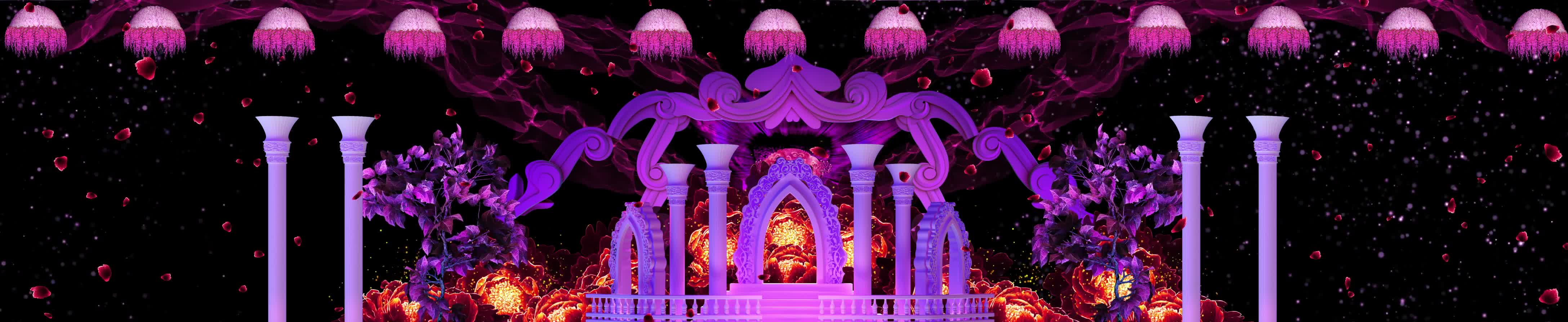 欧式 鲜花 花瓣 花海 拱门 粉色柱子 红色花瓣 欧式风格 梦幻 浪漫 婚礼 欧式婚礼 宴会厅 风景 全息投影素材