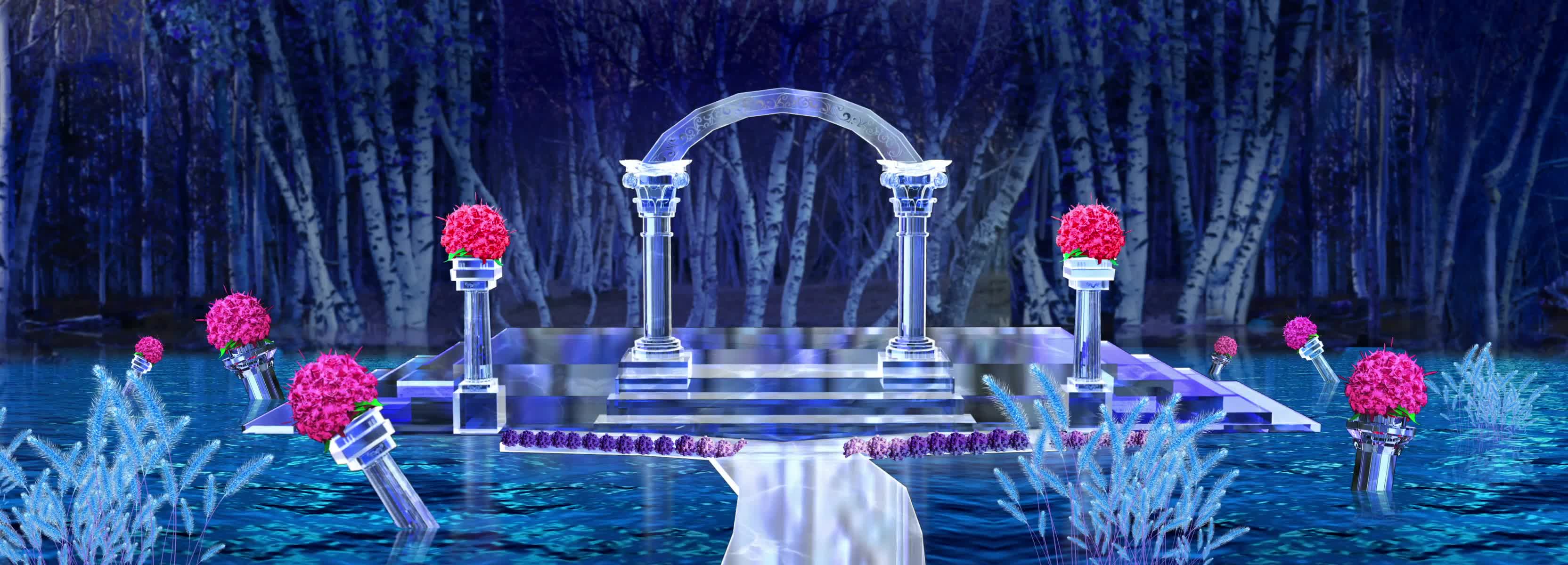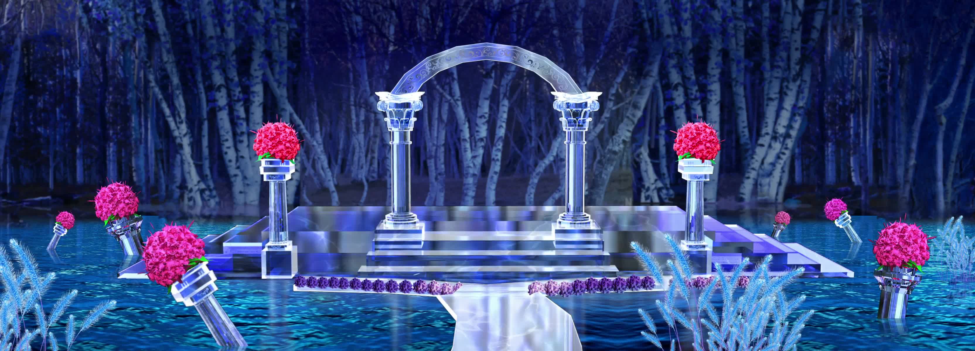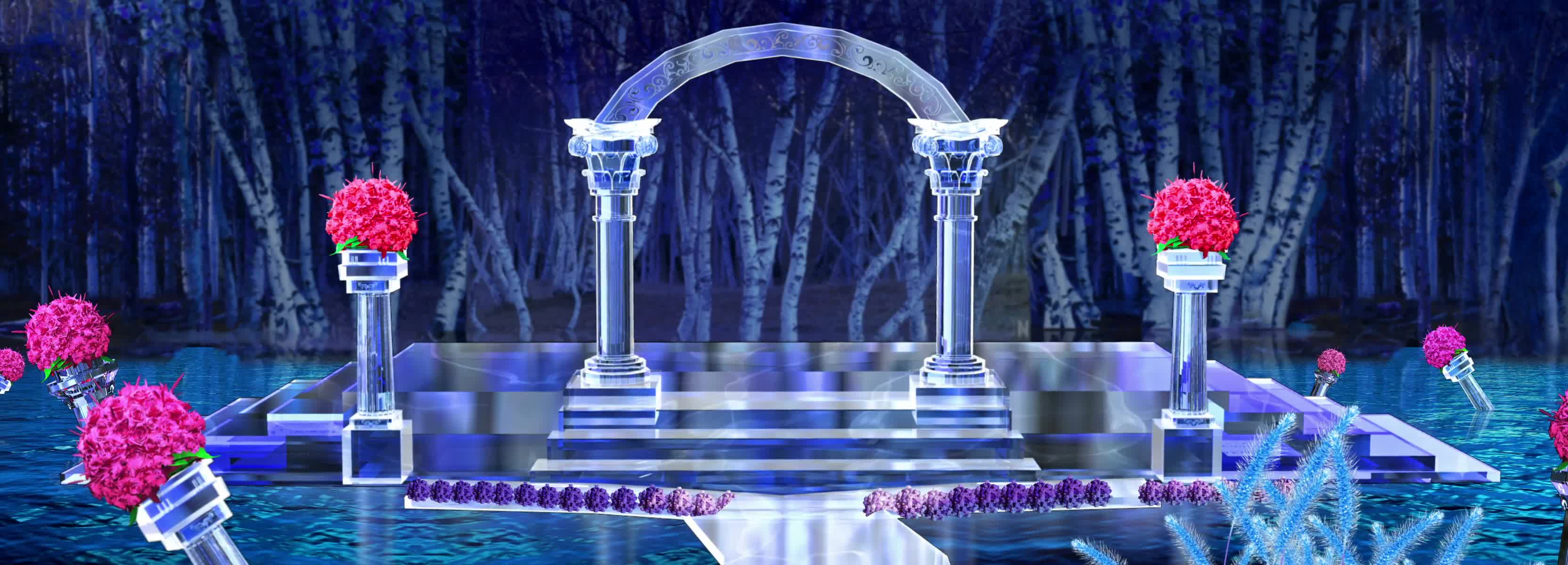 欧式 建筑 拱门 柱子 海面 狗尾巴草 鲜花 树林 树木 梦幻 秘境 风景 宴会厅 婚庆 全息投影素材