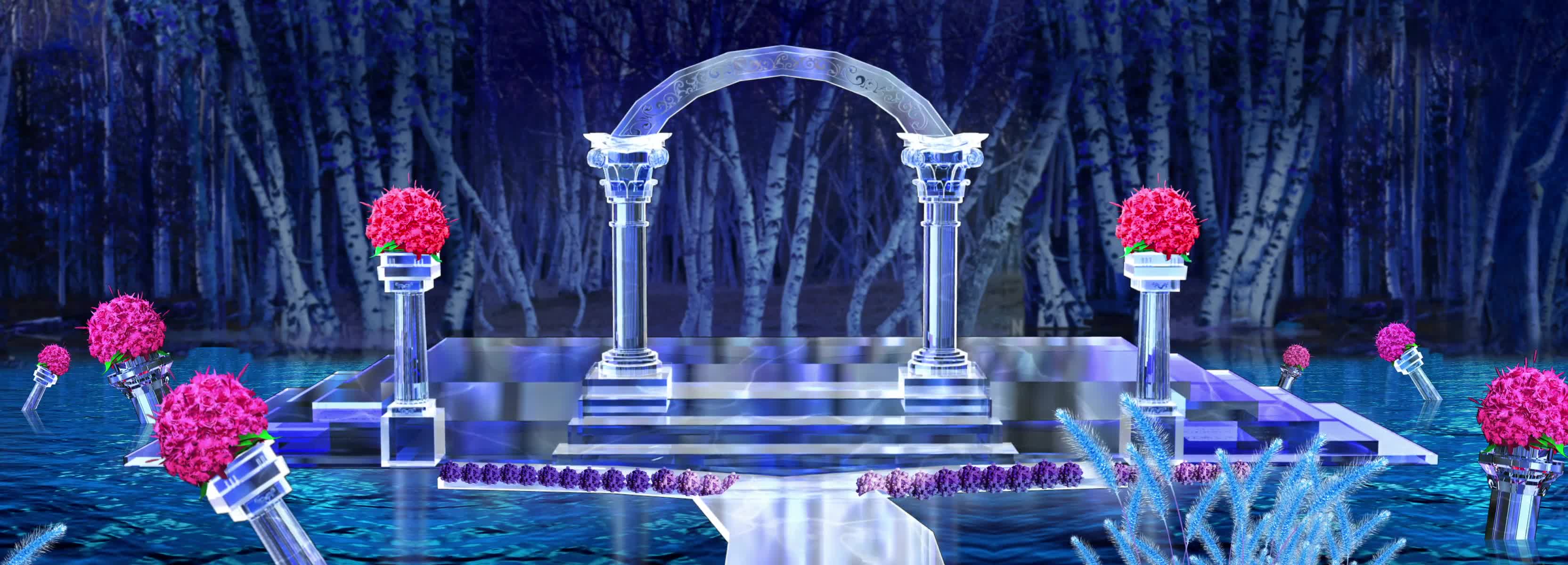 欧式 建筑 拱门 柱子 海面 狗尾巴草 鲜花 树林 树木 梦幻 秘境 风景 宴会厅 婚庆 全息投影素材