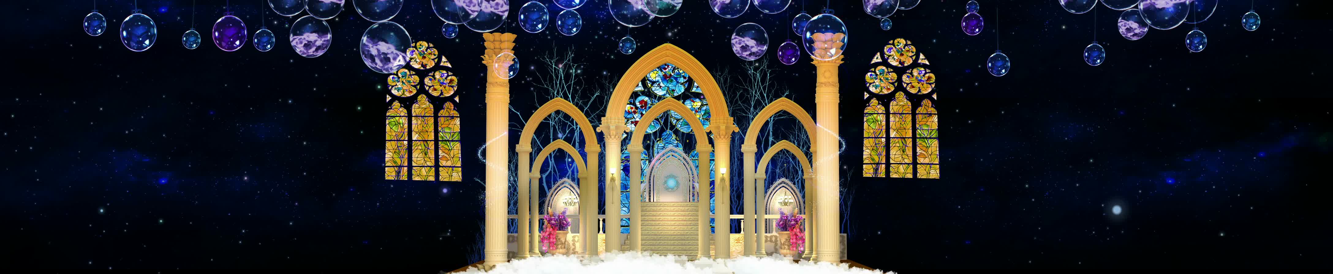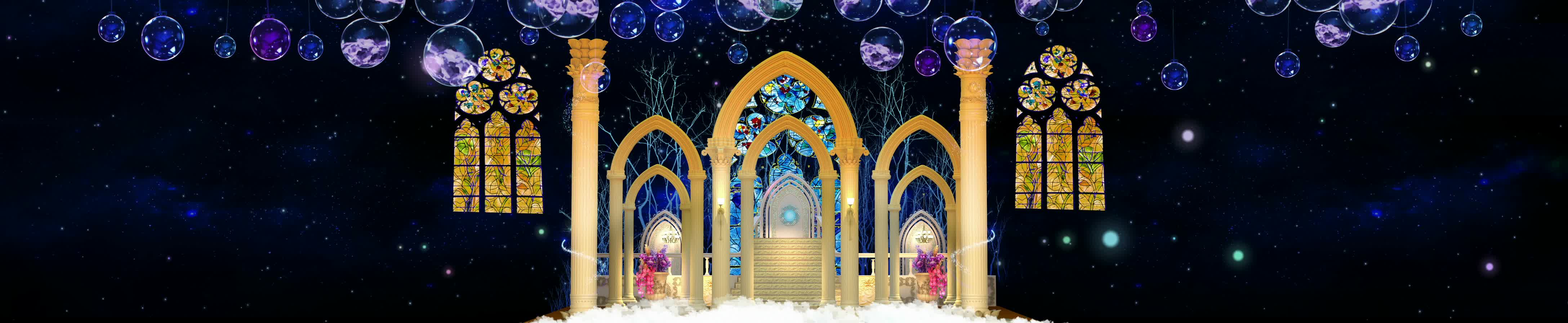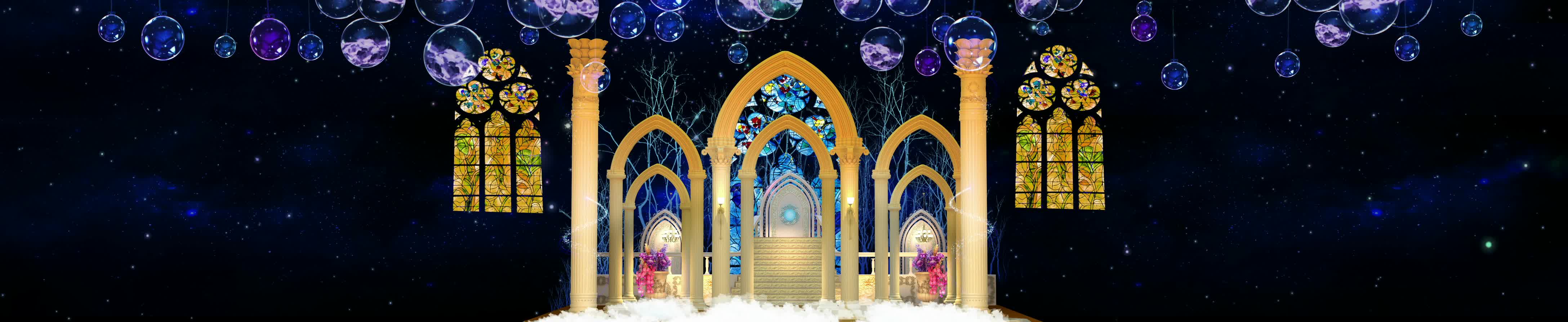 欧式 罗马柱 花瓣 飘落 柱子 立柱 罗马柱 雕花 教堂 彩色玻璃 泡泡 城堡 光点 光茫 唯美 童话 浪漫 梦幻 宴会厅 全息宴会厅 全息婚礼