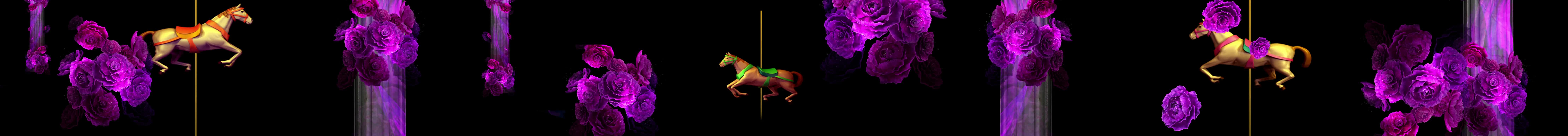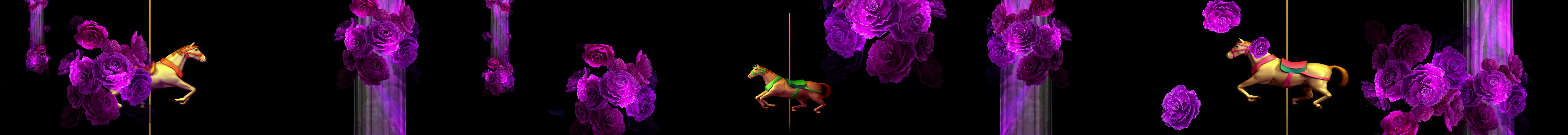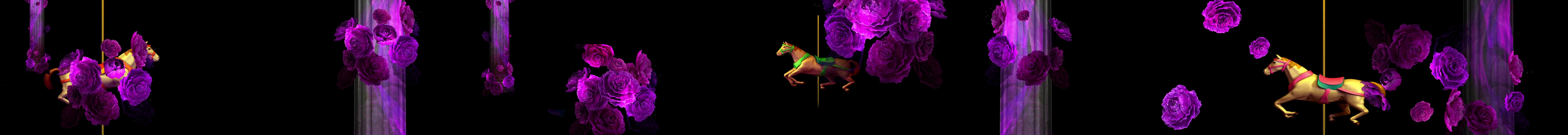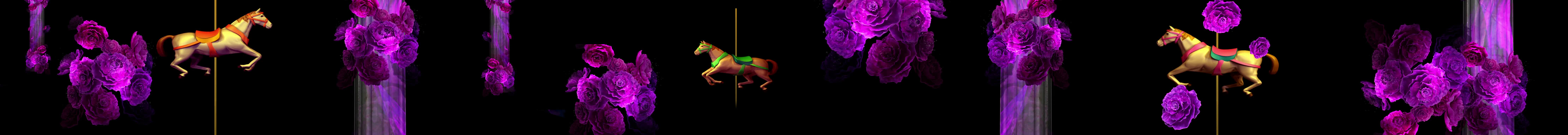 全息 鲜花 玫瑰花 紫色花 花朵 旋转木马 暖场纱幕 金色 紫色 暖场 宴会厅 童真 梦幻 浪漫 婚礼 裸眼 3D 全息投影素材