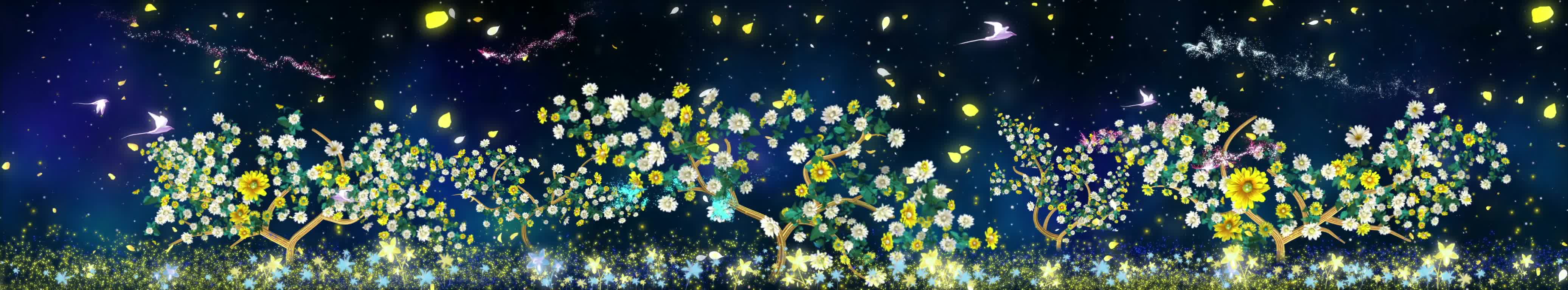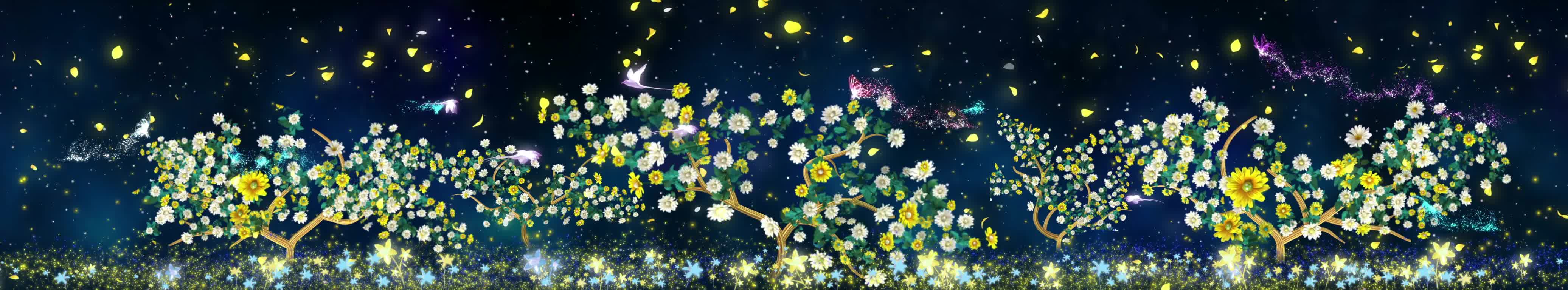 餐厅,荧光树墙体,荧光树墙面,全息餐厅,餐厅墙面动画,墙面投影,荧光树,鲜花,水仙花,梦幻餐厅,餐厅投影,3D餐厅,裸眼3D投影,宴会厅,全息餐厅投影素材