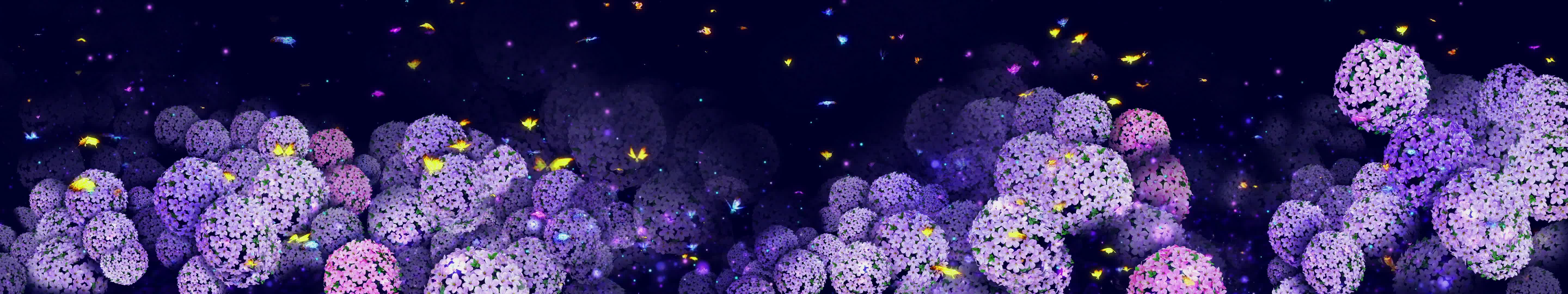 餐厅,花系墙体,全息餐厅,餐厅墙面动画,墙面投影,餐厅全息,紫色花簇,蝴蝶,鸟,花瓣,梦幻餐厅,炫酷餐厅投影,3D餐厅,裸眼3D投影,宴会厅,全息餐厅投影素材