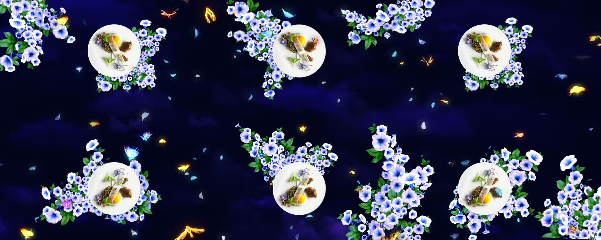 餐厅 餐桌 花系餐桌 全息餐厅 桌面动画 餐盘 餐盘投影 餐厅全息 鲜花 喇叭花 花朵 蝴蝶 3D餐厅 裸眼3D投影 宴会厅 全息宴会厅 全息餐厅投影素材