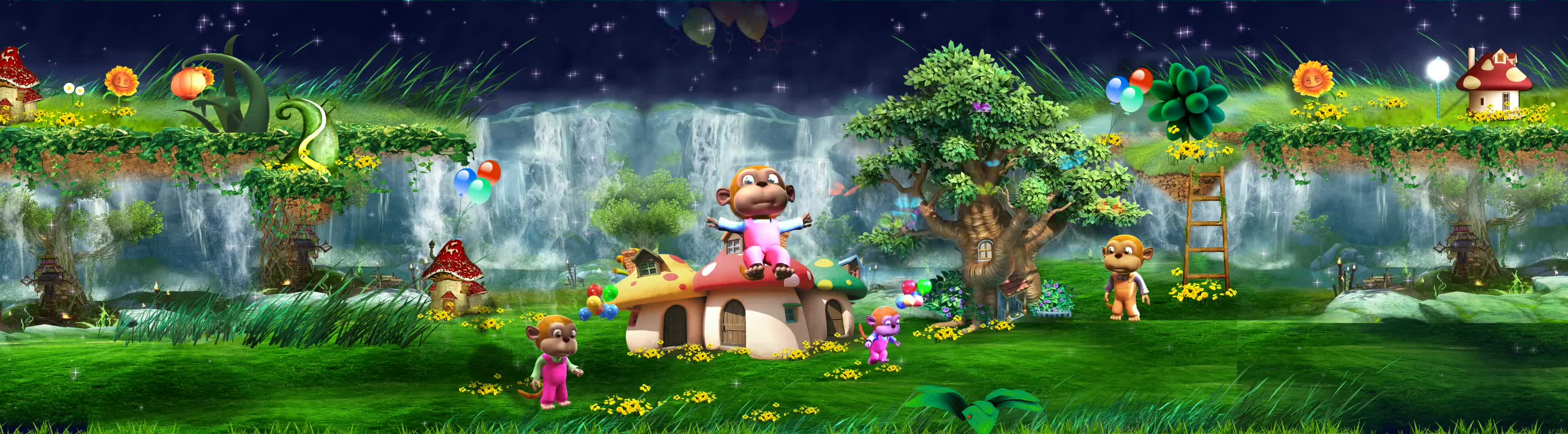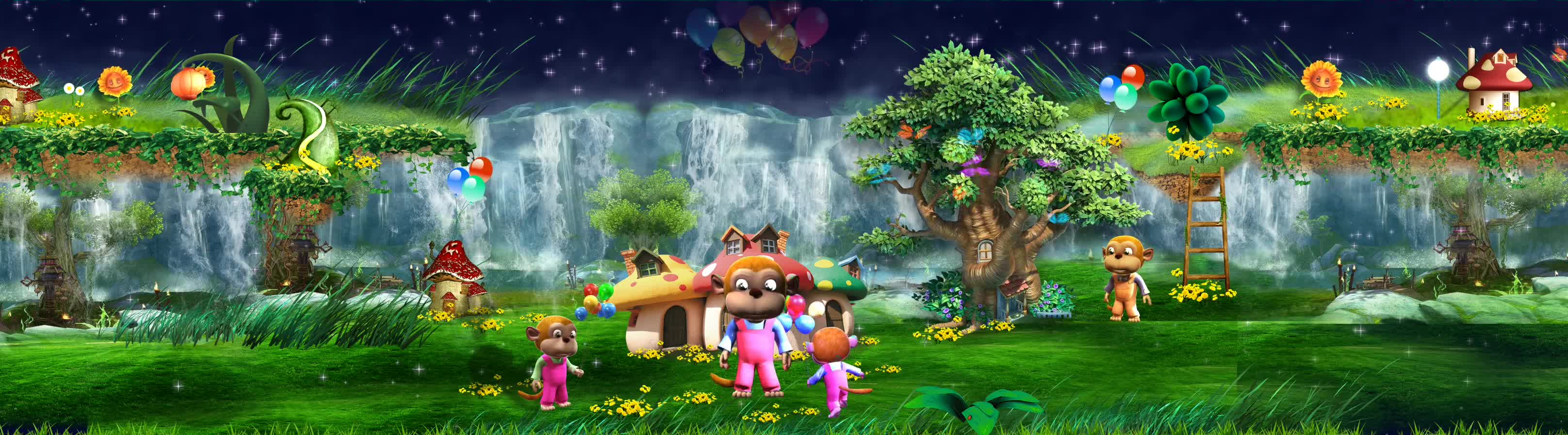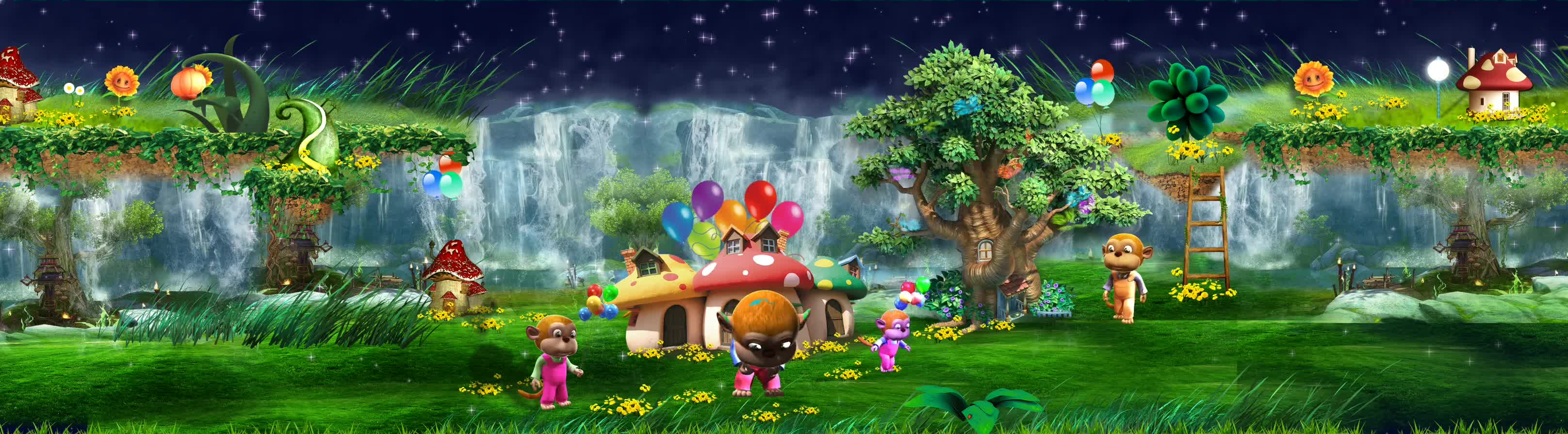 童真 童趣 童话世界 梦幻乐园 猴子 蝴蝶 草原 蘑菇屋 瀑布 大树 气彩色气球 森林 宴会厅 风景 景区 全息投影素材