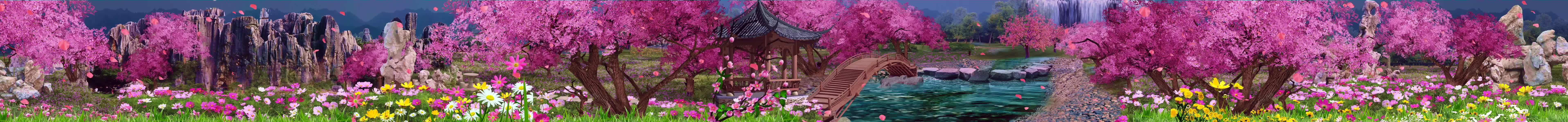 鲜花 花瓣 花瓣飘落 小溪 绿植 桃花 桃花树 桃花源 粉色森林 粉色桃花 粉色 鲜艳 宴会厅 景区 风景 舞美 暖场 梦幻 浪漫 婚礼 鲜花全息 全息投影素材