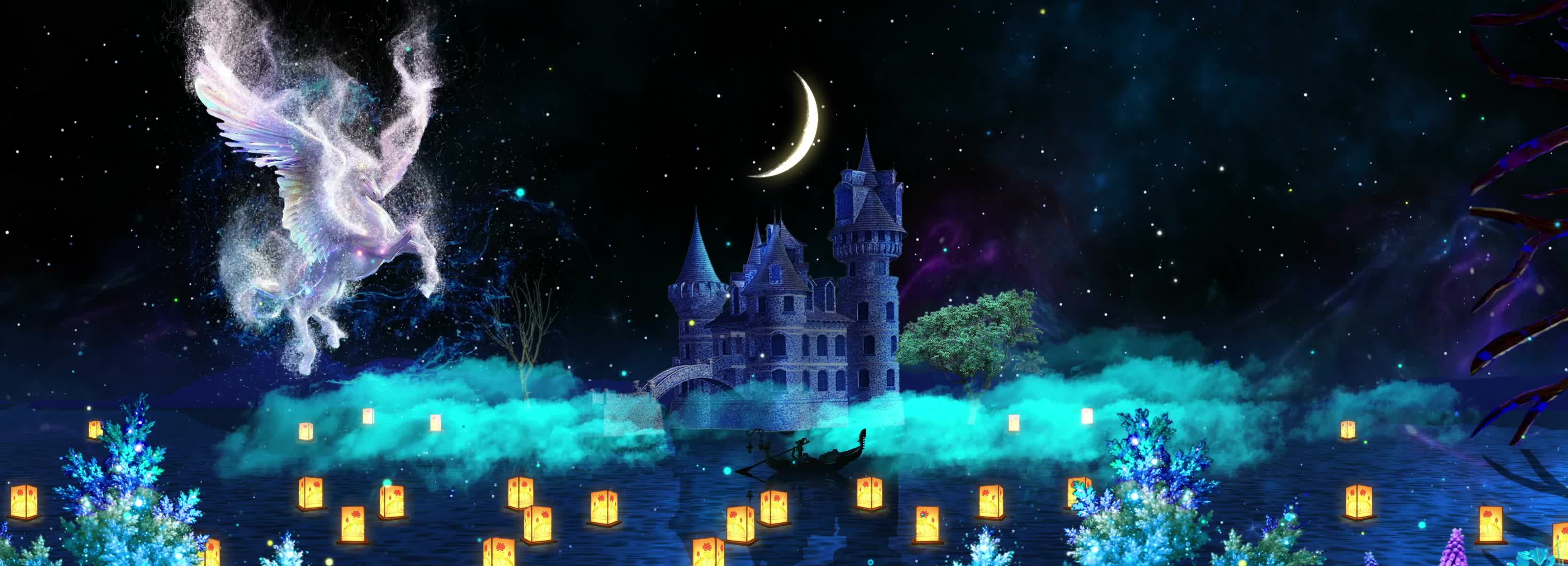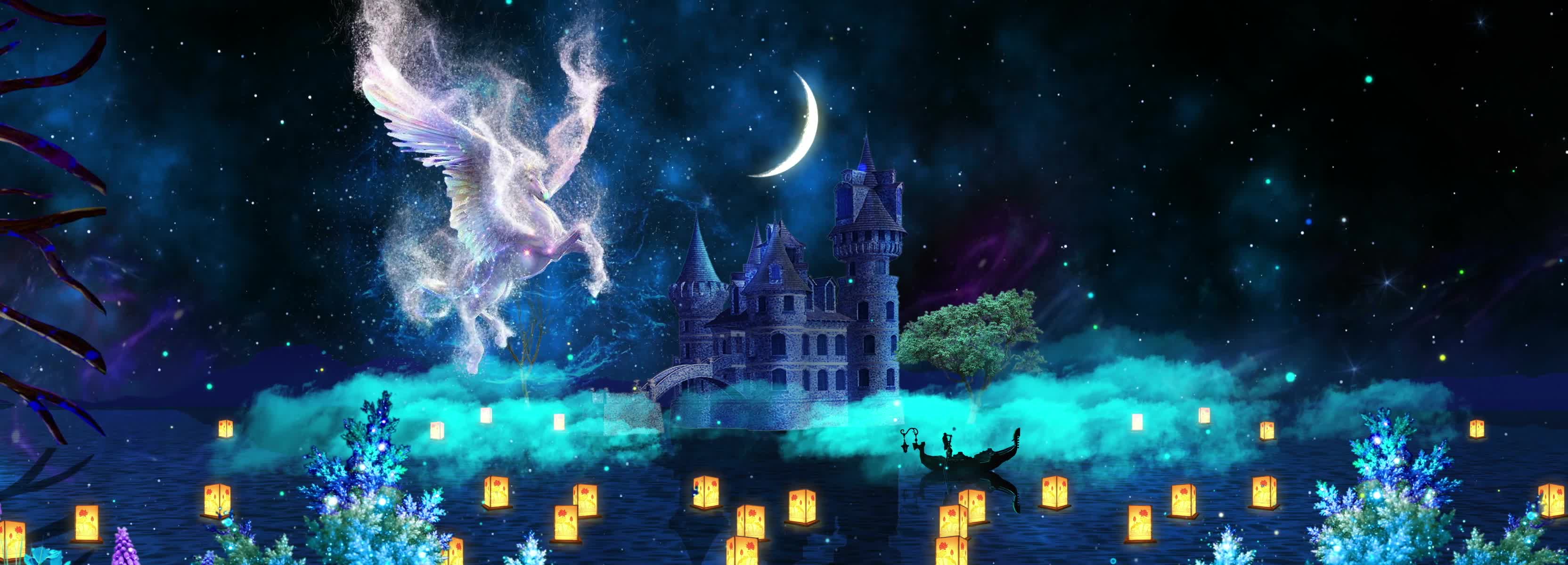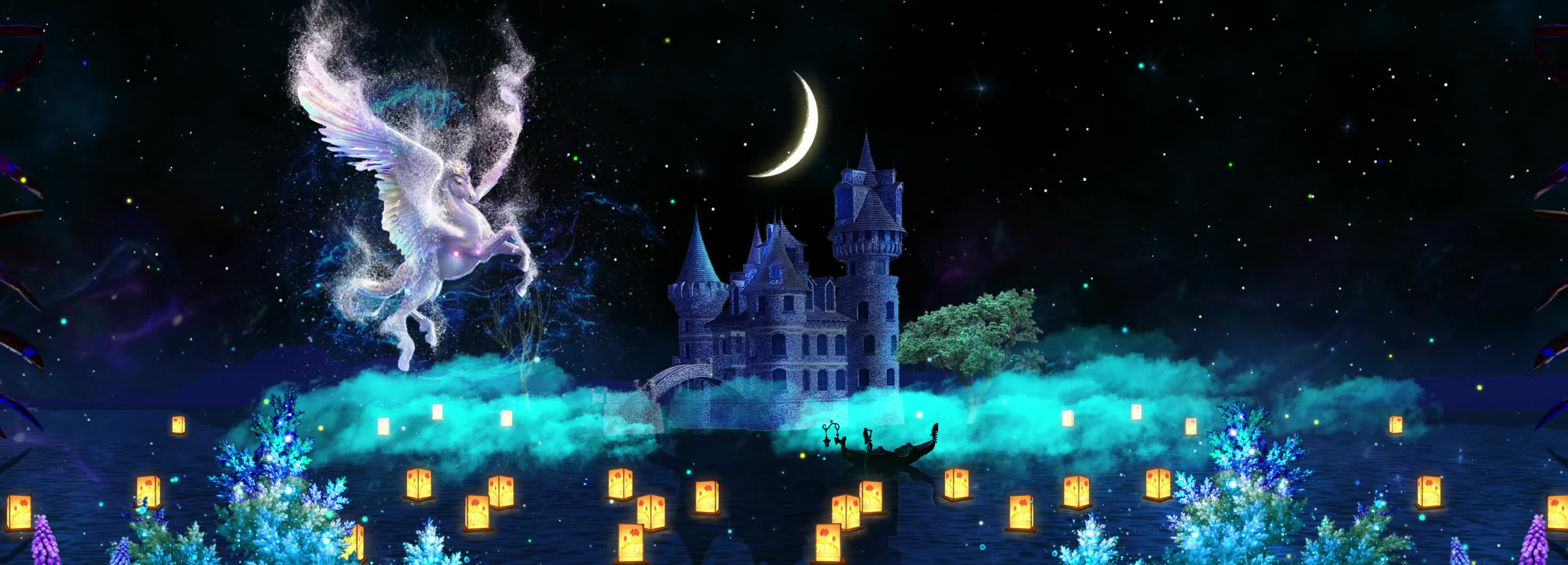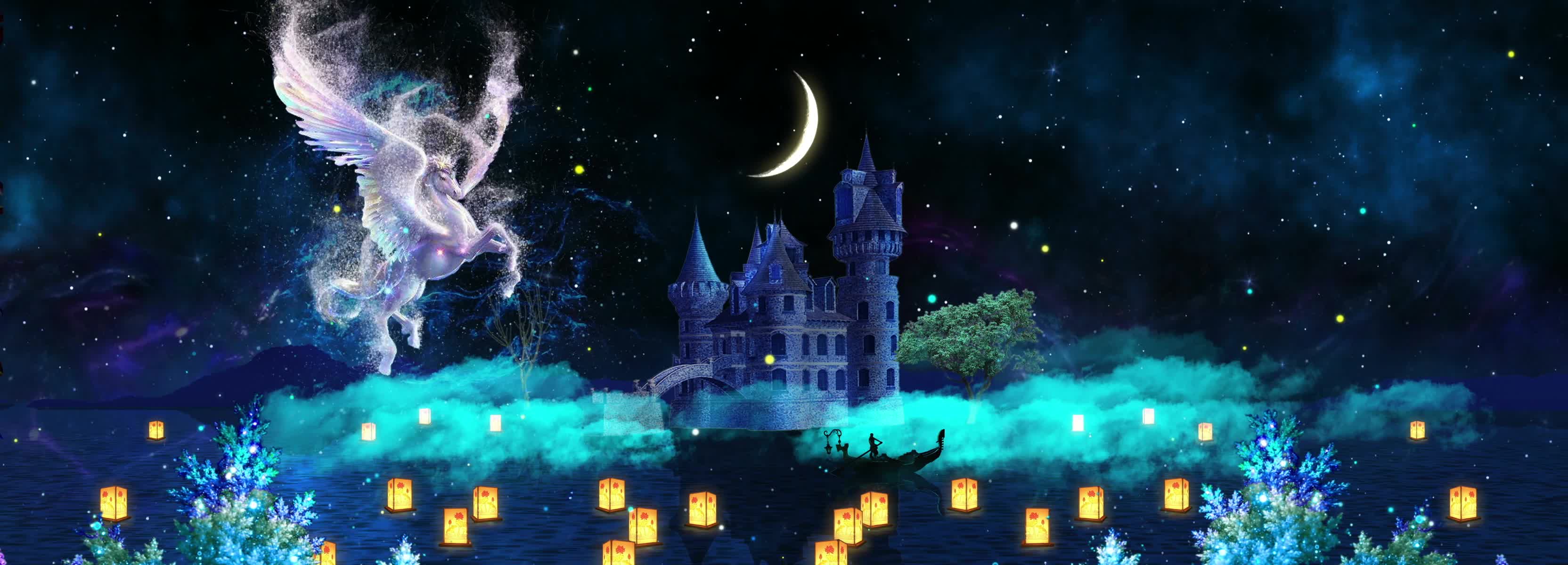 星云 星空 星星 城堡 白马 神马 月亮 星空城堡 星空粒子 暖场 宴会厅 舞美 梦幻 浪漫 浪漫婚礼 梦幻婚礼 梦幻星空 全息投影素材