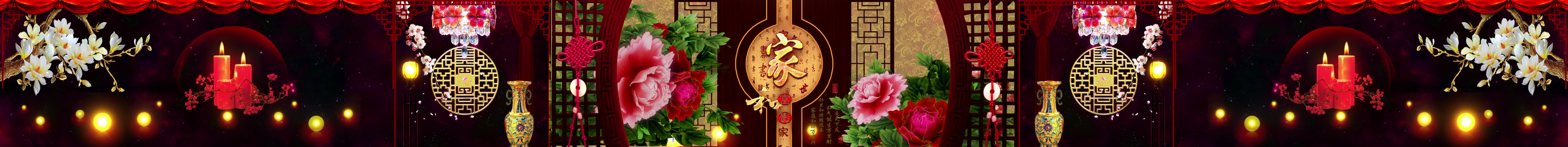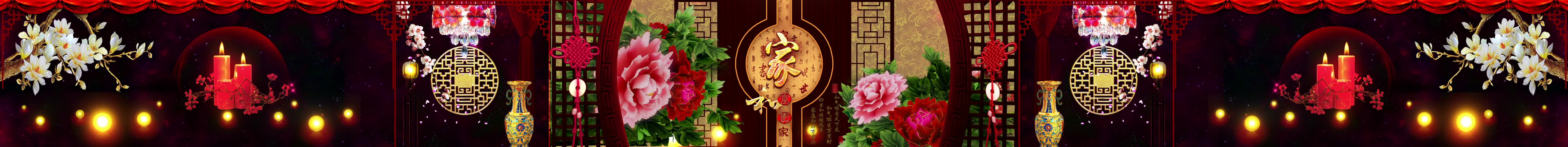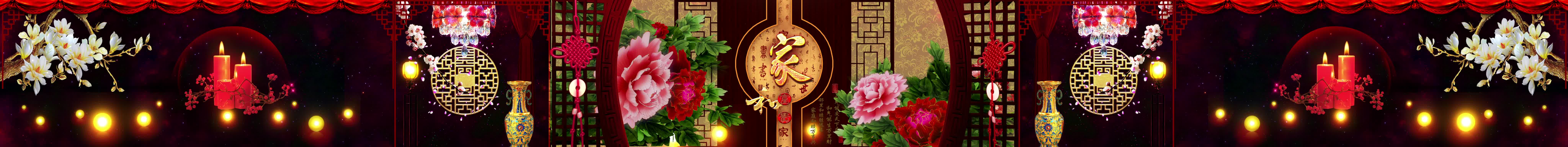 家 中式宴会厅 红色鲜花 喜庆 牡丹花 中国结 蜡烛 花瓣飘落 家 汉字 复古中国风 全息素材 全息投影素材视频