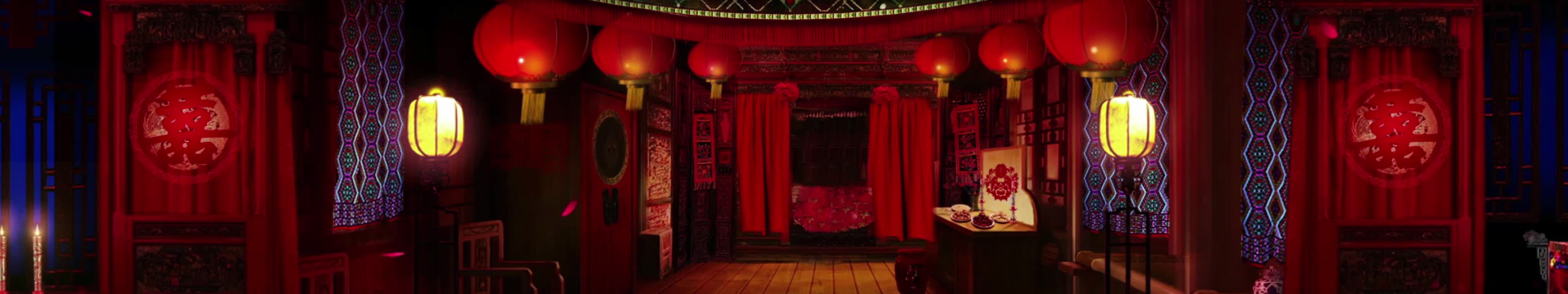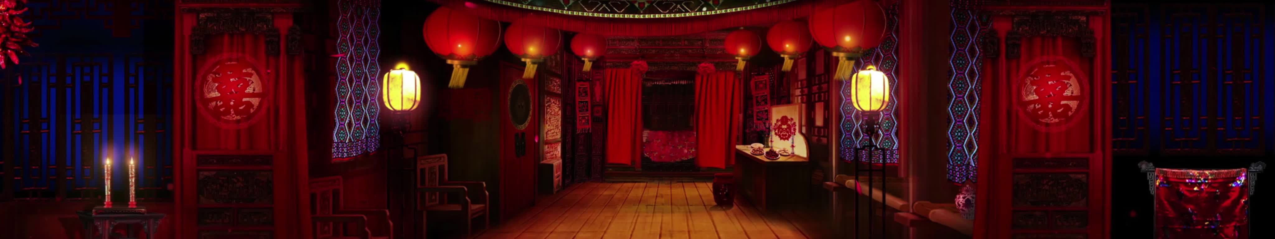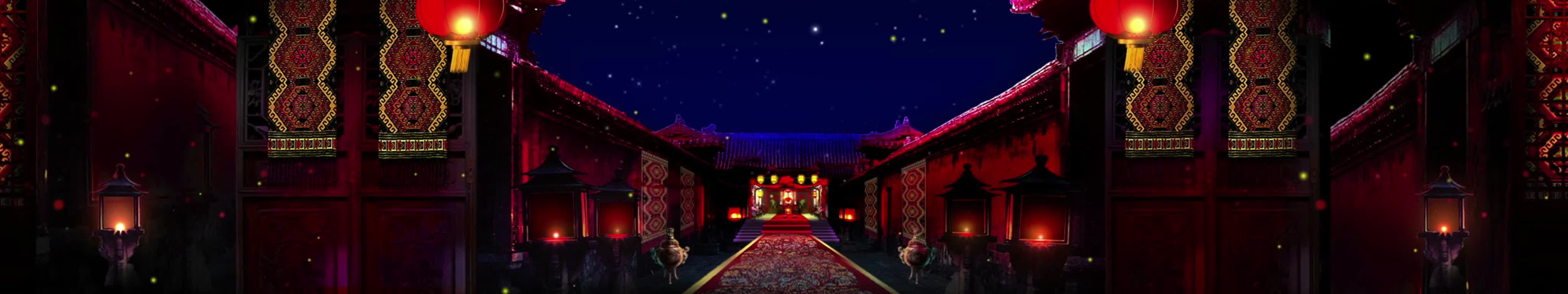 汉唐 金色 黄色 蓝色天空 屋檐 灯笼 星空 夜景 宴会厅 中式 复古 中国风 婚礼暖场 全息素材 全息投影素材
