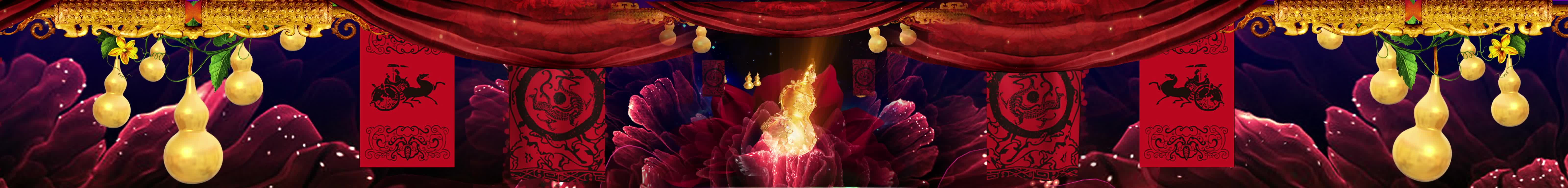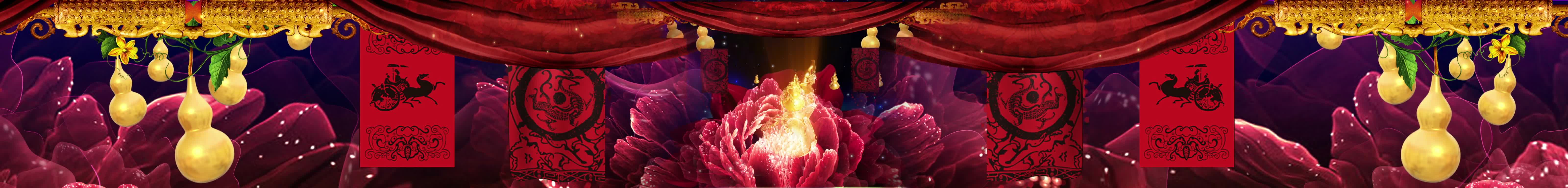 葫芦花瓣 中式宴会厅 浪漫婚礼 喜庆 复古中国风 红色鲜花开 马车 帘子 全息素材 全息投影素材视频