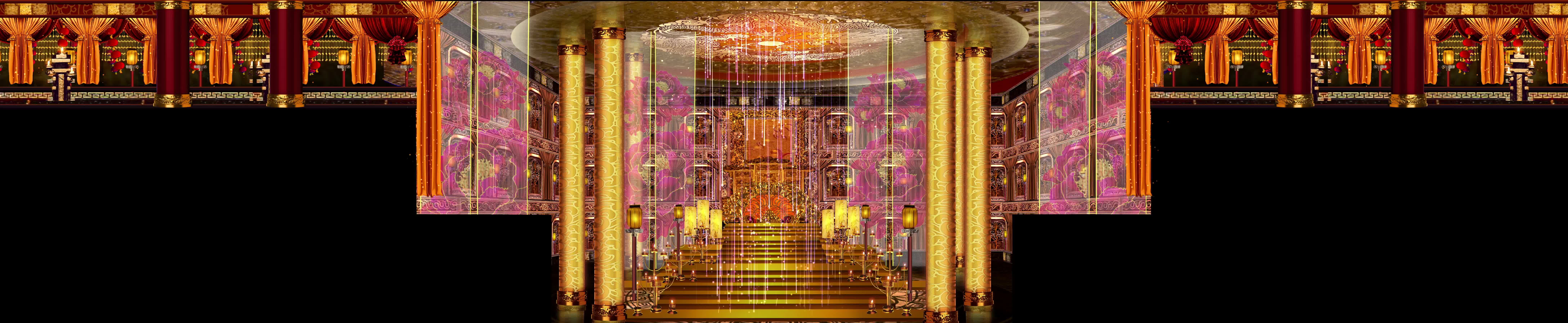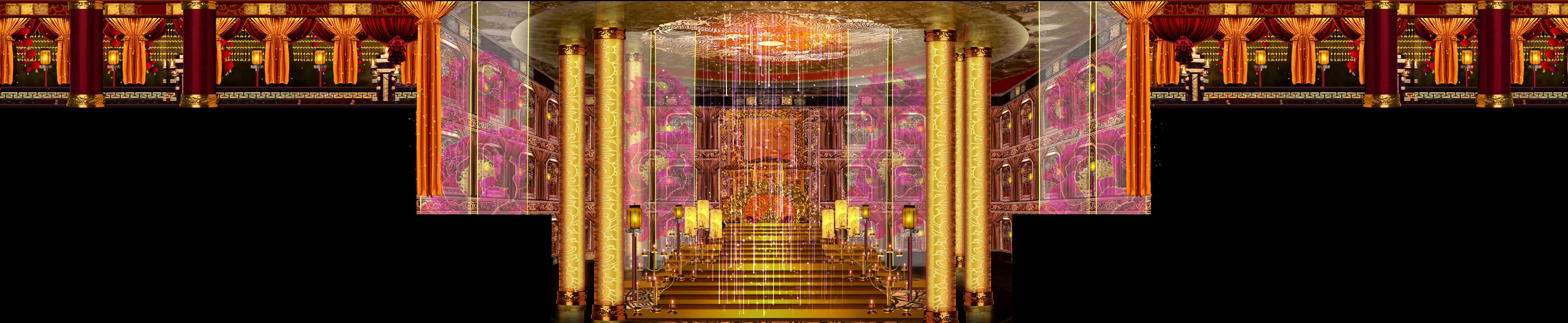 古典 背景 宫廷 中国风 金碧 辉煌 宴会厅 全息宴会厅 全息婚礼