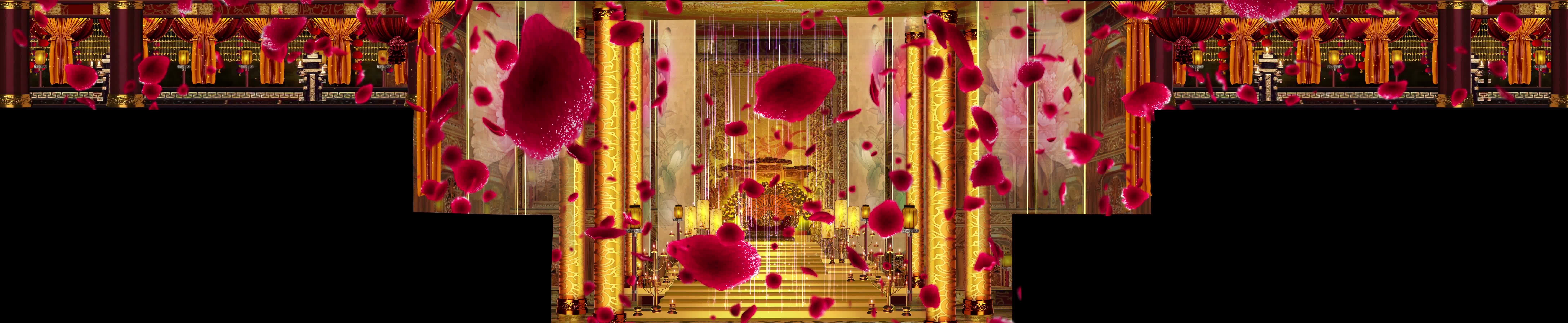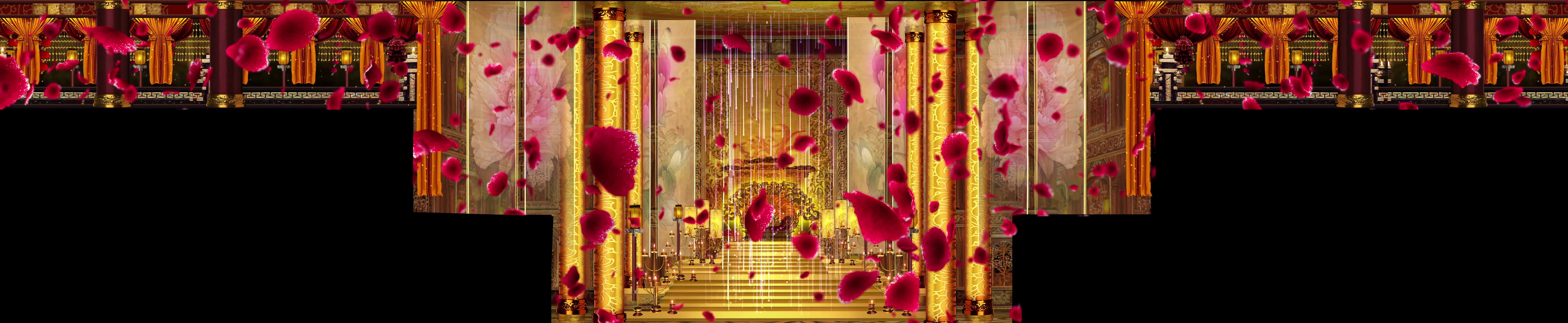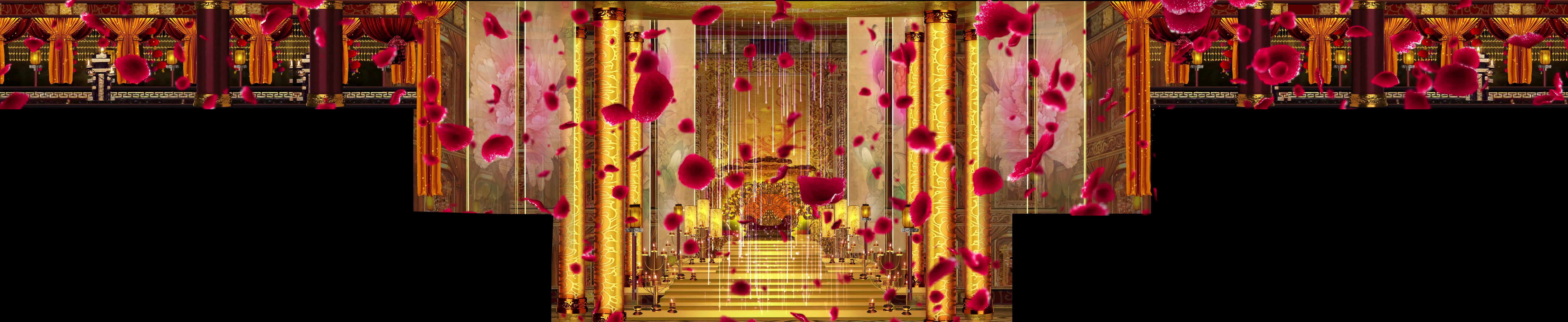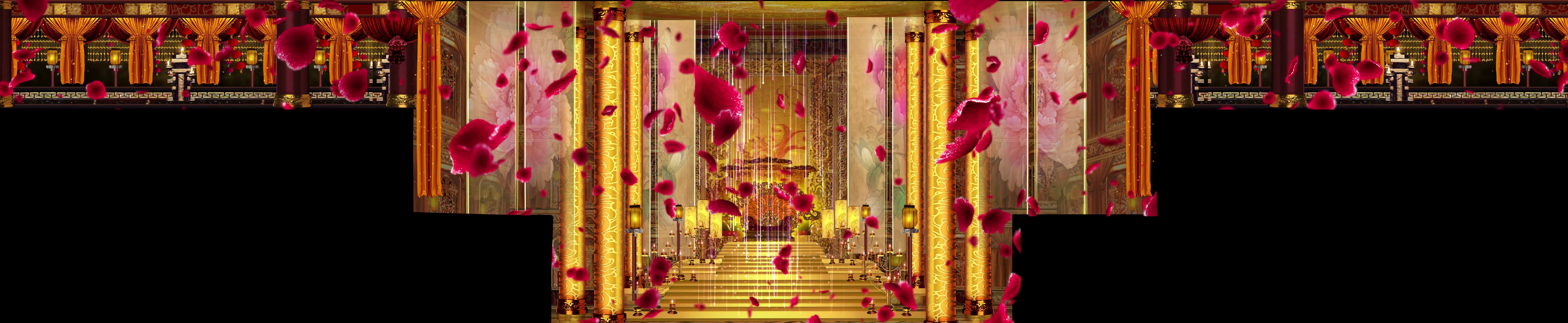 中式 皇宫 宫殿 花瓣 鲜花 雕花 立柱 柱子龙椅子 灯 长明灯 灯笼 红色花瓣 云纹 富贵 黄金屋 金色宫殿 中式婚礼 宴会厅 全息投影素材