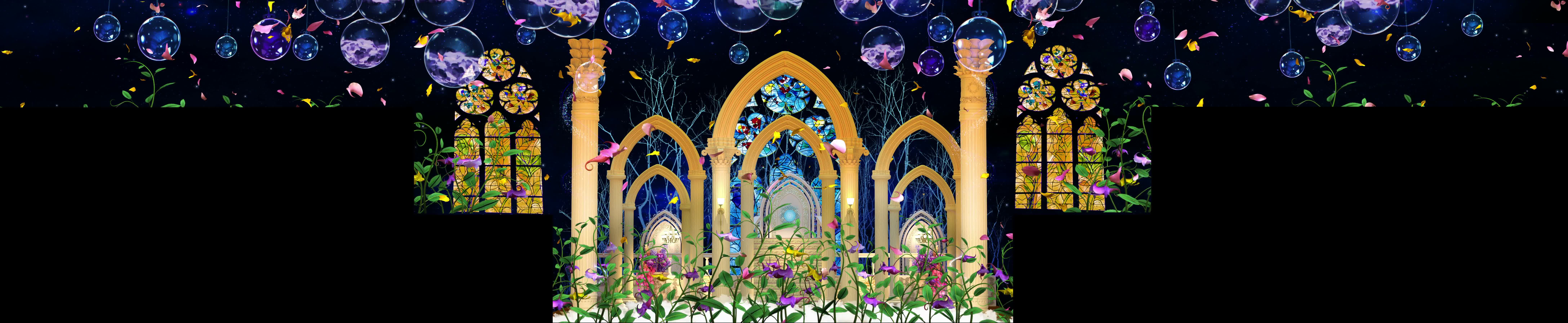 欧式 宫殿 教堂 教堂玻璃彩色花窗 水晶 鲜花 花朵 气泡 红色花瓣 拱门 罗马立柱 雕花立柱 欧式宫殿 欧式风格 唯美 梦幻 浪漫 温馨 婚礼 欧式婚礼 婚礼暖场 宴会厅 风景 全息投影素材