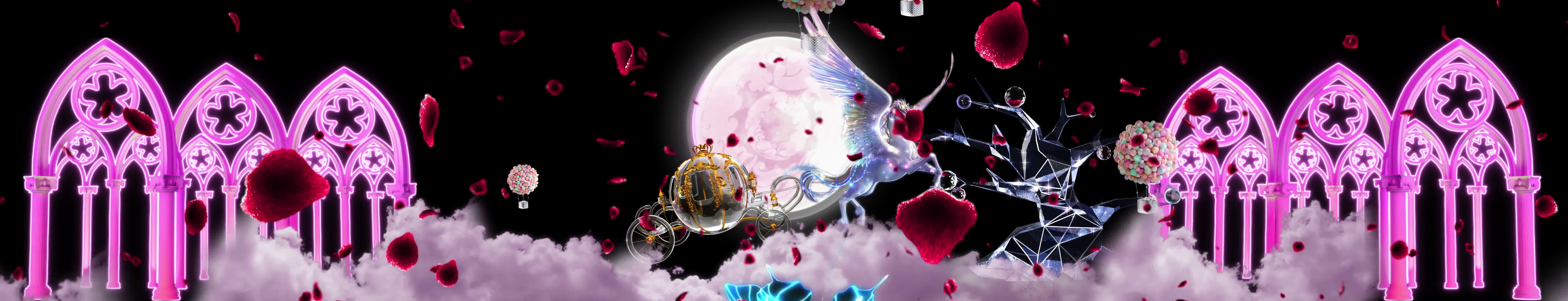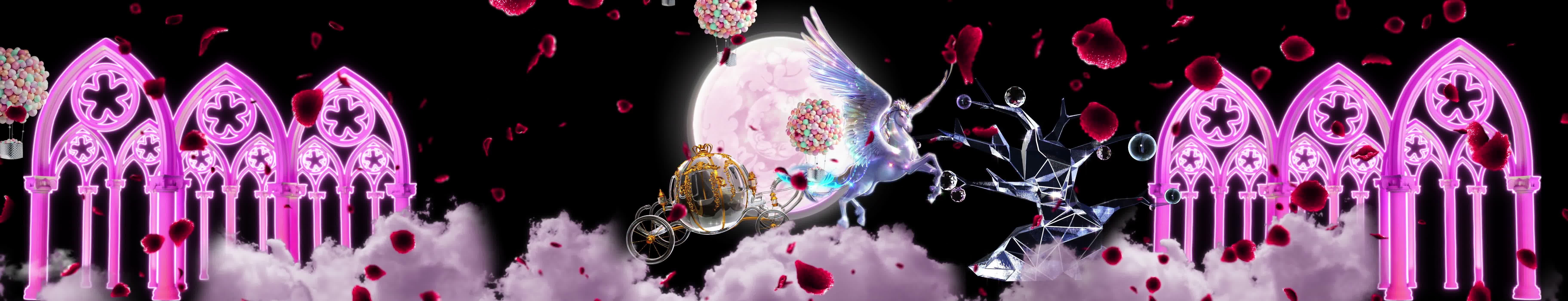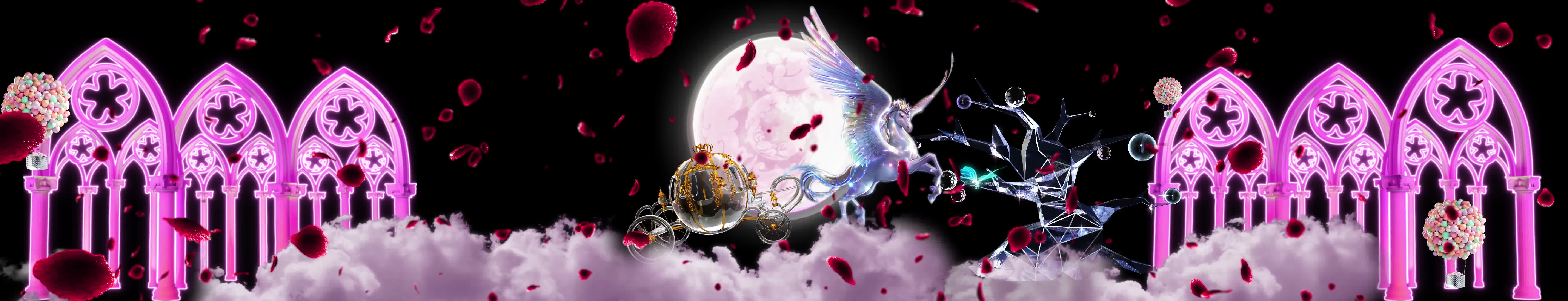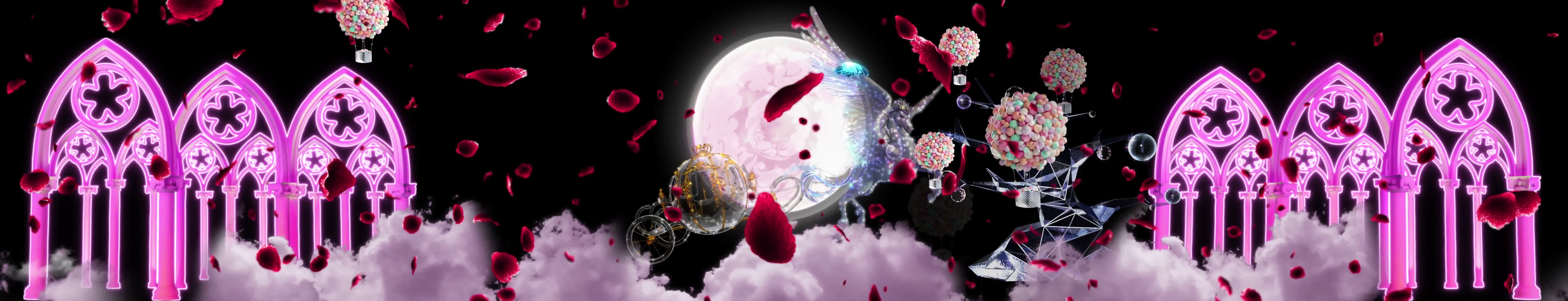 欧式 花瓣 气球 月亮 云层 水晶马车 粉色 天空 云彩 粉色花瓣 彩色 梦幻 浪漫 婚礼 宴会厅 背景 全息投影素材