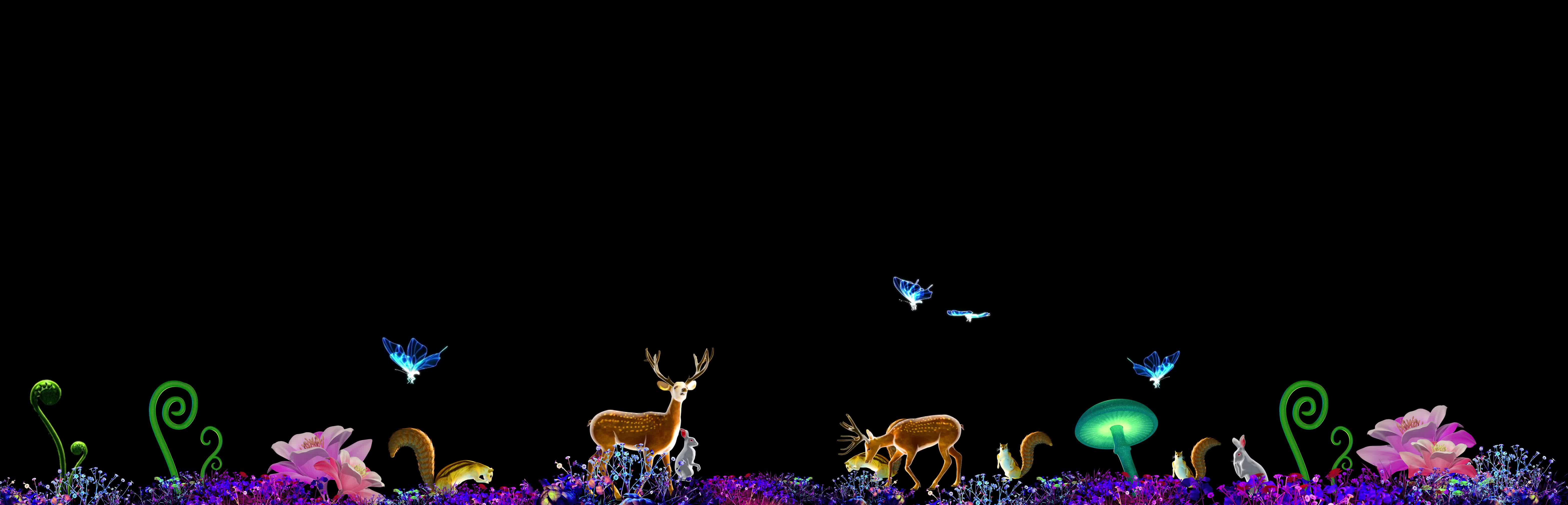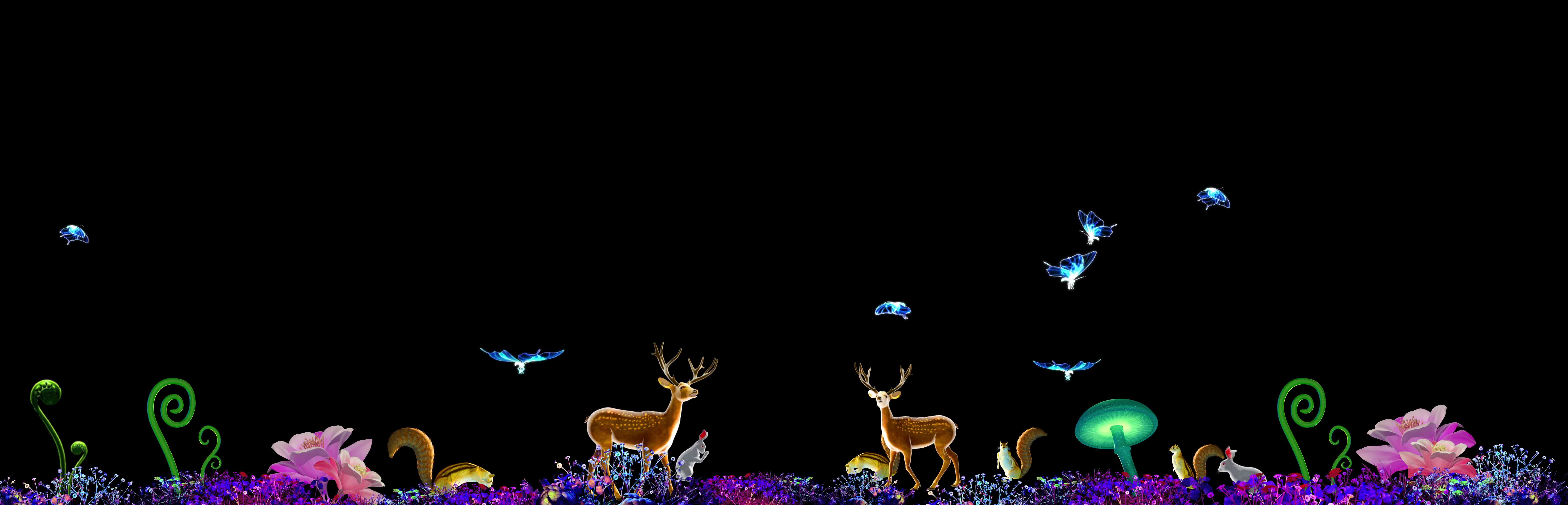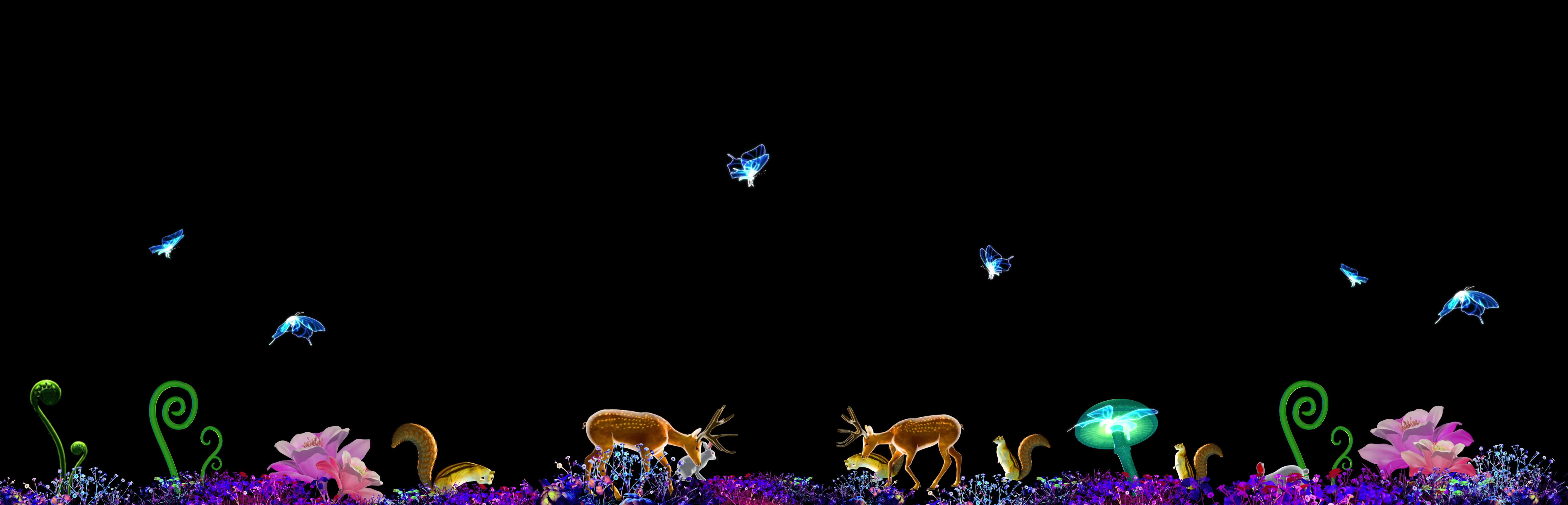 绿植 草丛 蘑菇 花朵 麋鹿 松鼠 兔子 蝴蝶 全息宴会厅 绿藤 童话世界