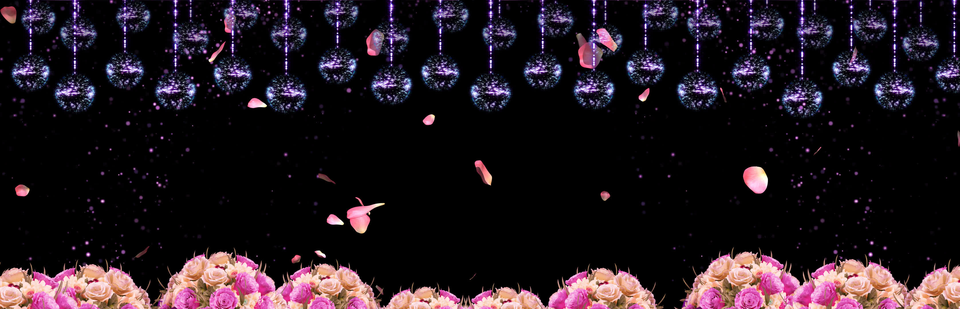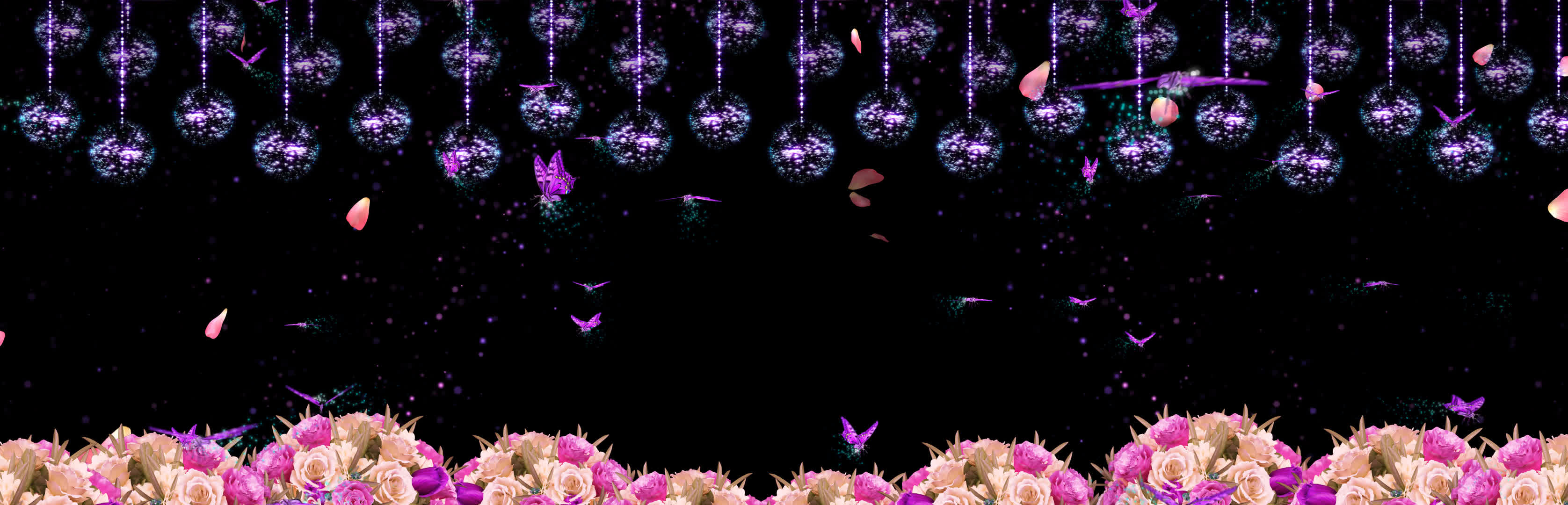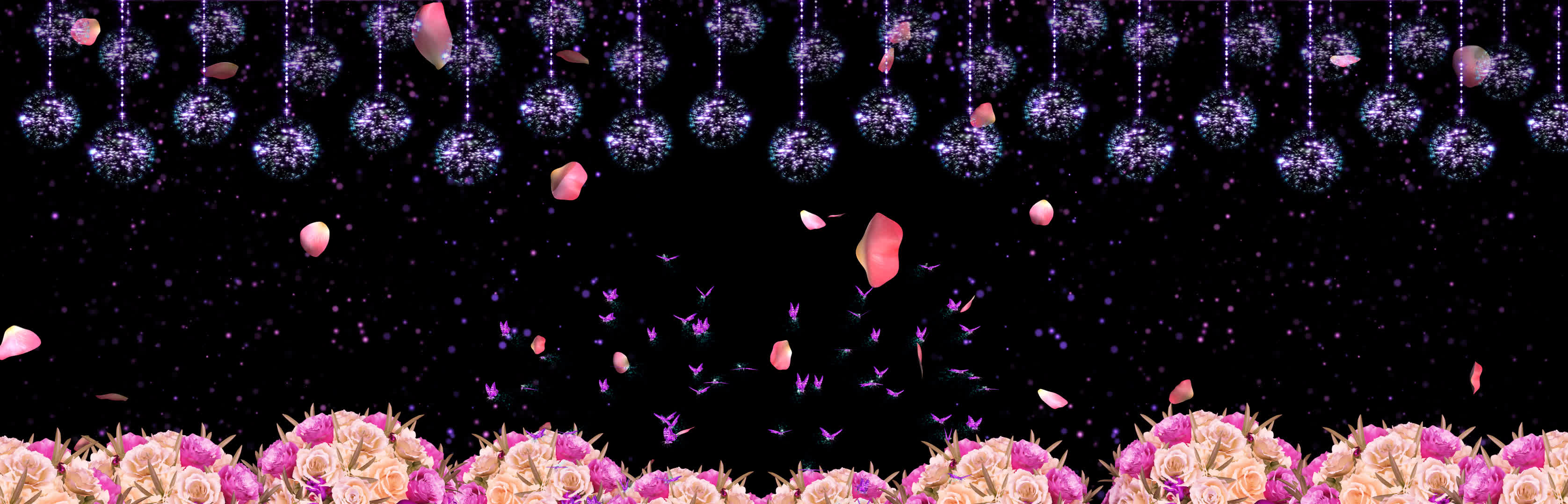 花丛 鲜花 粉色花瓣 花瓣落下 蝴蝶 花瓣 水晶球 梦幻 浪漫婚礼 欧式婚礼 宴会厅 风景 全息投影素材