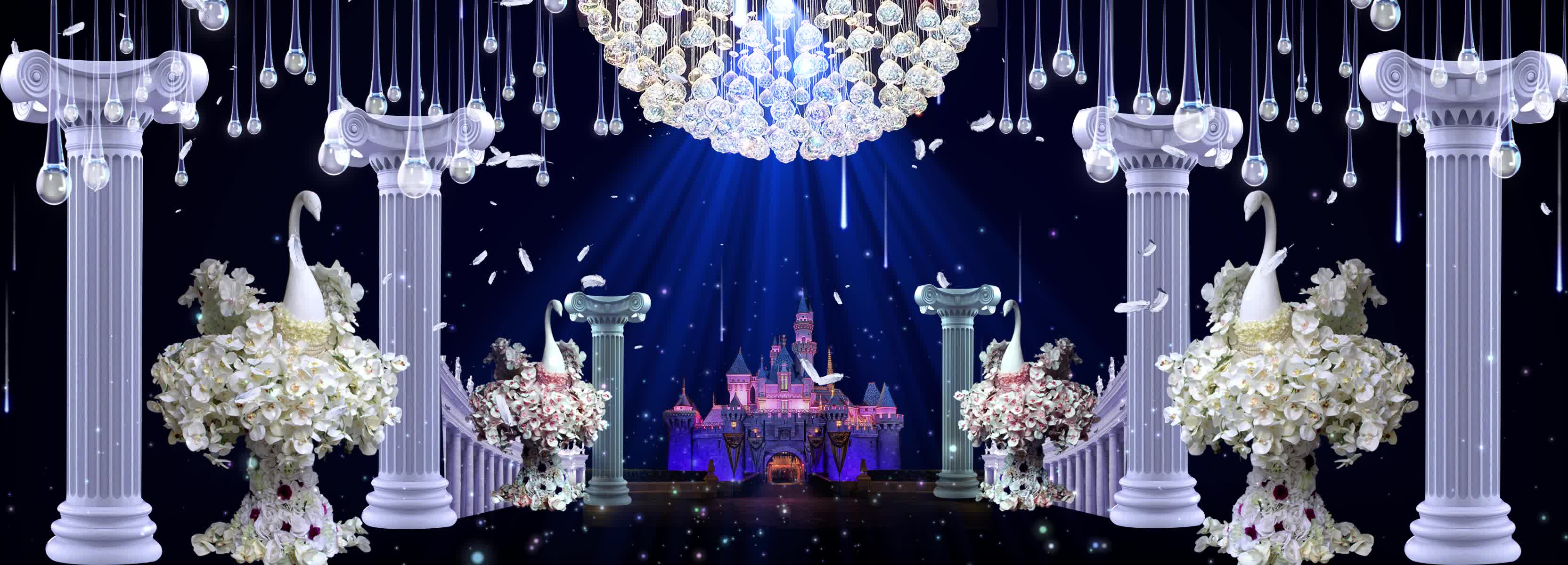 欧式 建筑 古典 柱子 唯美 吊灯 背景 浪漫 梦幻 素材 宴会厅 全息宴会厅 全息婚礼