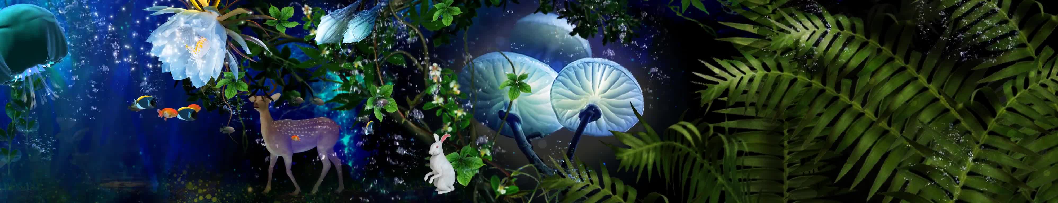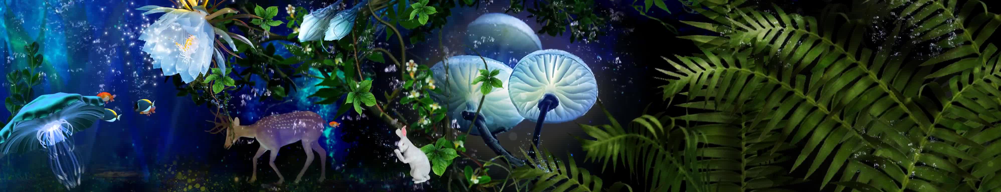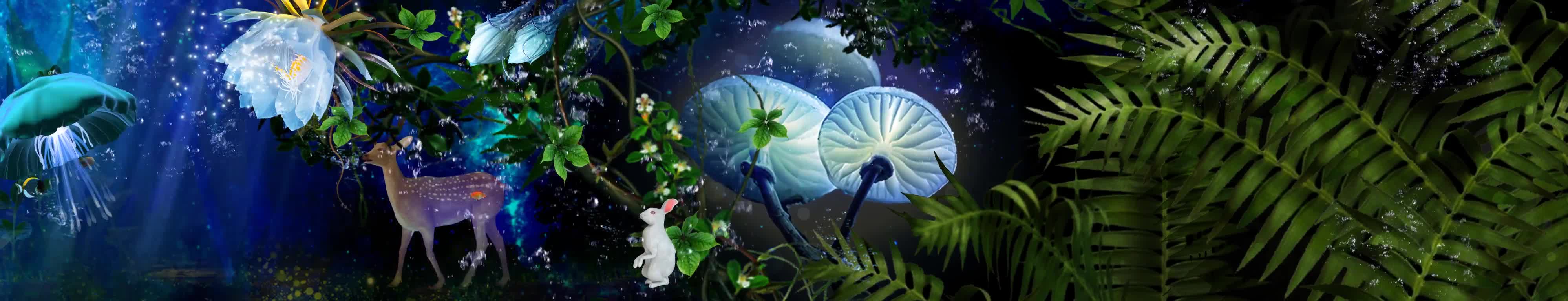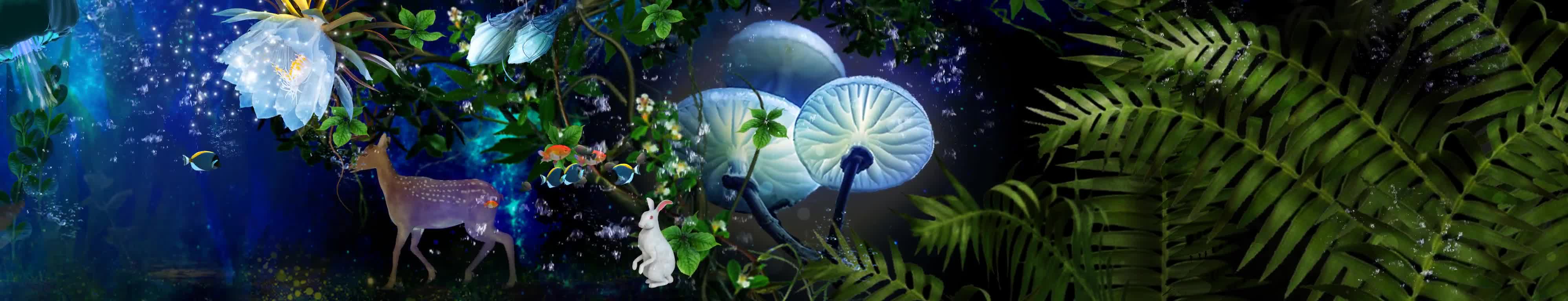 森林 小白兔 鲜花 麋鹿 海底 水草 植物 水母 鱼 蓝色 绿色 气泡 水泡泡 海鱼 风景 宴会厅 全息投影素材