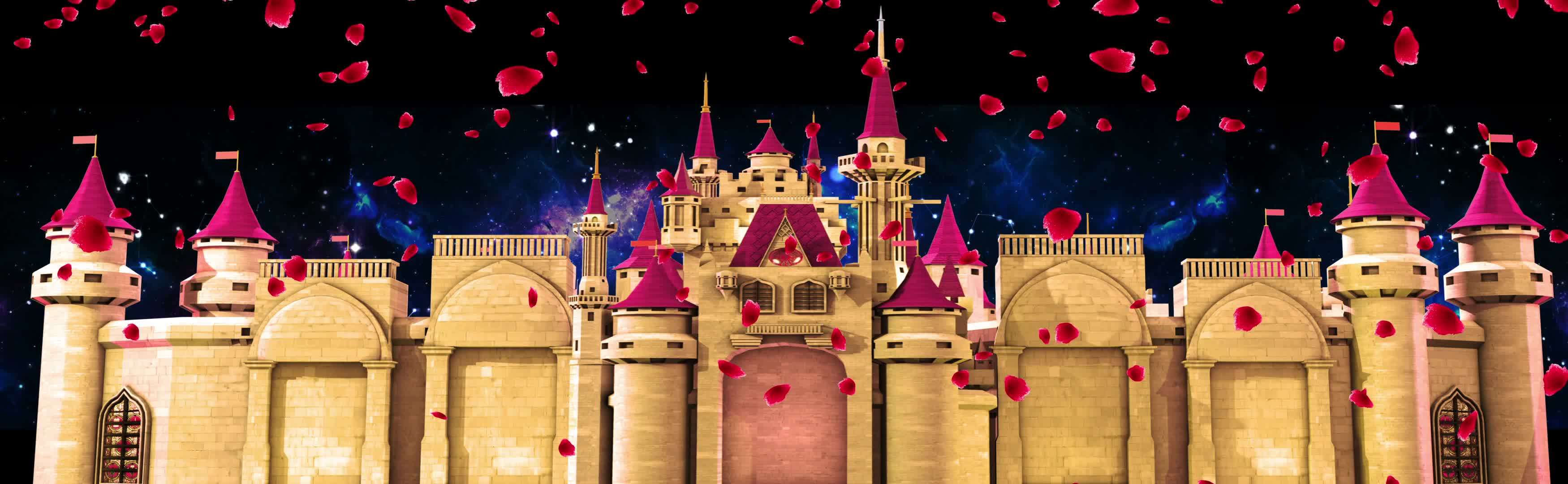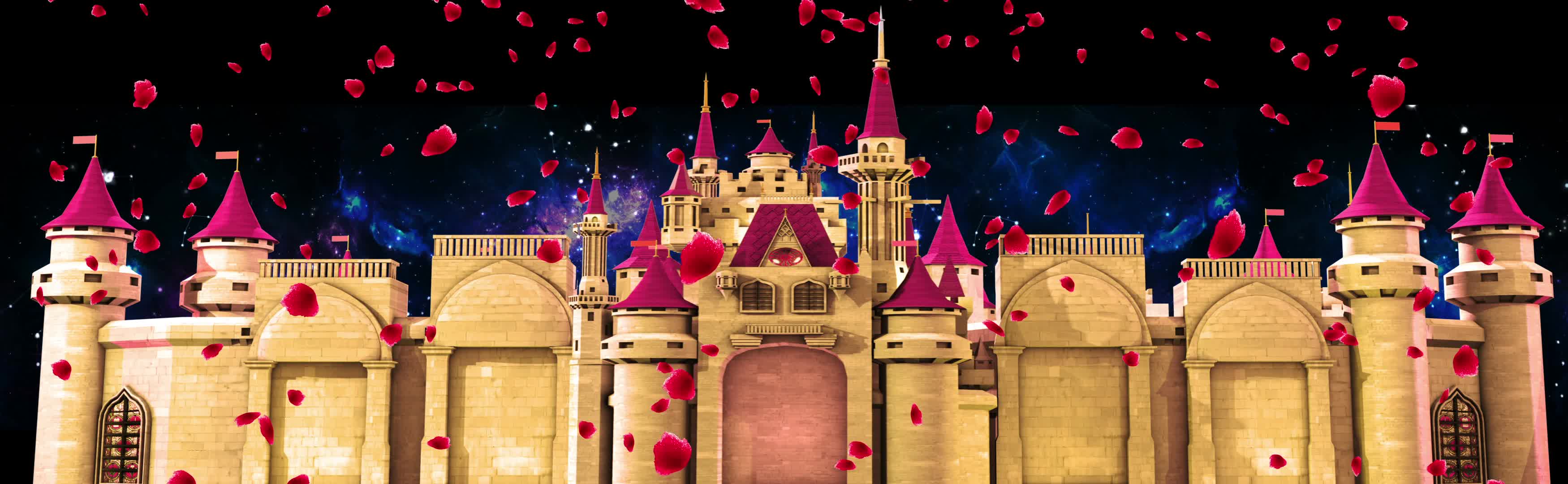 欧式 城堡 花瓣 金色城堡 红色花瓣 星空 欧式城堡 梦幻 浪漫婚礼 欧式婚礼 宴会厅 风景 全息投影素材