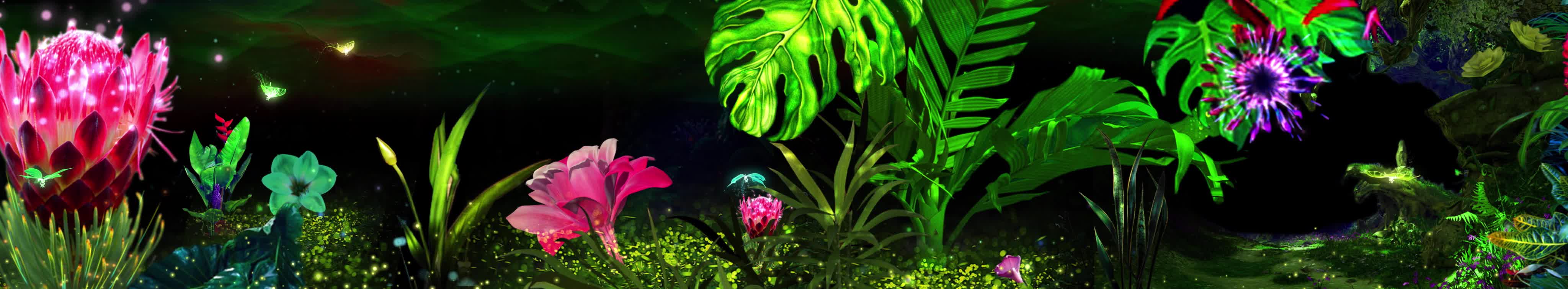 森林 丛林 树 花园 鲜花 百合 水仙 红豆 金龙 凤凰 粒子 蝴蝶 鹅 夜景 荧光 梦幻 风景 宴会厅 全息投影素材