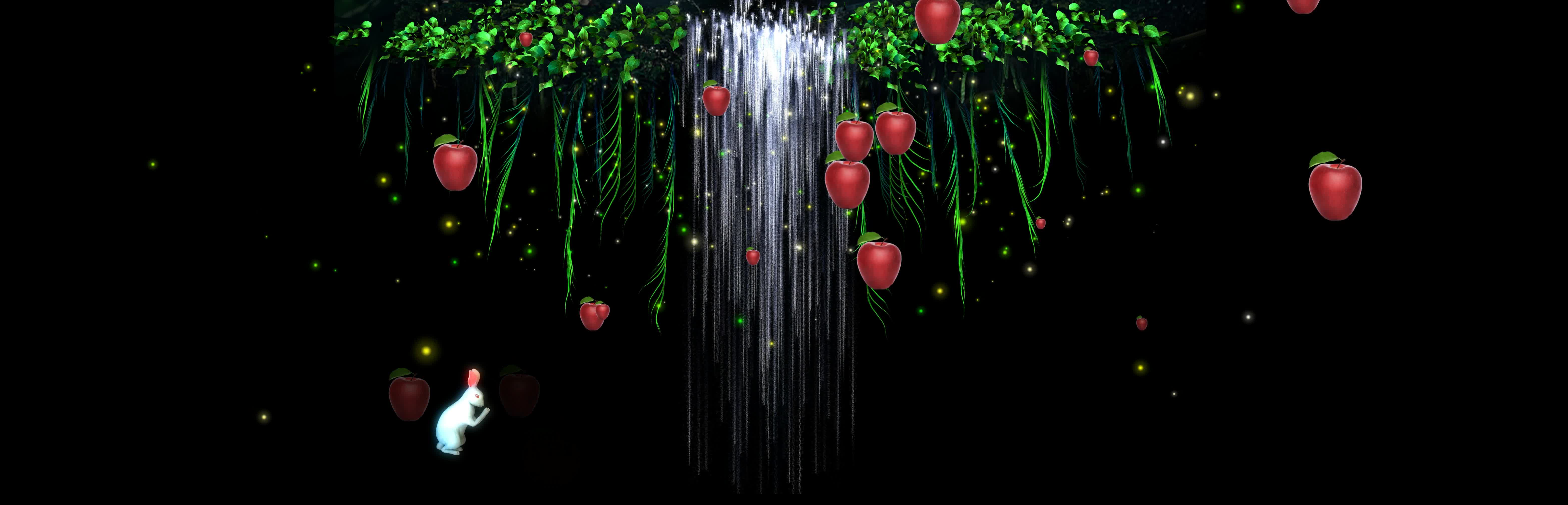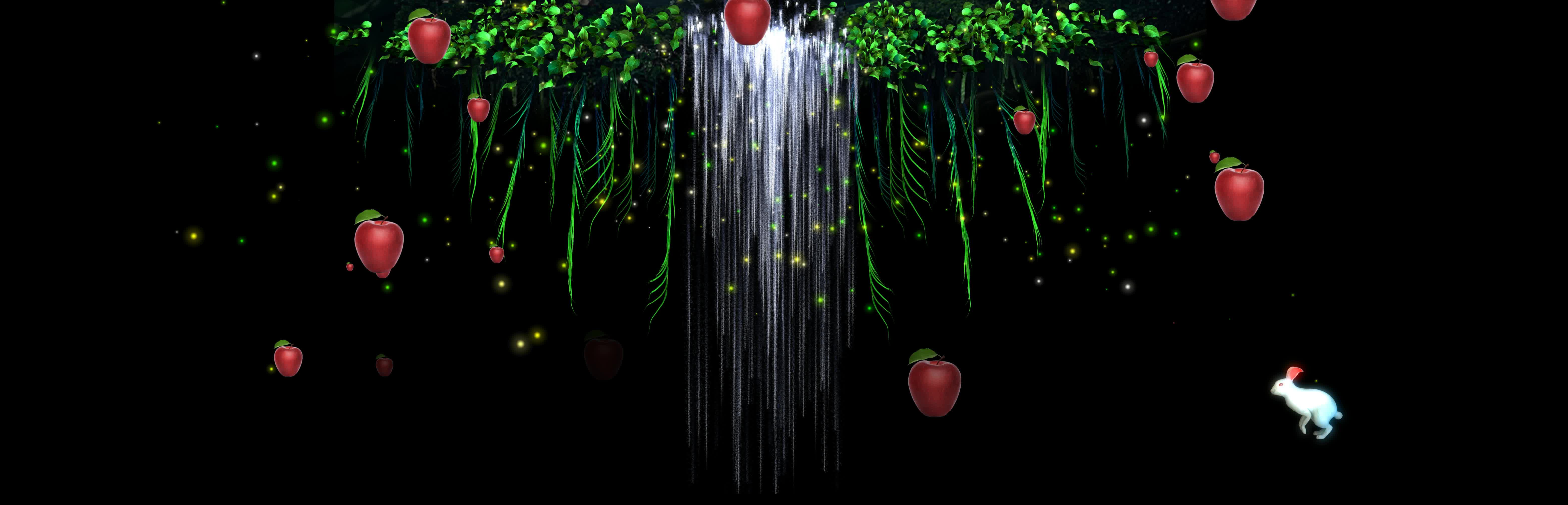 森林 乐园 童真世界 神秘 奇幻 梦幻 绿植 苹果 小白兔 兔子 粒子 景区 风景 宴会厅 全息投影素材