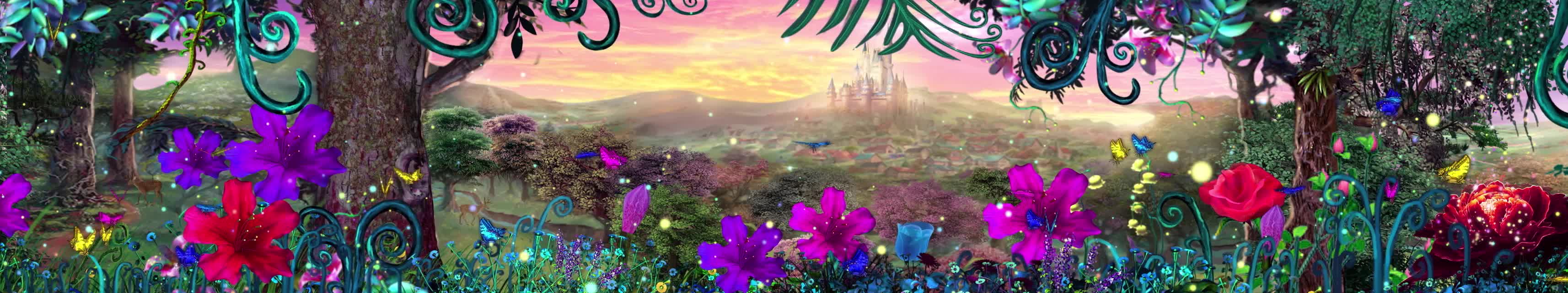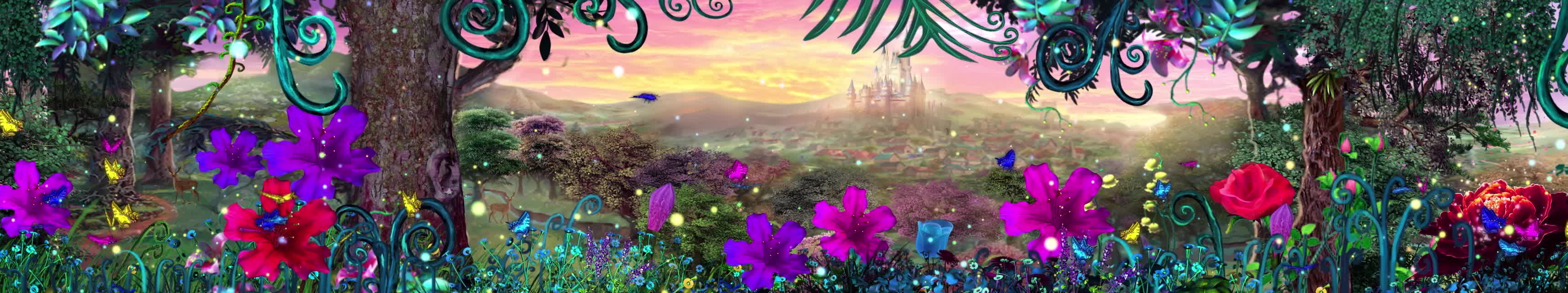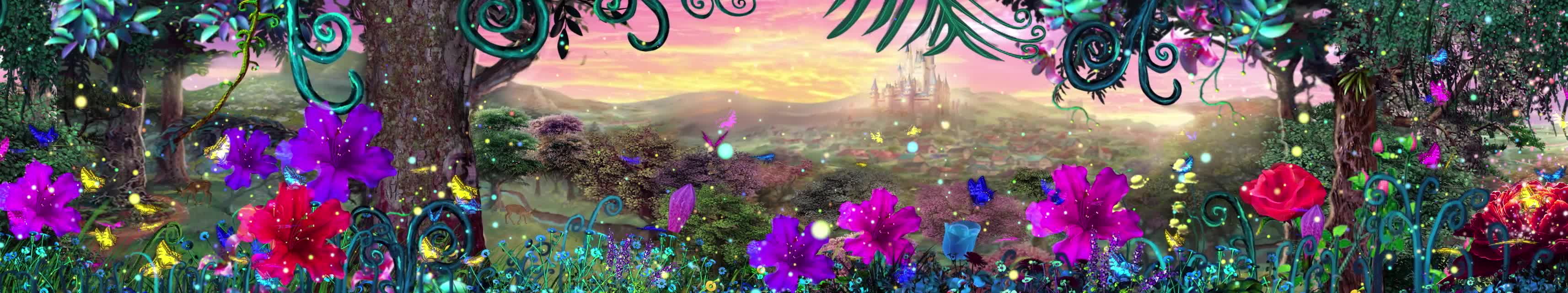 森林 绿叶 棕榈叶 紫花 鲜花 蝴蝶 彩色蝴蝶 堡垒 城堡 房子 绿藤 植物 花海 鲜花绽放 星空 蓝色 梦幻 景区 风景 宴会厅 开场 全息投影素材